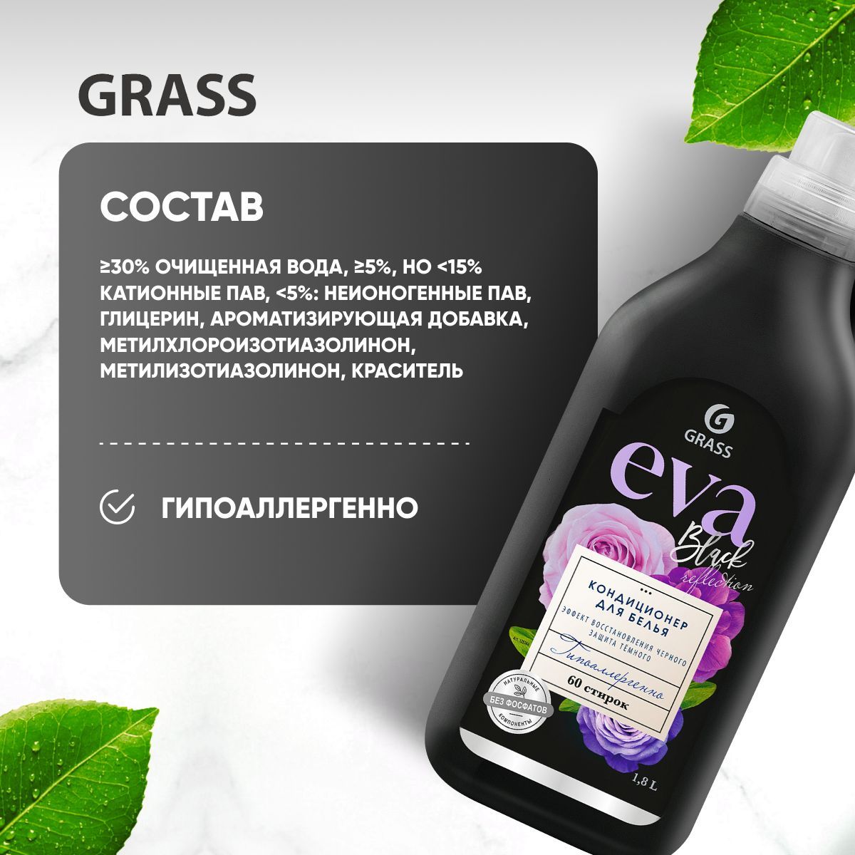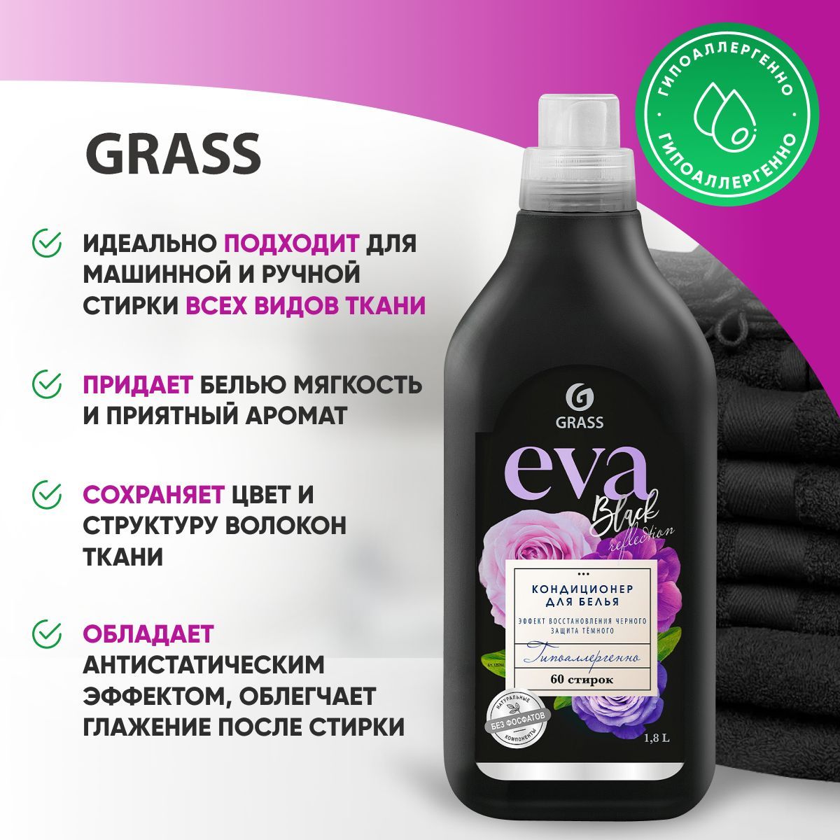Кондиционер для белья GRASS EVA black reflection, концентрированный, гипоаллергенный, 1800 мл