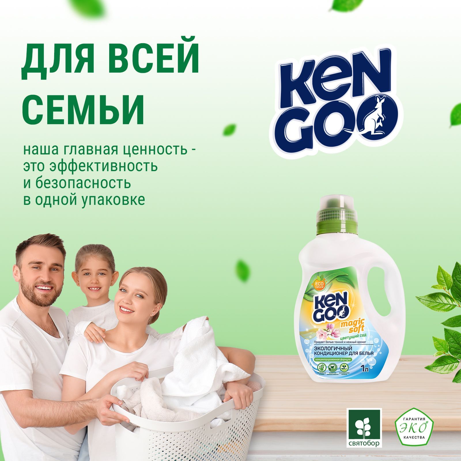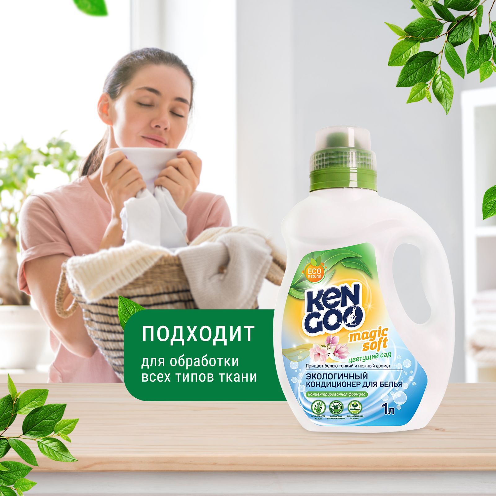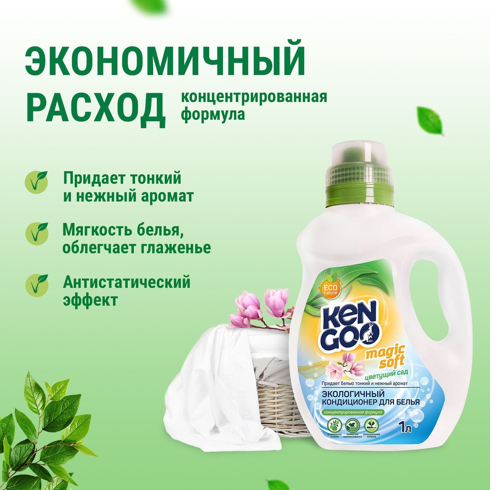 Кондиционер для белья Kengoo Magic Soft Цветущий сад, эко концентрат антистатик для стирки, 1 литр