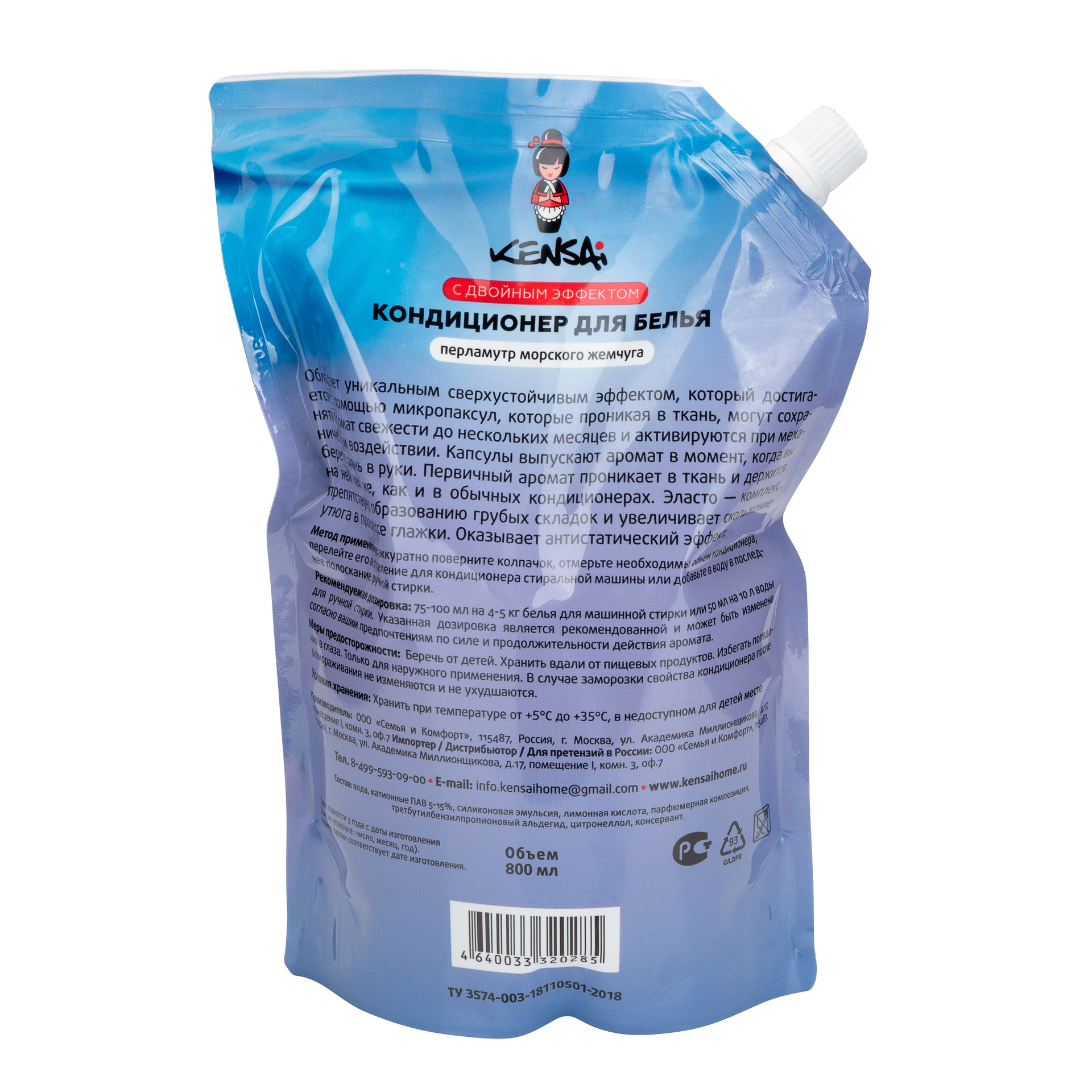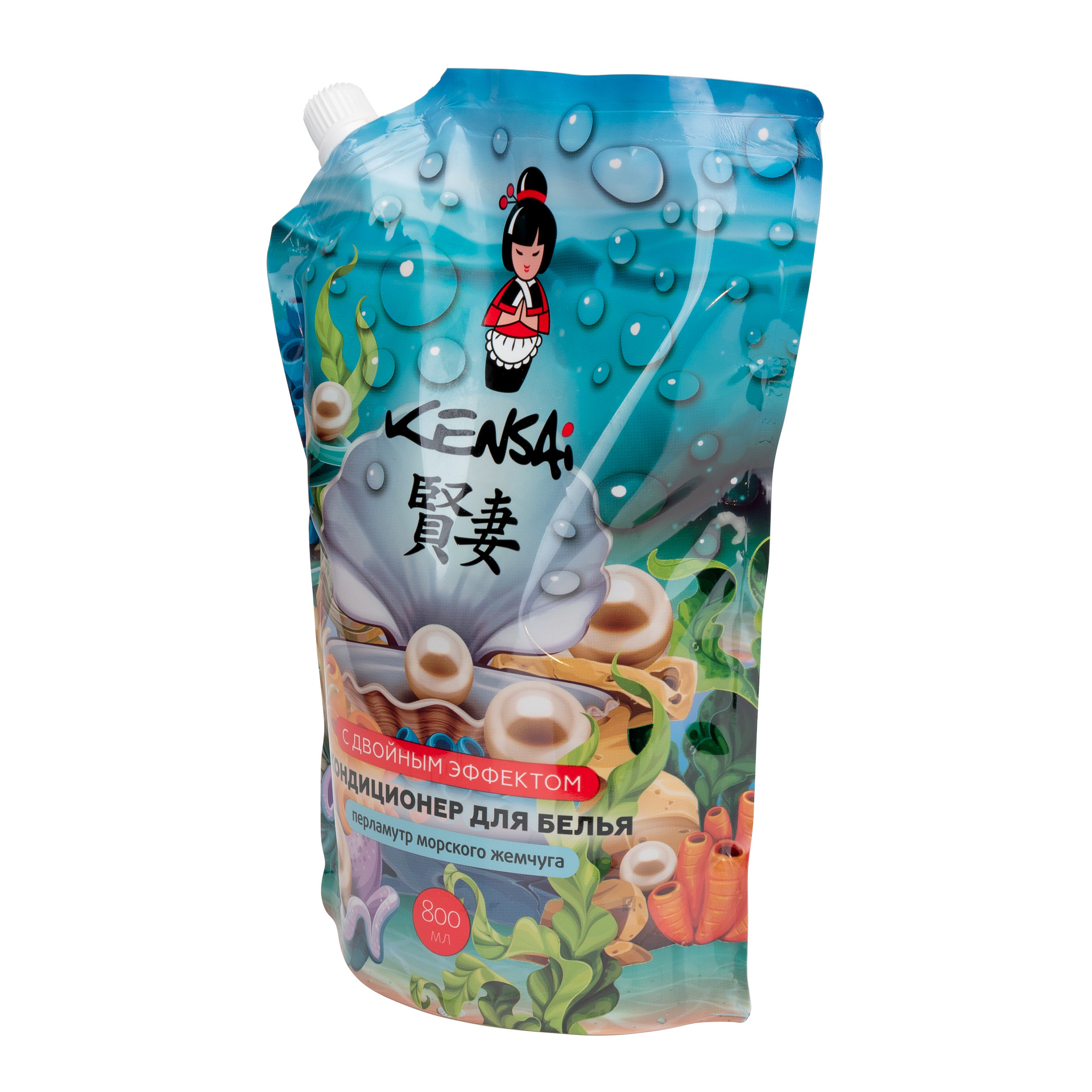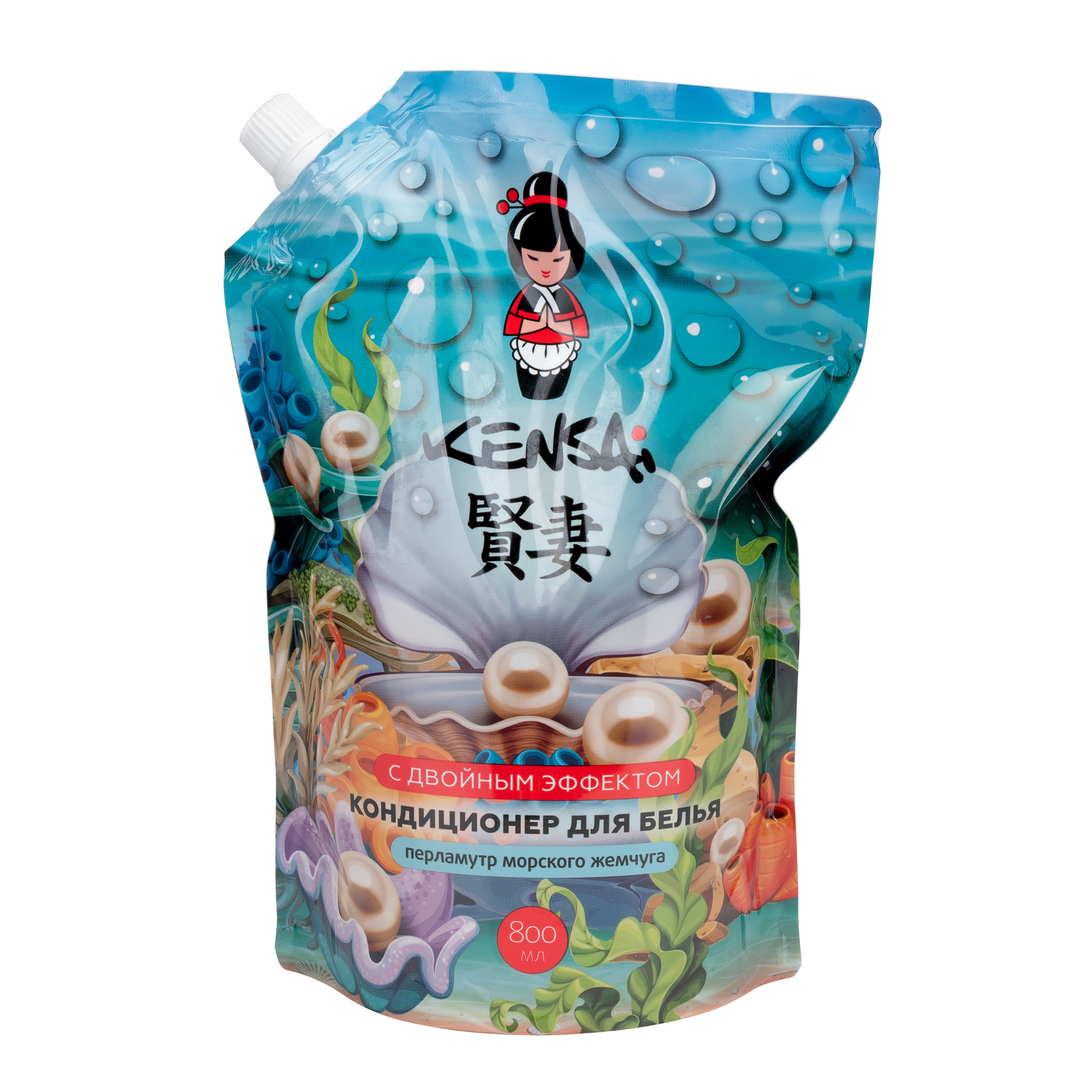 Кондиционер для белья Kensai с двойным эффектом "Перламутр морского жемчуга", сменный блок 800 мл