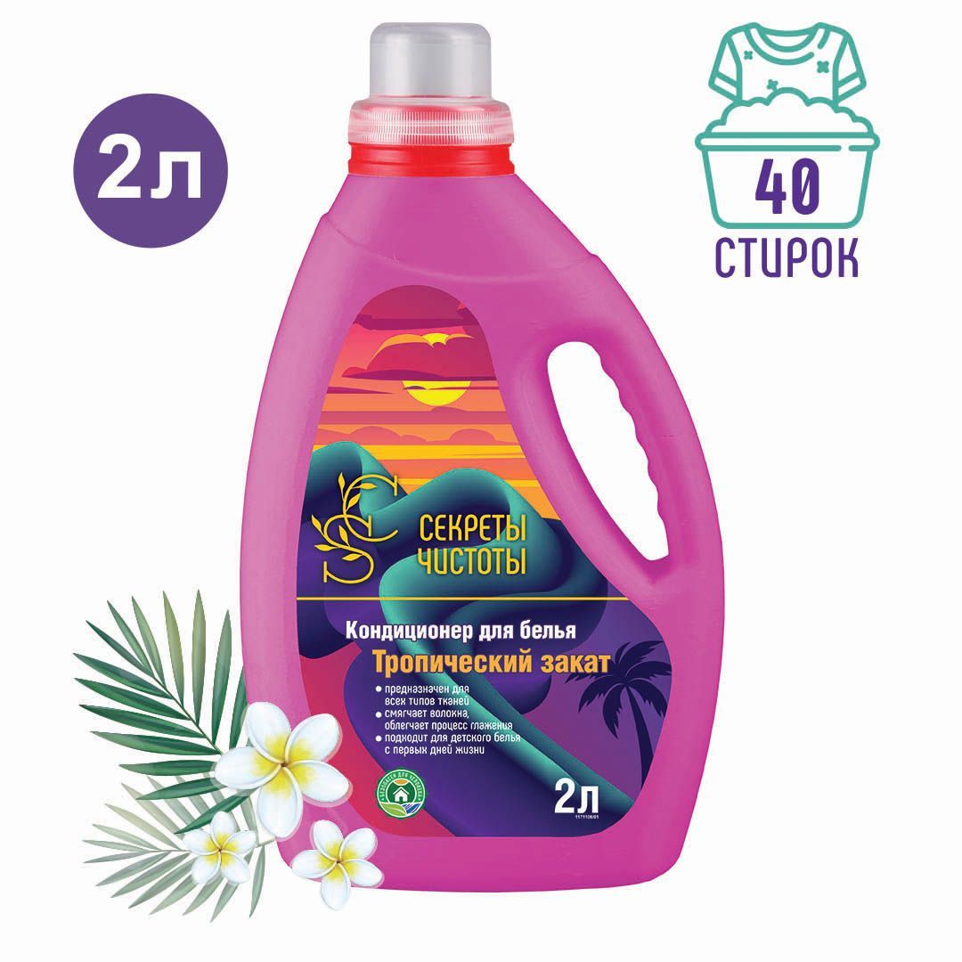 “Секреты чистоты” - это экологичные green friendly и современные продукты для чистого, уютного и безопасного дома. В линейке бренда, стремительно завоевавшего популярность, представлены эффективные и одновременно нежные средства для стирки: гели, порошки, кондиционеры для белья, позволяющие экономно сохранять свежесть белья. Не обошли своим вниманием и такую незаменимую вещь в каждом доме, как крем-мыло для рук, оберегающих кожу от сухости, в малых и больших удобных дозировках, с самыми разными ароматами и антибактериальным эффектом."Секреты чистоты"Кондиционер-ополаскиватель для белья Тропический закат, 2л."Секреты чистоты"Кондиционер-ополаскиватель для белья Тропический закат, 1,3л."Секреты чистоты"Гели для стирки белья