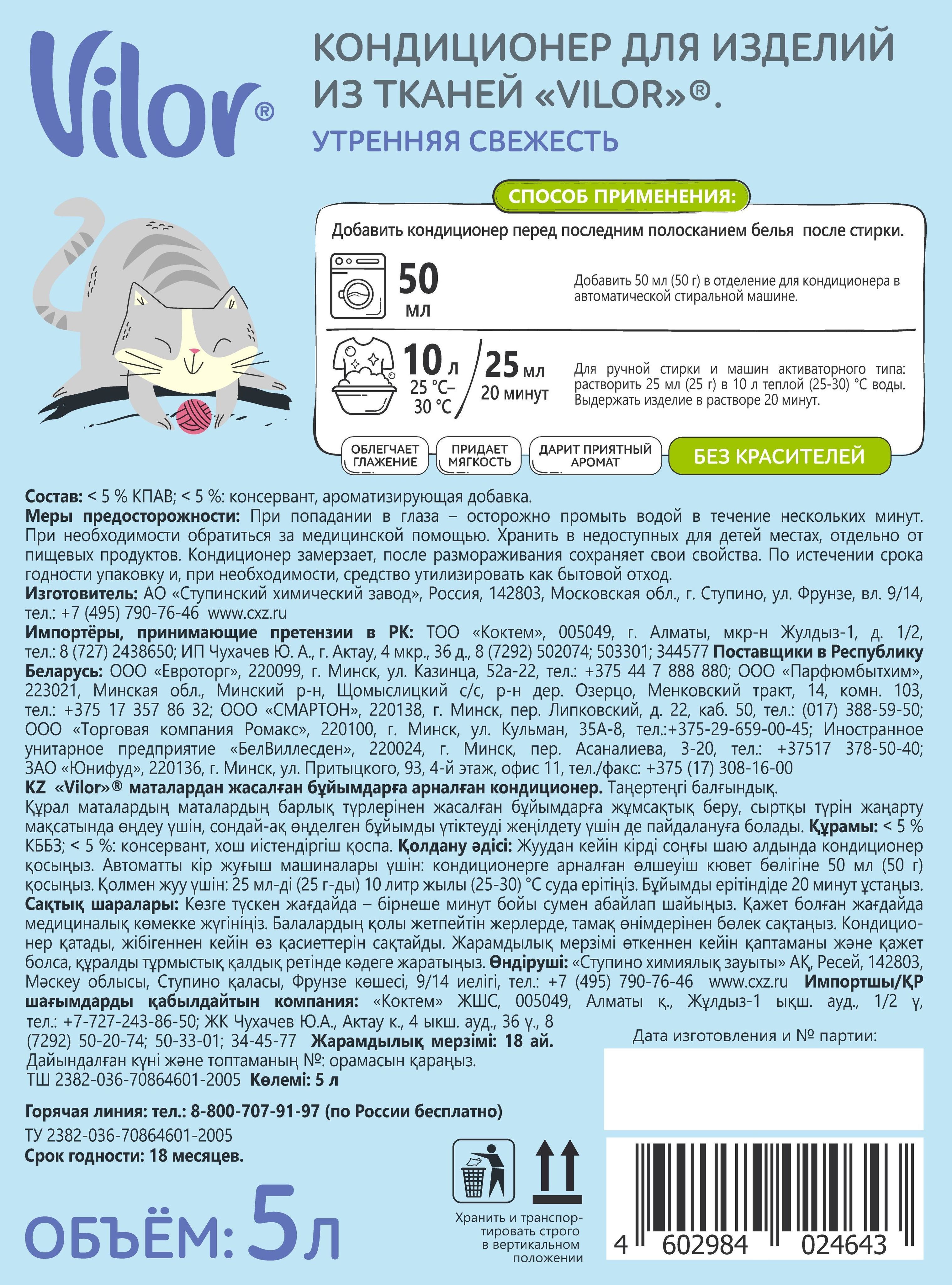 Кондиционер для белья, VILOR , Утренняя свежесть, 5 л