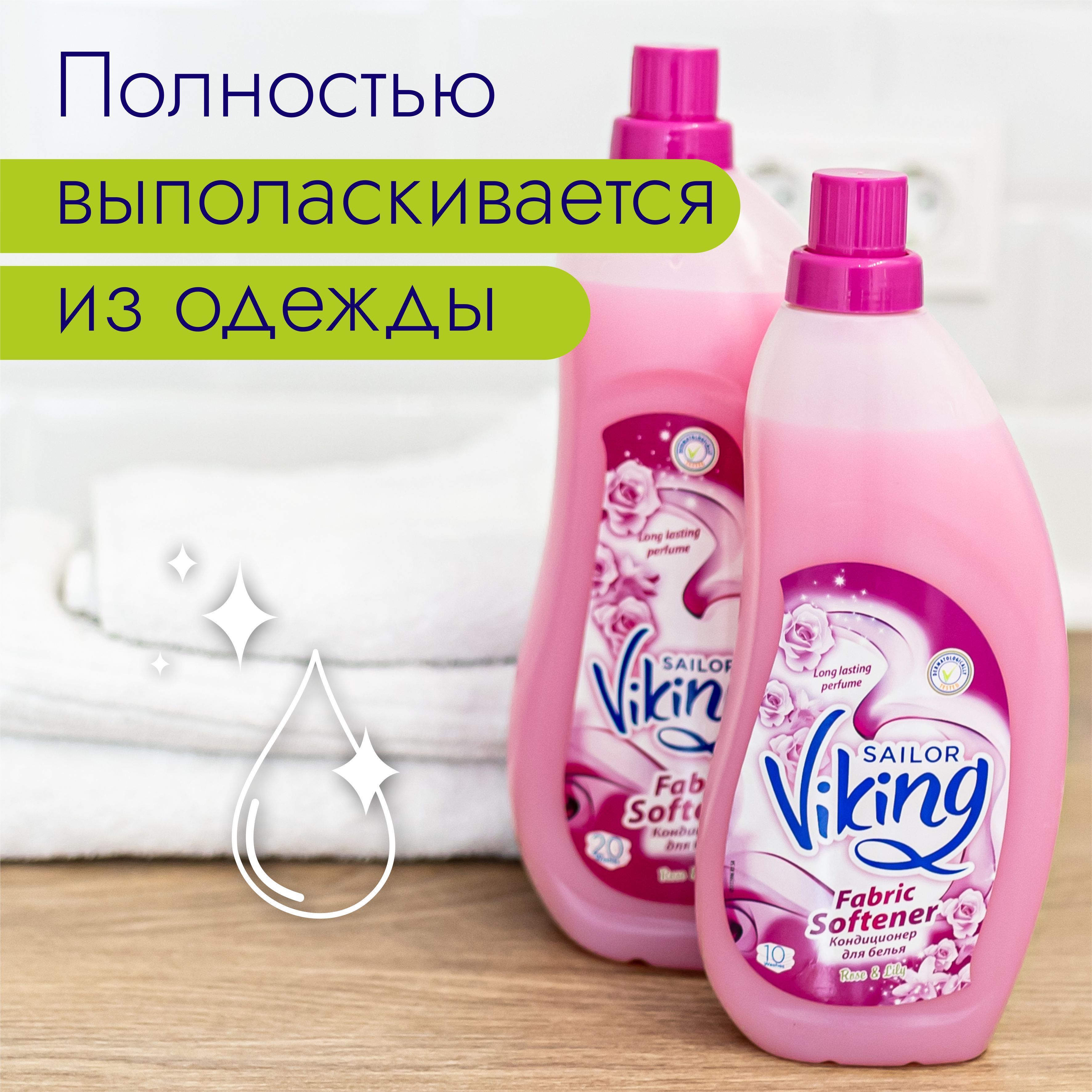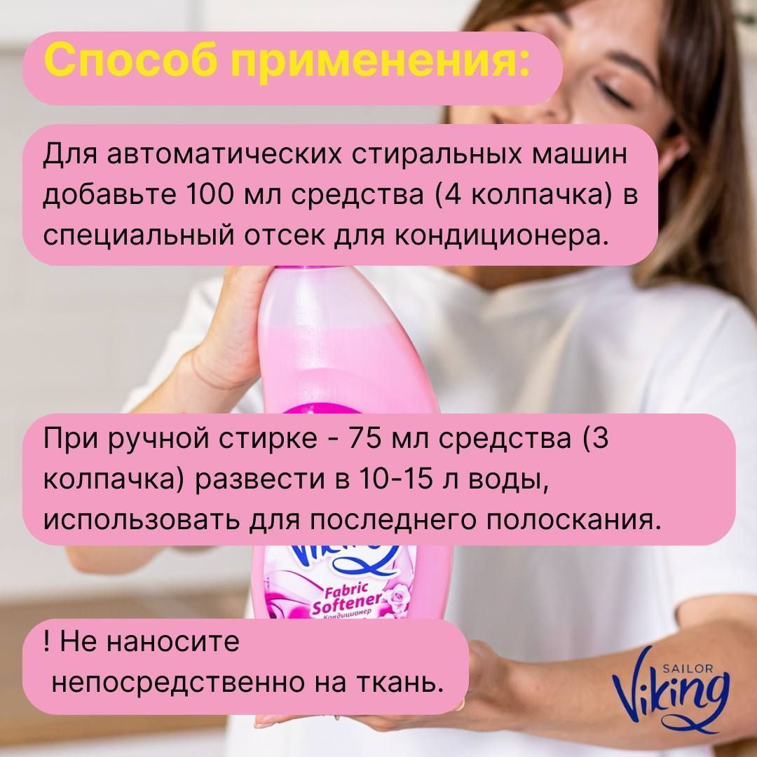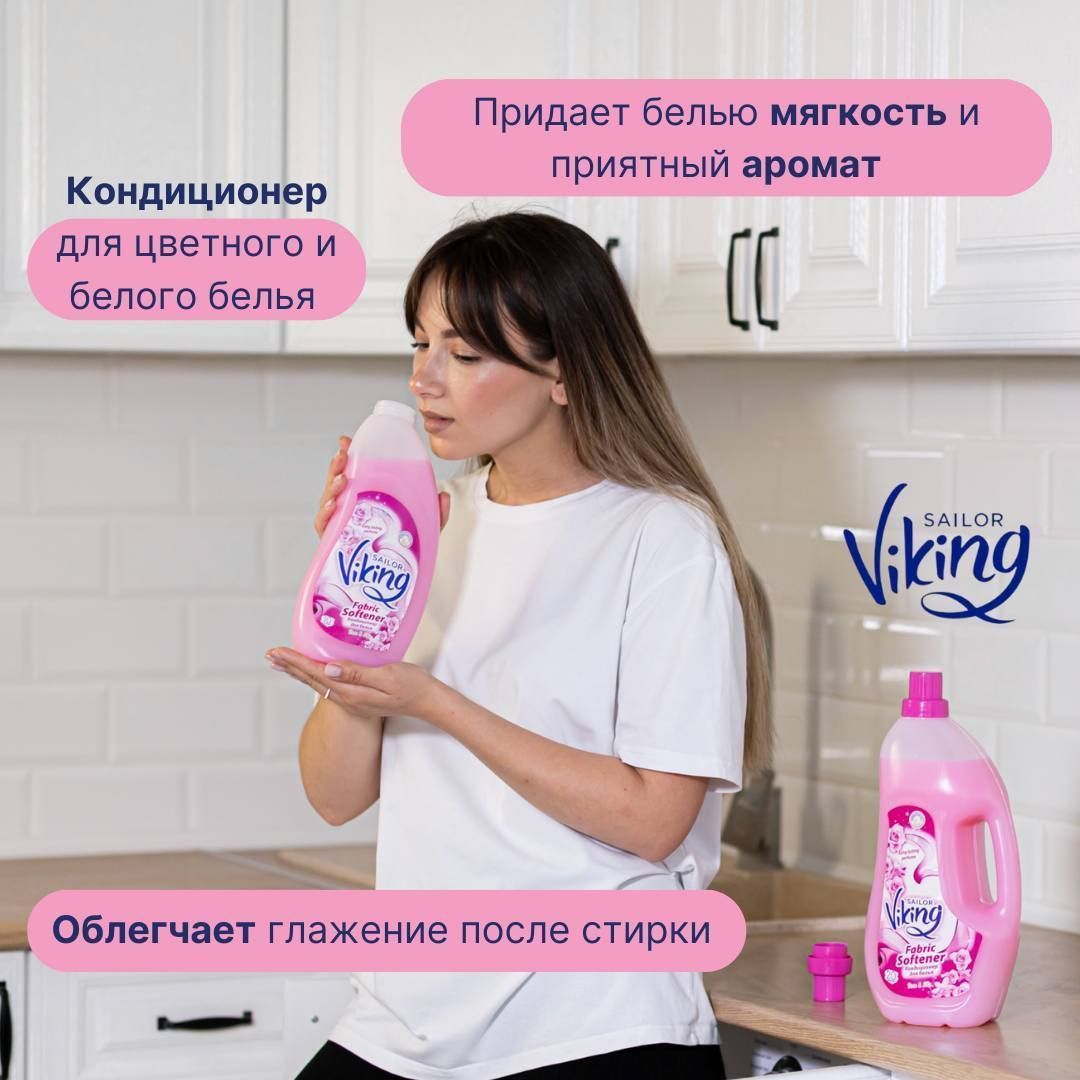 Описание: Кондиционер для цветного и белого белья турецкого бренда VIKING придает белью мягкость и приятный аромат. Облегчает глажение после стирки.