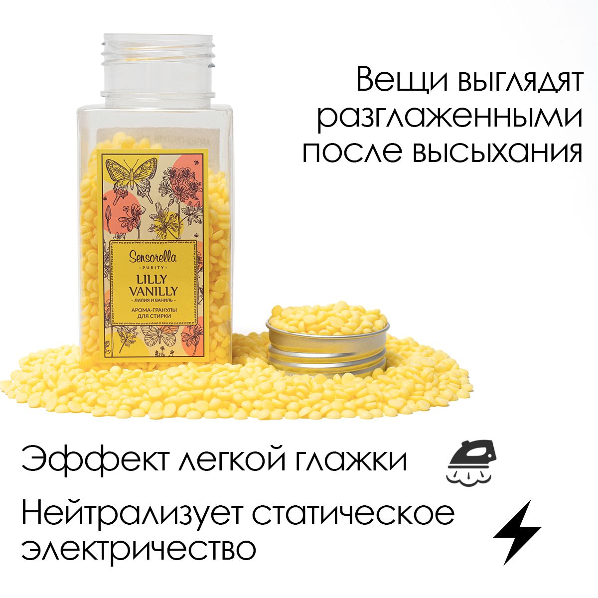 Кондиционер для стирки белья, Гранулы для стирки, Парфюм для белья, Sensorella Лилия и Ваниль 230 грамм