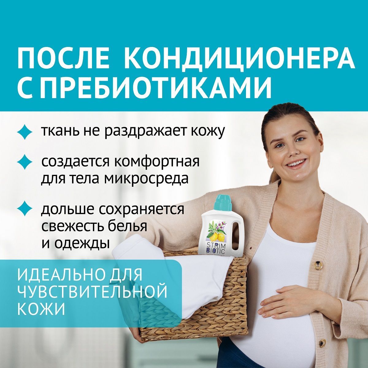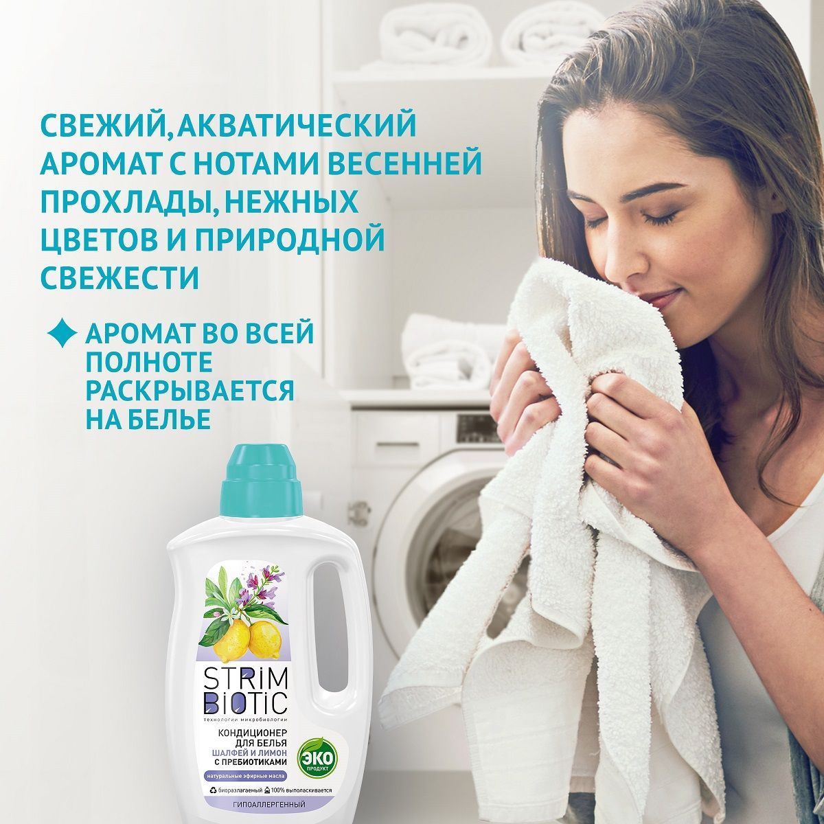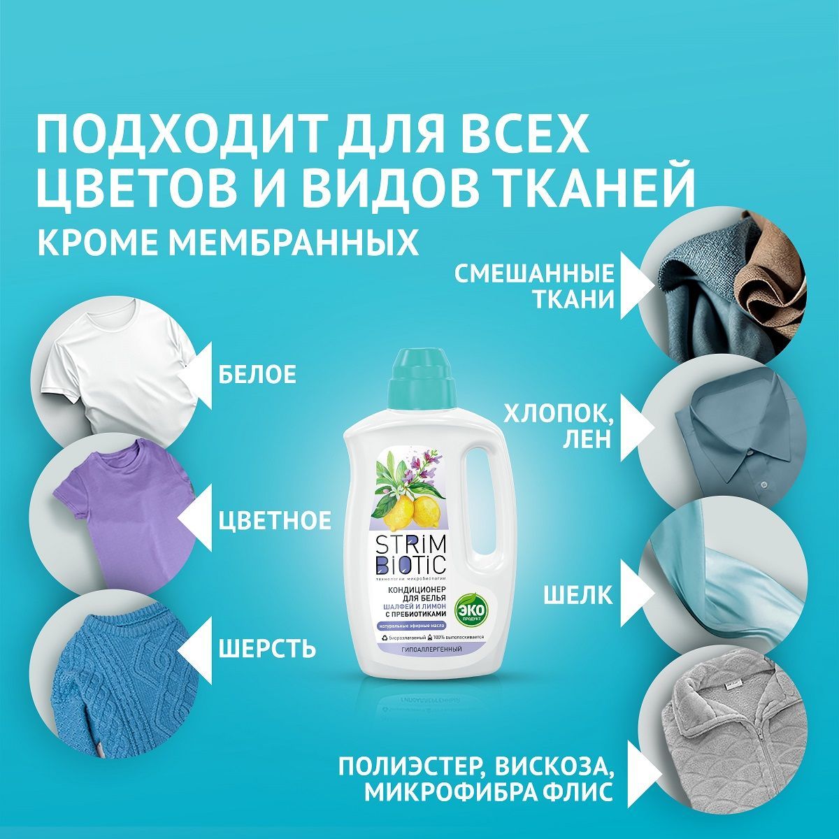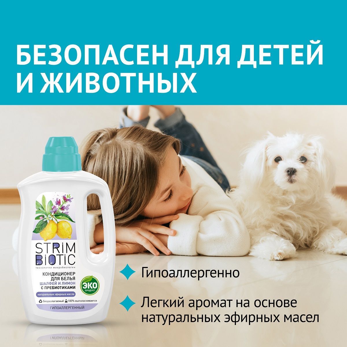 Кондиционер для стирки белья STRIMBIOTIC ШАЛФЕЙ И ЛИМОН с пребиотиками и натуральными эфирными маслами, гипоаллергенный, эко, биоразлагаемый, концентрированный, жидкое средство, 1 л