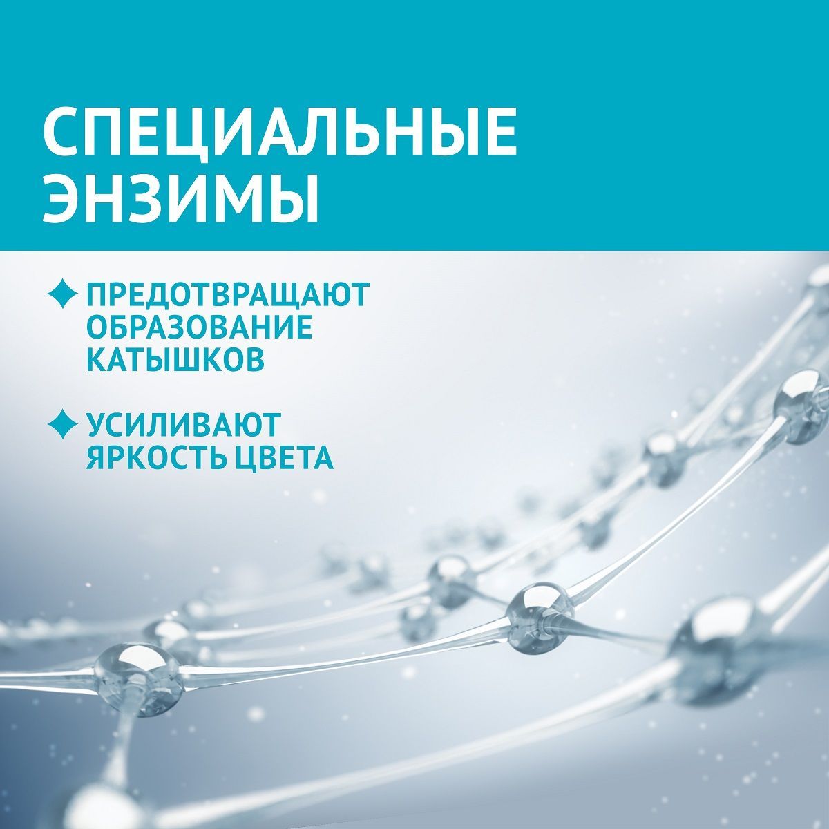 Бережный состав подходит для всех видов тканей, кроме мембранных. Специально разработанные для кондиционеров энзимы предотвращают образование катышков и усиливают яркость цвета.