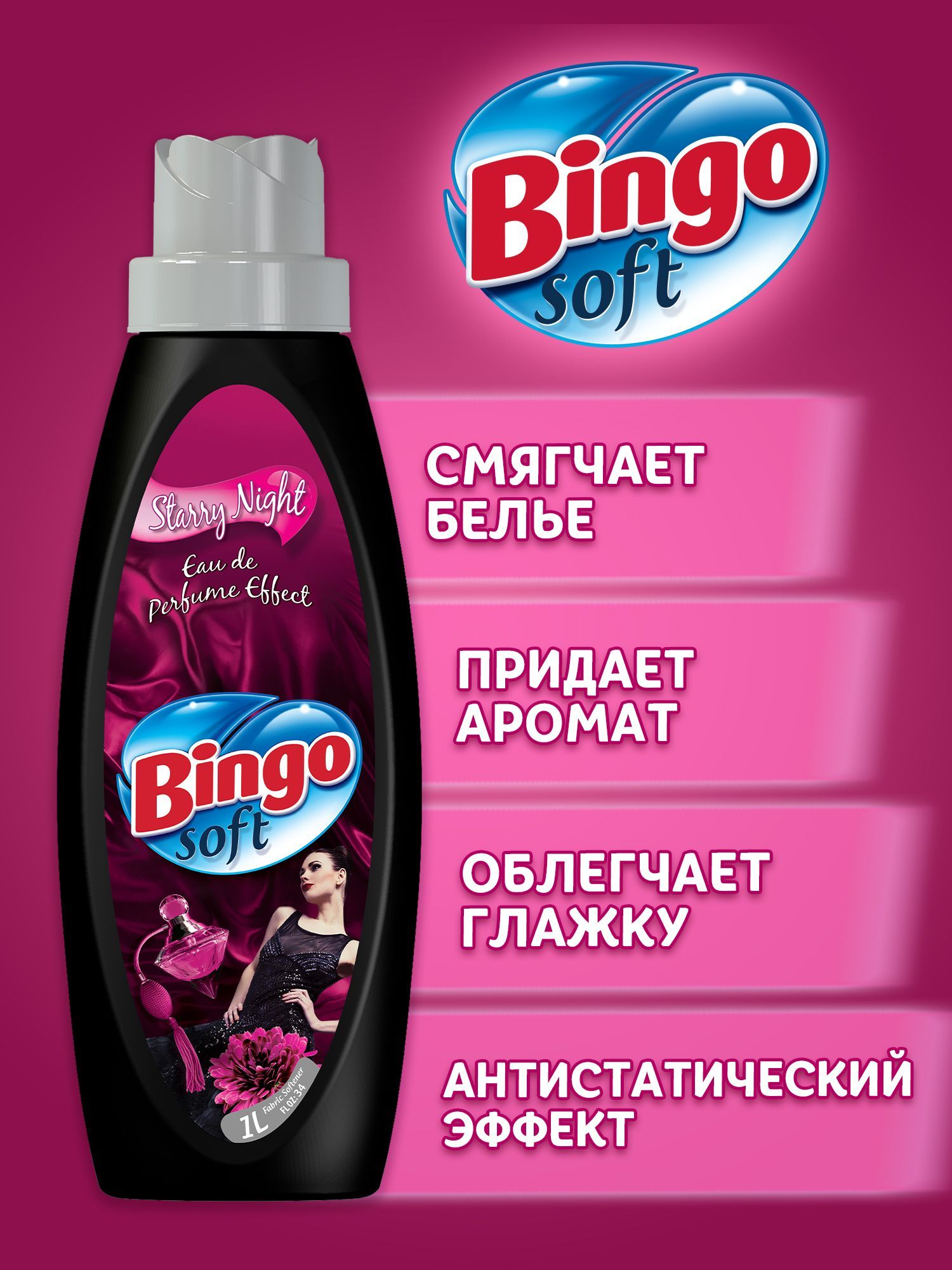 Кондиционер ополаскиватель для белья BINGO SOFT STARRY NIGHT 1000МЛ