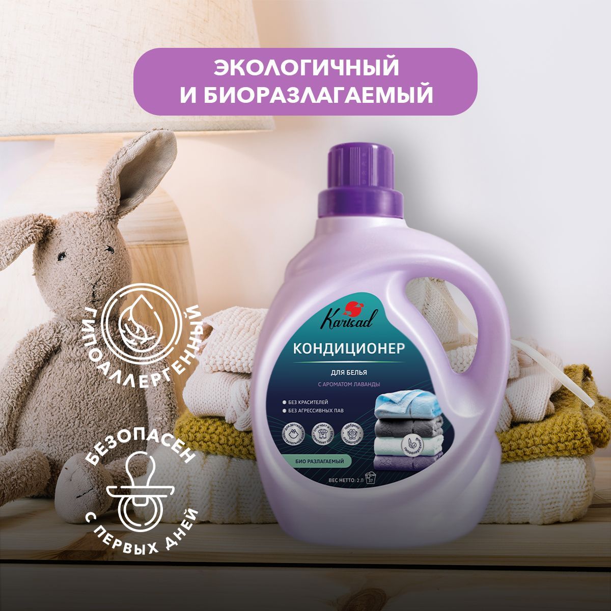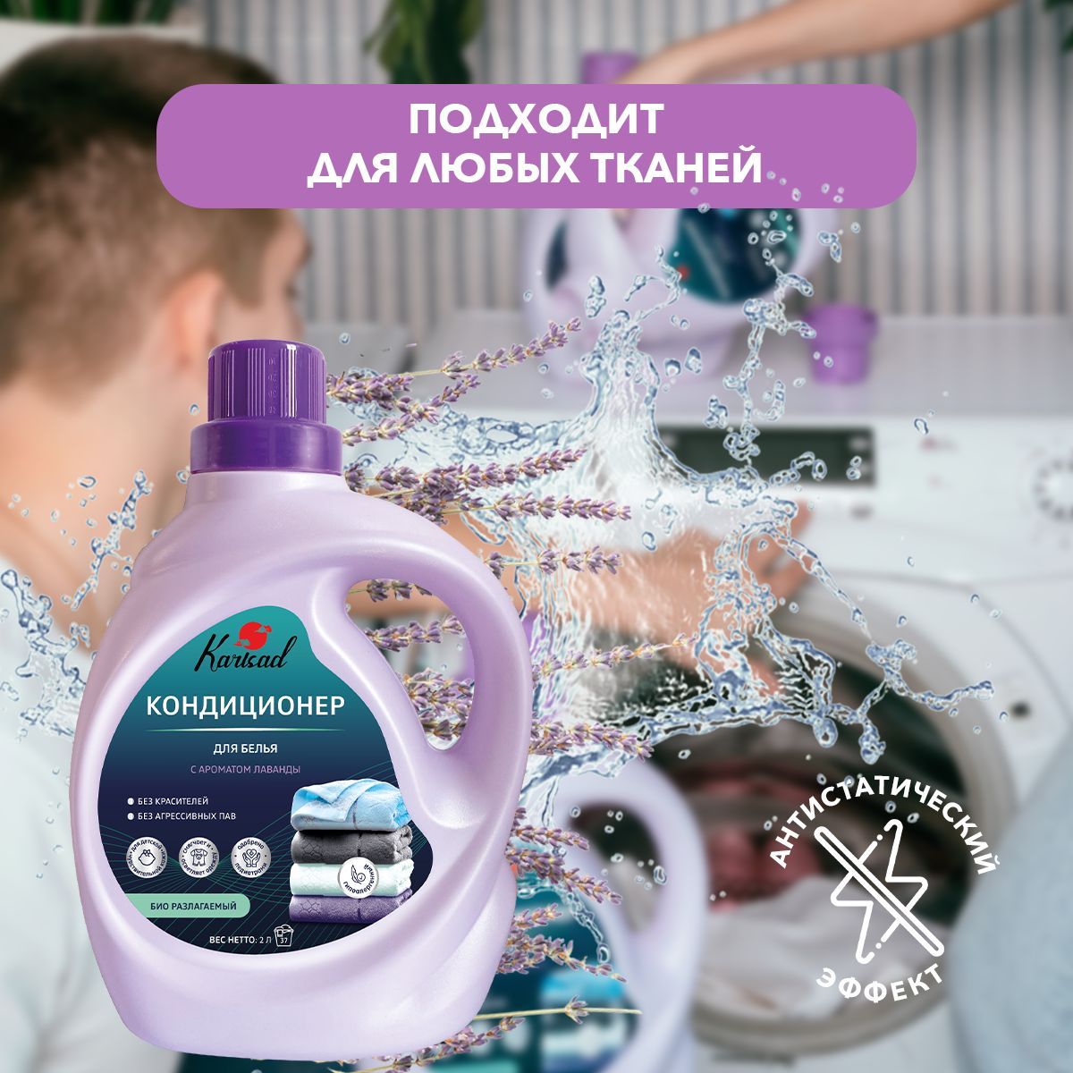 Кондиционер ополаскиватель для белья Karisad с ароматом лаванды универсальный 2л, концентрат, 2 литра для всех типов белья