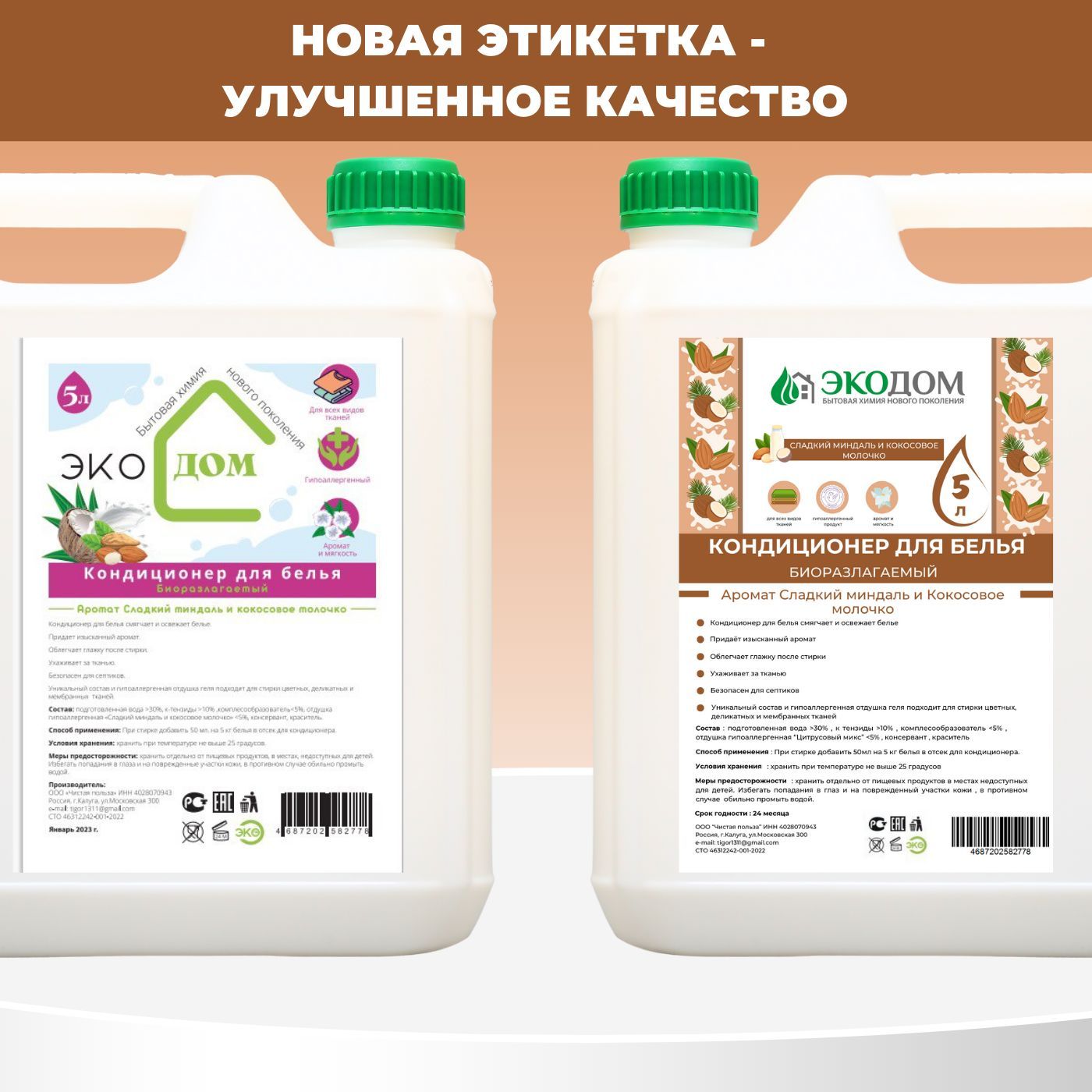 Описание: Представляем вам экологичный и эффективный кондиционер для стирки белья объемом 5 литров. Наш кондиционер - ополаскиватель, предназначен для ухода за различными видами одежды, включая детскую и черное белье. Благодаря гипоаллергенной формуле, наше средство подходит для детей и взрослых с чувствительной кожей. Кондиционер обладает свойствами отбеливателя, которые помогают сохранить яркость и чистоту белого белья. Свежий аромат кокоса оставит ваше белье приятно пахнущим.Представляем вам экологичный и эффективный кондиционер для стирки белья объемом 5 литров. Наш кондиционер - ополаскиватель, предназначен для ухода за различными видами одежды, включая детскую и черное белье. Благодаря гипоаллергенной формуле, наше средство подходит для детей и взрослых с чувствительной кожей. Кондиционер обладает свойствами отбеливателя, которые помогают сохранить яркость и чистоту белого белья. Свежий аромат кокоса оставит ваше белье приятно пахнущим.Наш кондиционер имеет высокую концентрацию, что позволяет использовать его экономично и долго. Благодаря специальной формуле, он придает тканям мягкость и облегчает процесс глажки. Нормофлорин, содержащийся в составе, способствует сохранению качества стирки и гигиены вашей одежды. Вы можете использовать наш кондиционер как для ручной стирки, так и в стиральной машине, будь то автомат или полуавтомат.  Удобная бутылка-канистра облегчает дозировку и хранение продукта. Наш кондиционер - идеальное средство для обеспечения мягкости, свежести и долговечности вашей одежды. Попробуйте наш кондиционер прямо сейчас и получите безупречные результаты стирки!Наш кондиционер имеет высокую концентрацию, что позволяет использовать его экономично и долго. Благодаря специальной формуле, он придает тканям мягкость и облегчает процесс глажки. Нормофлорин, содержащийся в составе, способствует сохранению качества стирки и гигиены вашей одежды. Вы можете использовать наш кондиционер как для ручной стирки, так и в стиральной машине, будь то автомат или полуавтомат.