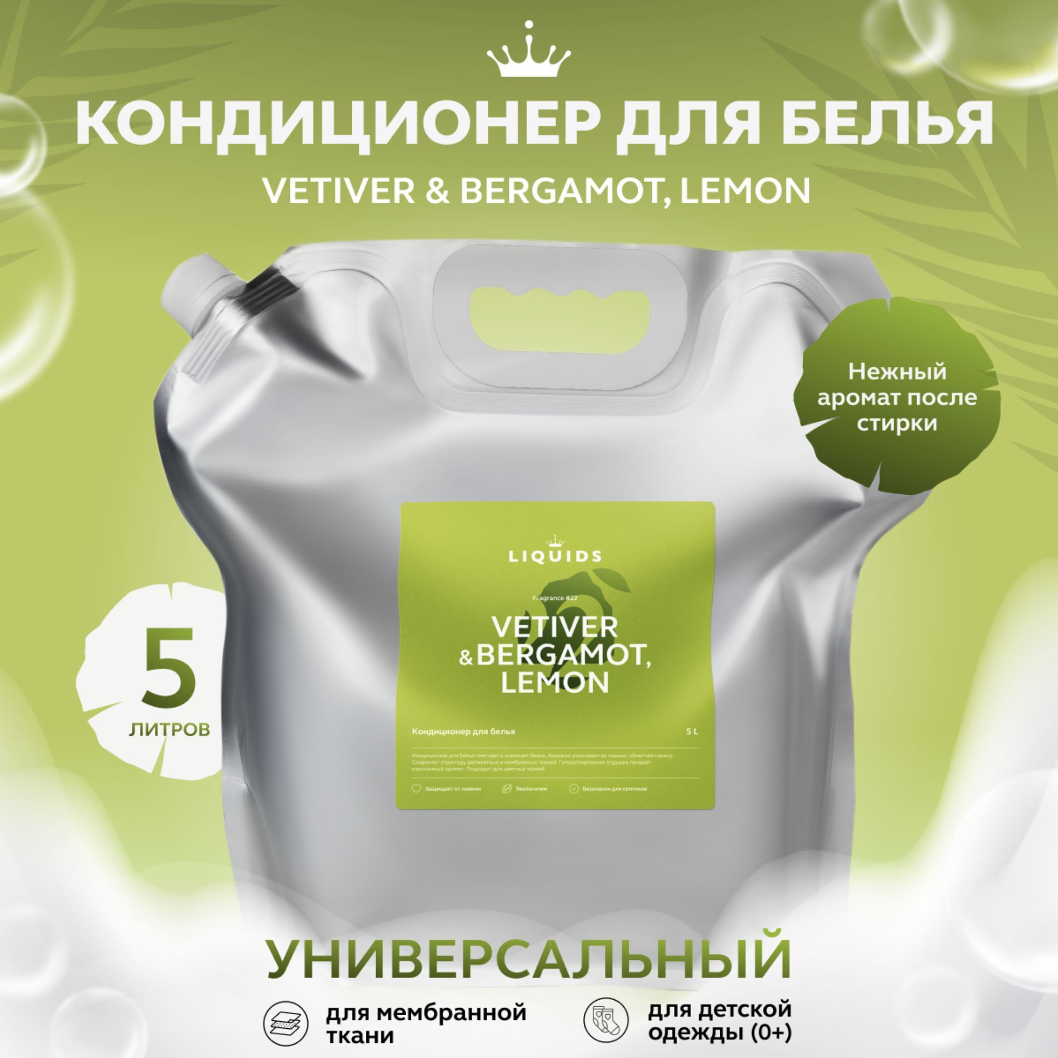 Кондиционер ополаскиватель для стирки белья 5 л с ароматом Ветивер, Бергамот и Лимон, гипоаллергенный, концентрированный смягчитель для всех видов тканей