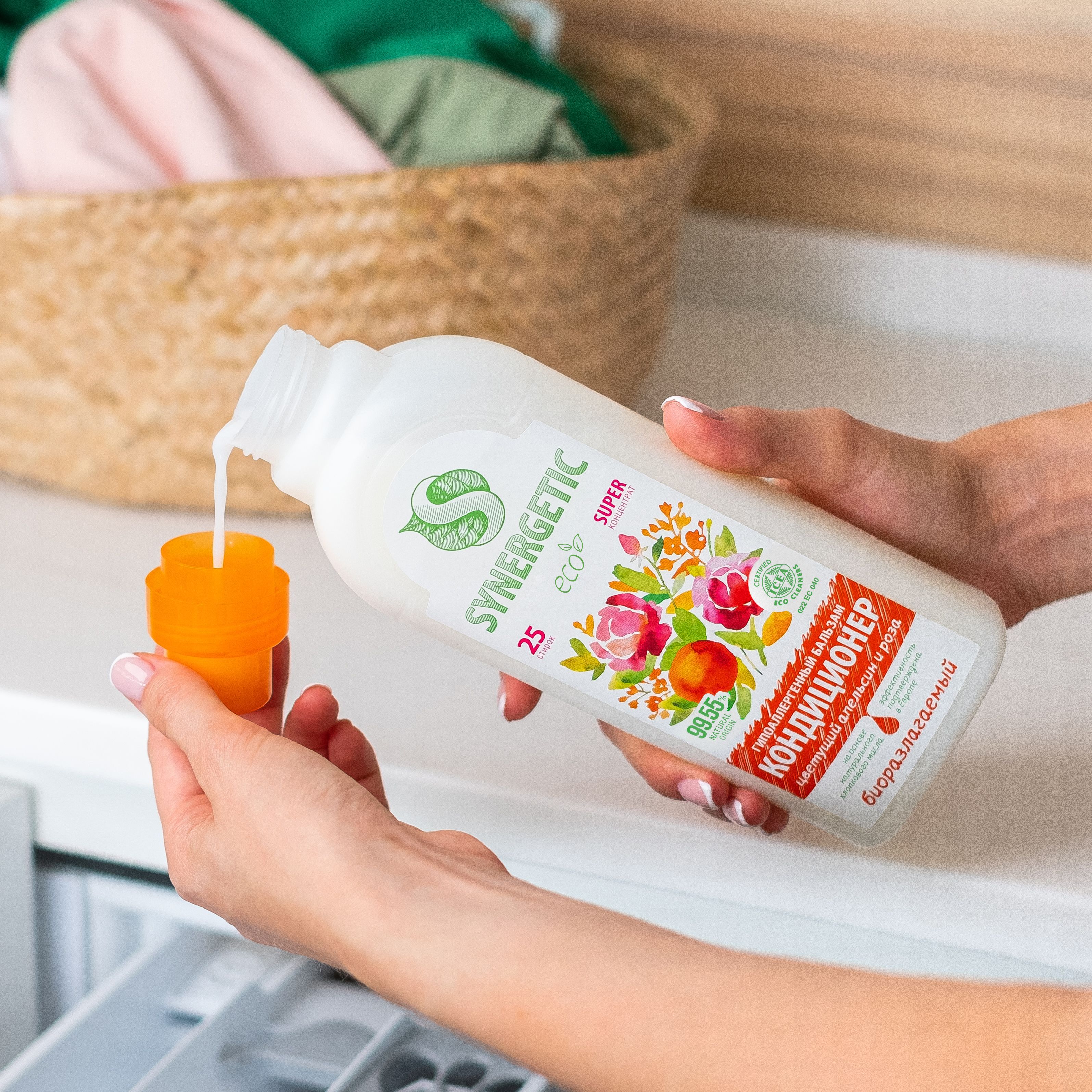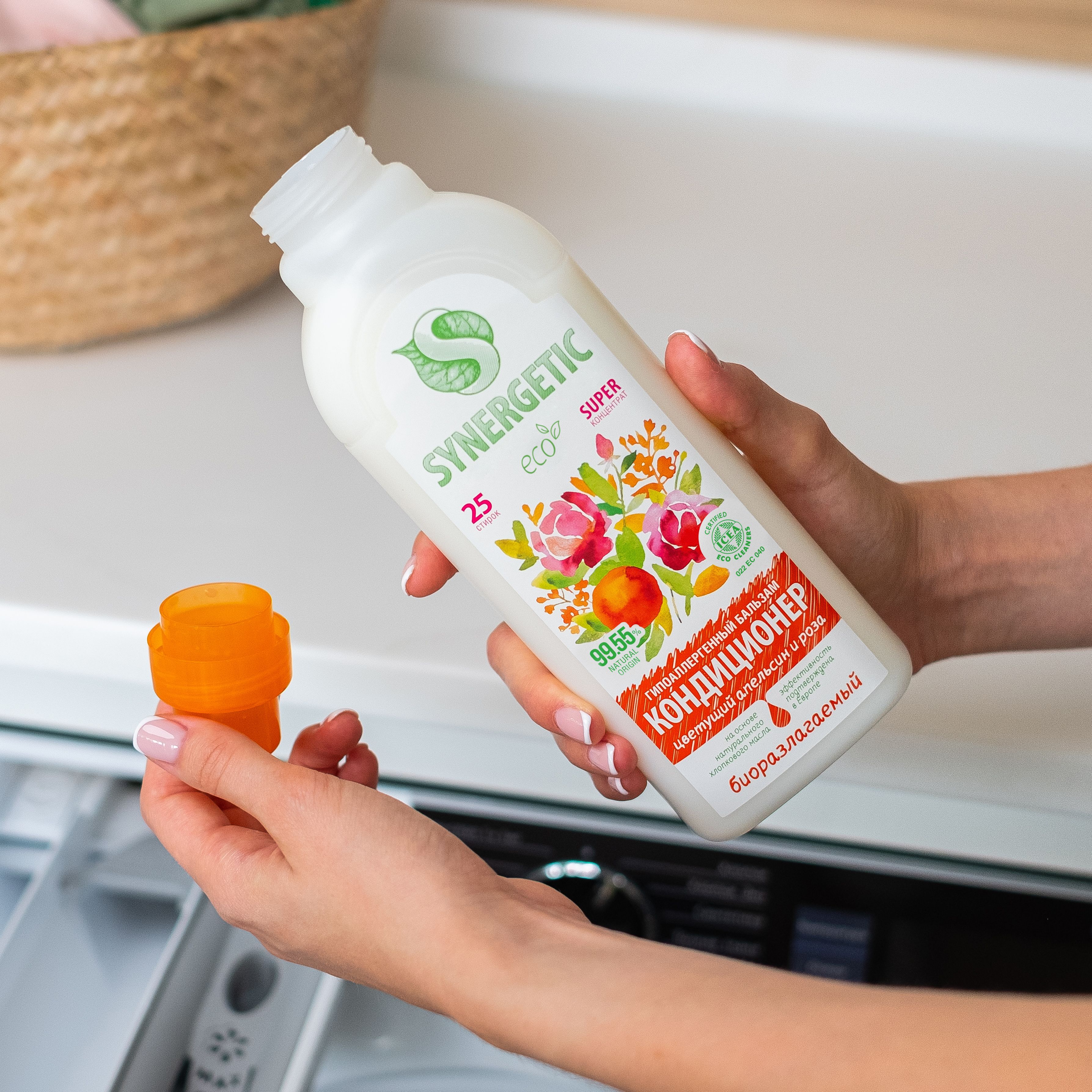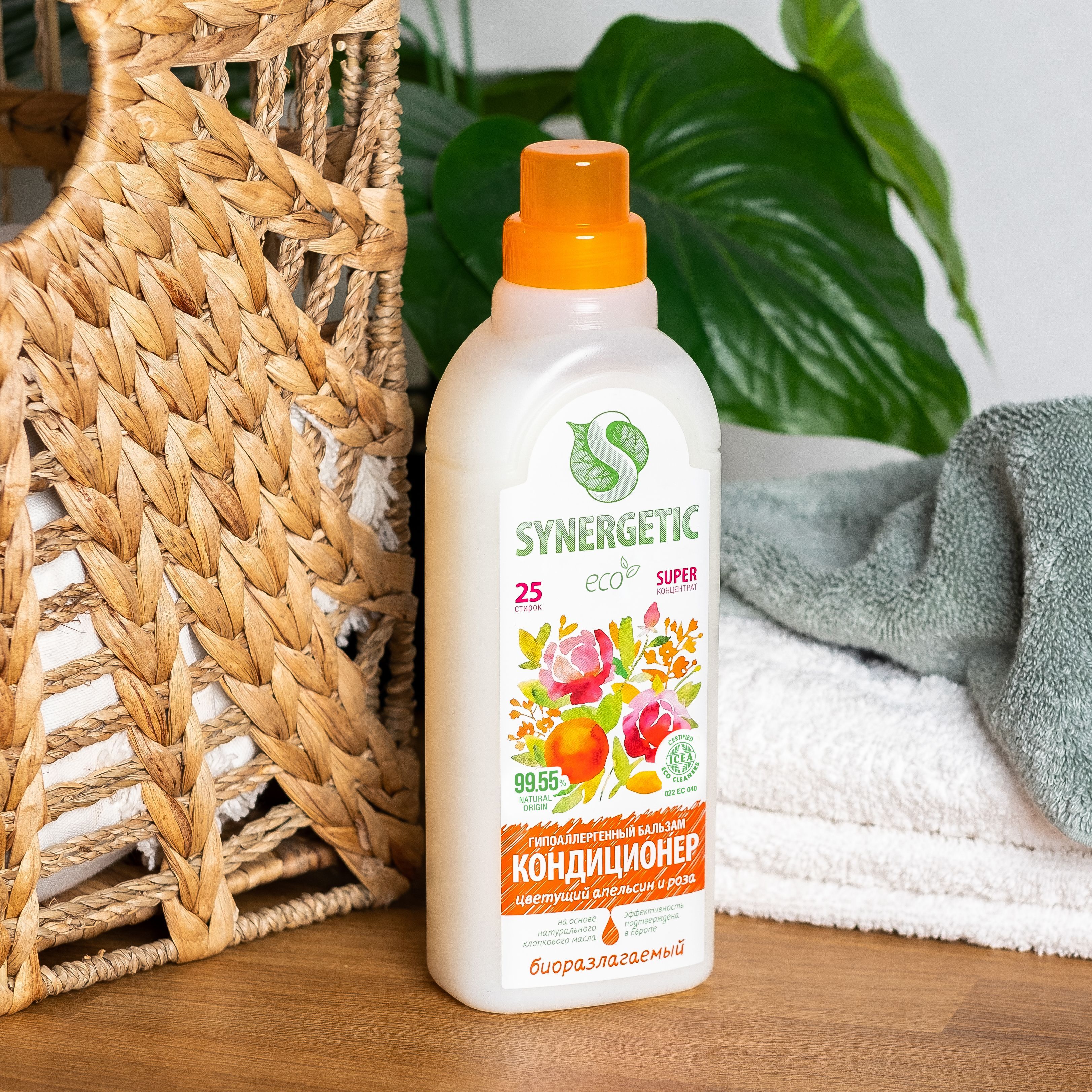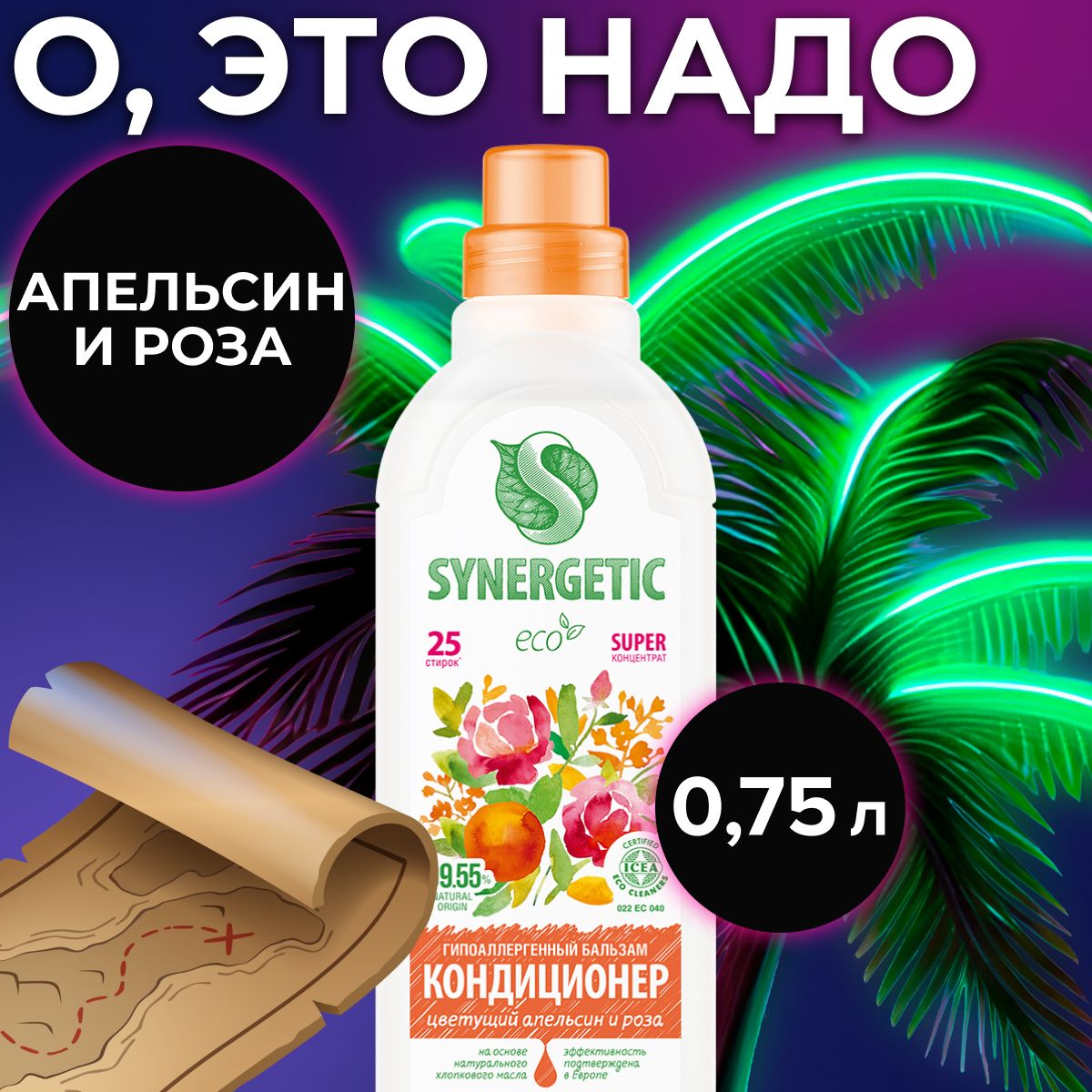 Кондиционер - ополаскиватель для стирки белья SYNERGETIC "Цветущий апельсин и роза" гипоаллергенный, концентрированный, 0,75л, 25 стирок