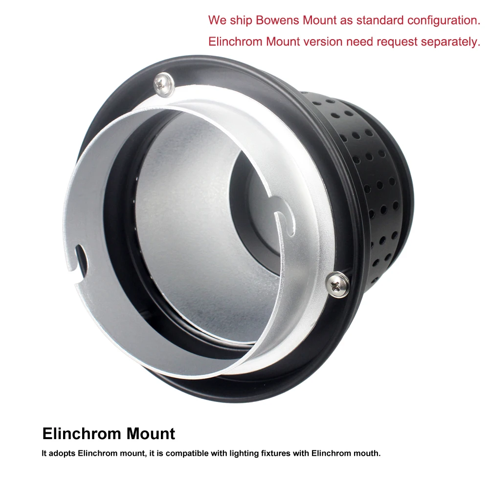 2. Конструкция крепления Bowens. Подходит для студийной стробоскопической вспышки моно светильник светодиодный светильник с креплением Bowens, такие как FW-800G или FW-1500WS светодиодный светильник и т. Д.