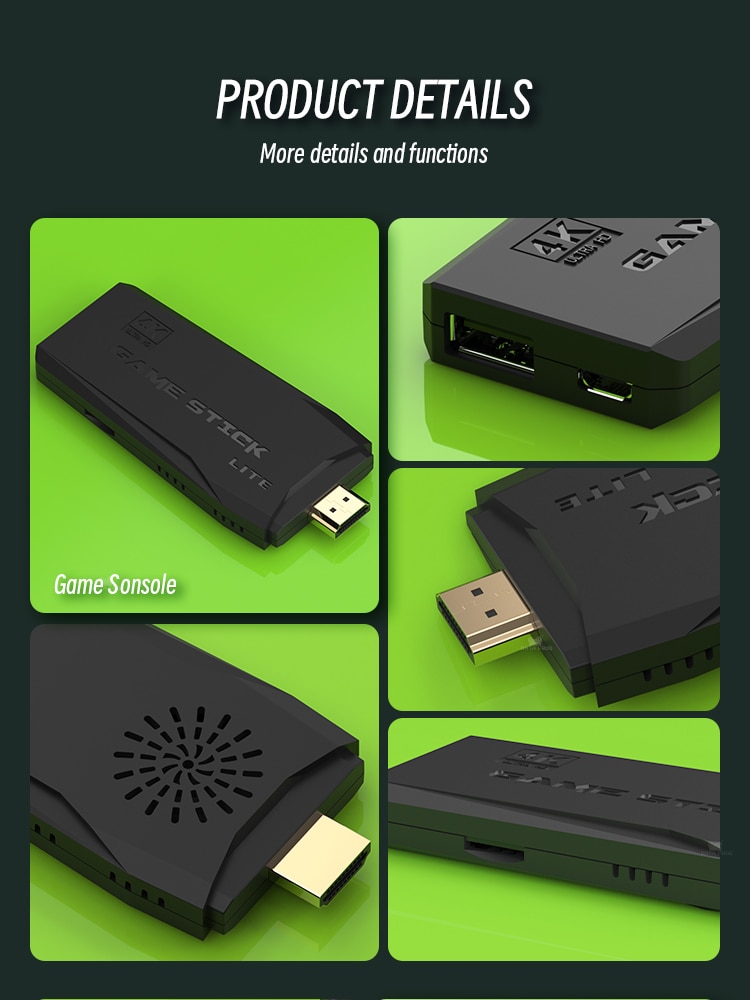 Портативная мини-игровая приставка 4K TV Games имеет легкий и компактный корпус. Подключи и работай, не занимает слишком много места, легко носить с собой, подходит для путешествий и домашнего использования. Эта игровая консоль подходит для телевизора/компьютера/монитора/проектора сверхвысокой четкости, поддерживает соединение, совместимое с HDMI, имеет качество изображения 1080P HD, И можете наслаждаться живыми и интересными видеоиграми на большом экране.