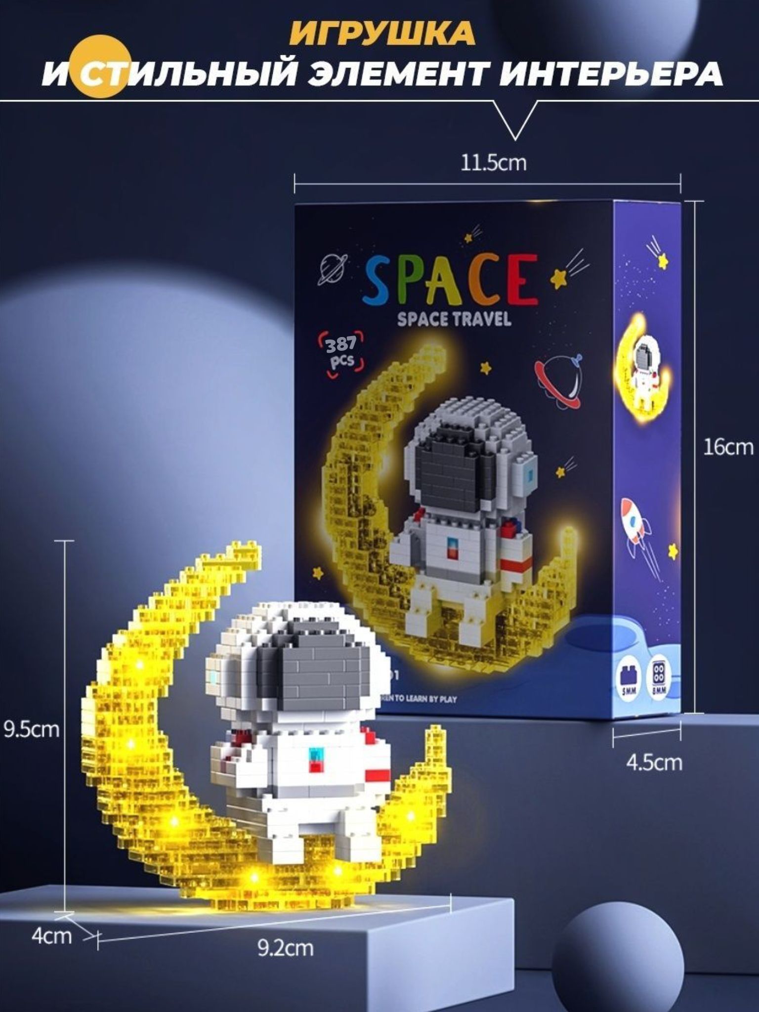 Конструктор 3D из миниблоков светящий космонавт 3д