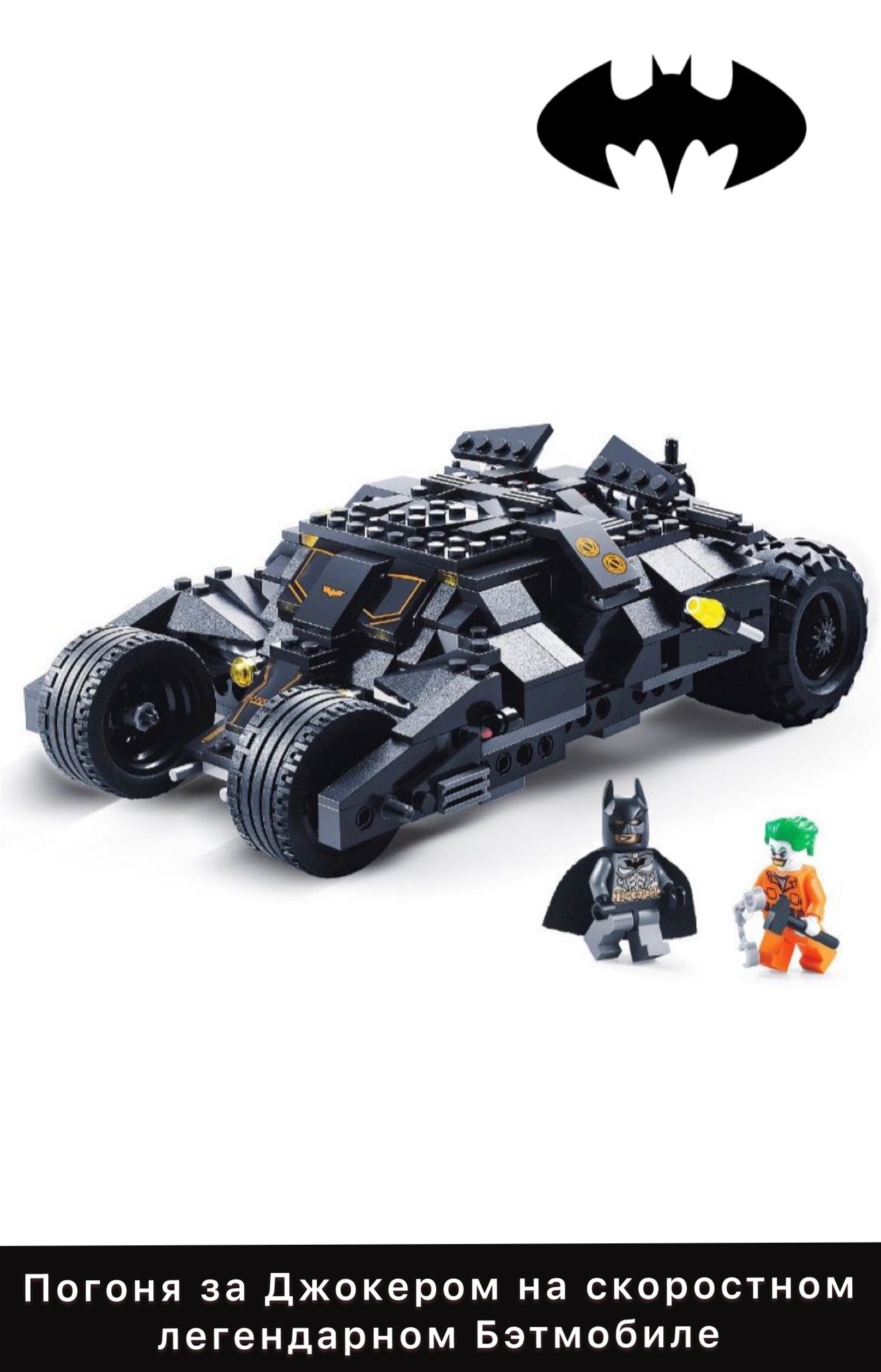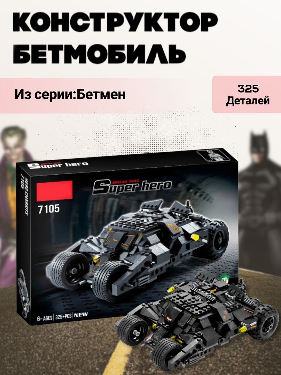 Конструктор Batman Marvel Бэтмобиль "Погоня Бэтмена и Джокера" 325 деталей ; Подарок для мальчика, совмести с лего