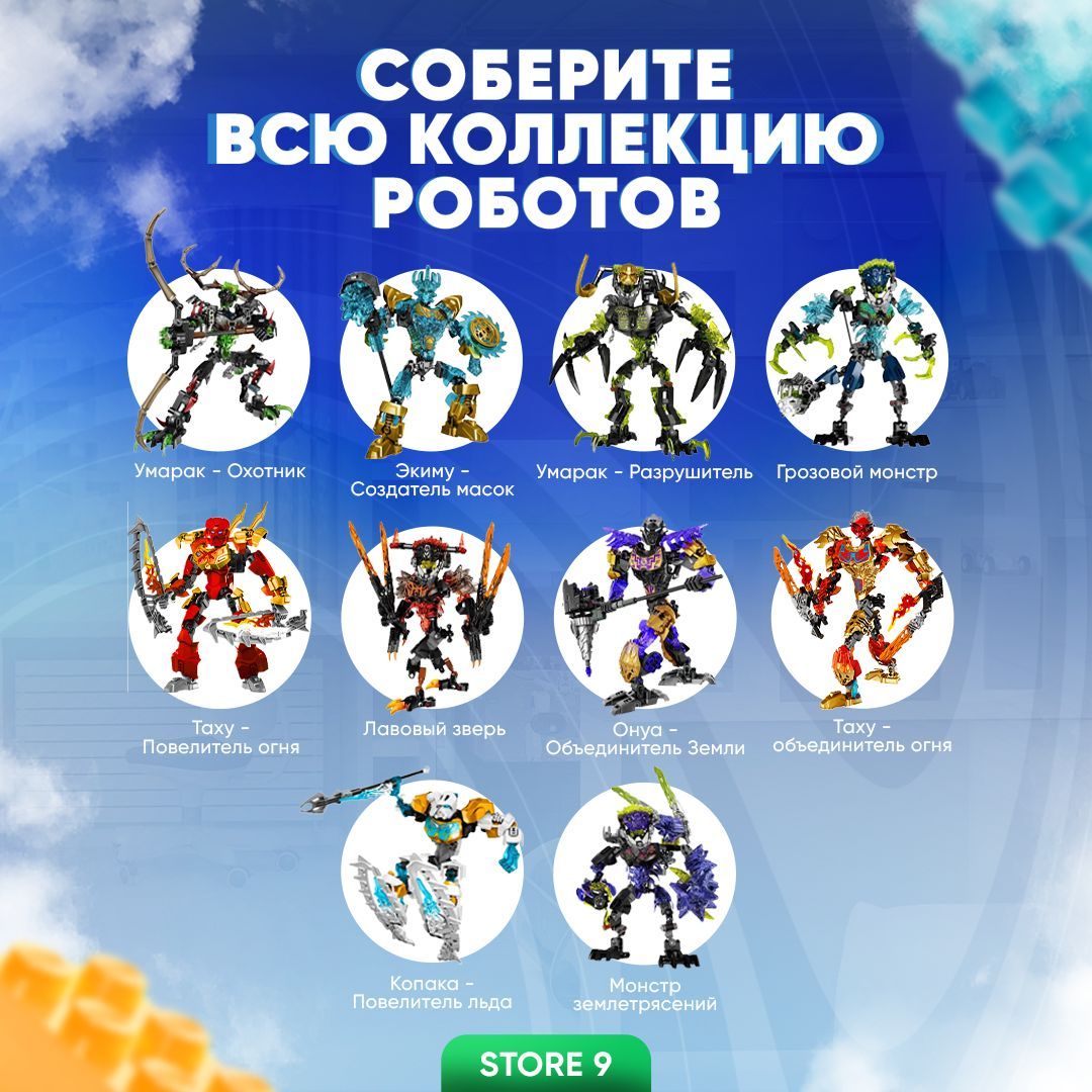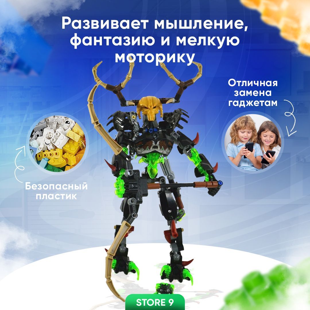 Описание: Конструктор БиониклБионикл конструктор уникальный в своем роде набор из миниблоков. Благодаря компактным размерам деталей bionicle конструктор они обладают уникальным дизайном и красочным оформлением. В собранном виде пластиковый детский конструктор бионикл выглядит очень реалистично и подарит отличное настроение, положительные эмоции и массу приятных воспоминаний всем любителям конструктора бионикл робот.Наборы конструктораБлагодаря тому, что дети сами могут создавать собственные уникальные модели из детского конструктора, они развивают свою фантазию и творческие способности, в процессе сбора робота бионикл умарак. Стоит отметить, что этот набор конструктора для мальчика и для девочки - это не просто игрушка BIONICLE, а насыщенный мир развития, творчества и игры. Играйте вместе с нами в пластиковый конструктор бионикл!
