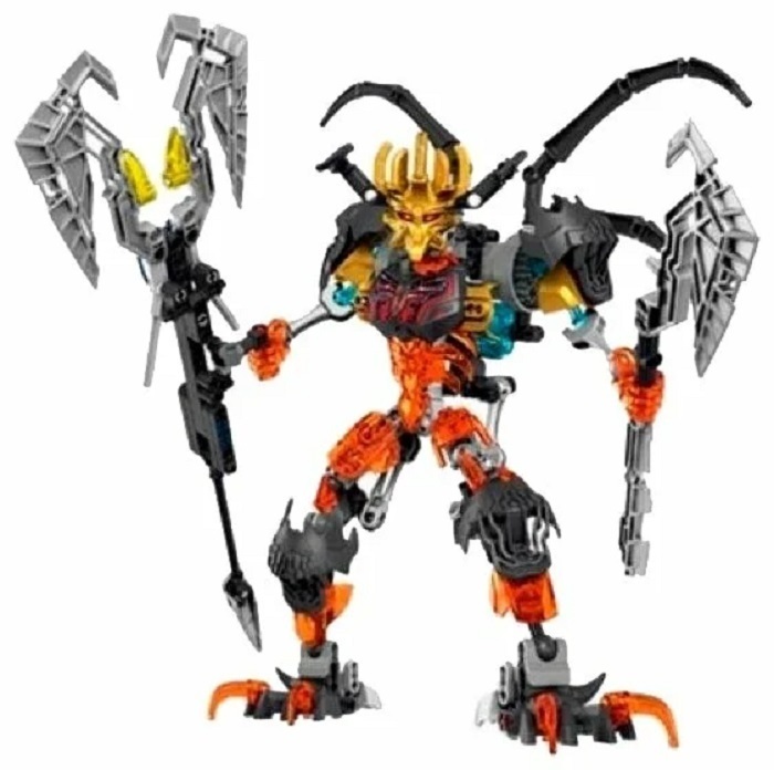 Описание: Конструктор Повелитель скелетов  -  это мега воин, который объединен из трех мощных и грозных роботов. Он состоит из Стального Черепа, Мастера масок Экиму и Черепа-Скорпиона.