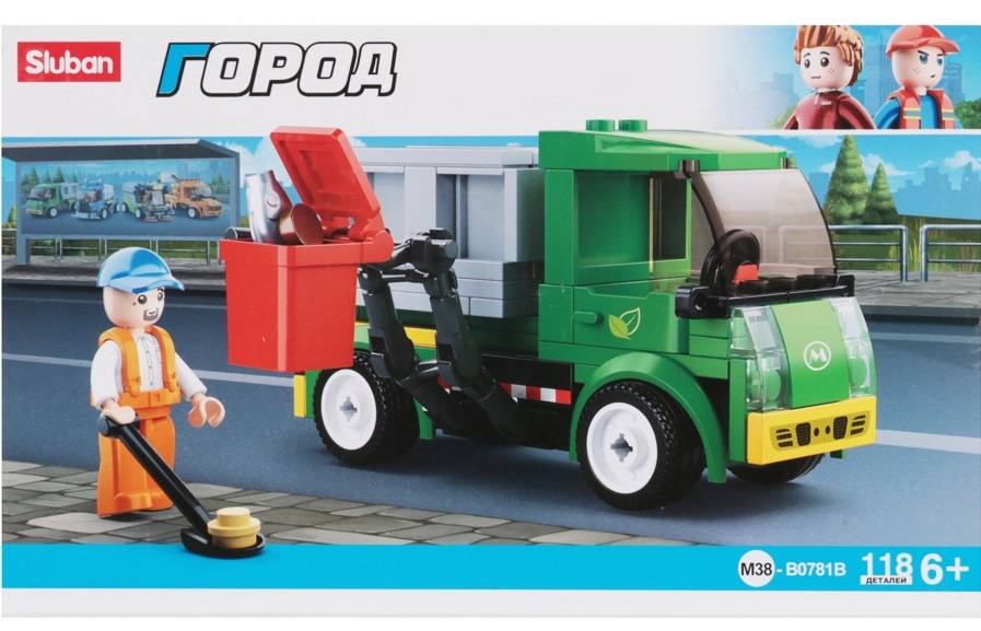 Описание: Чтобы прогуляться по игрушечным улицам было приятно, следить за порядком должны специальные городские службы. А помогает им в этом техника такая, как конструктор Машина для уборки мусора марки Sluban. После сборки конструктора-получается машина-мусоровоз с баком для мусора. В комплект также входит фигурка уборщика улиц и приcпособление для уборки. В игровом наборе - 118 качественных пластиковых деталей и инструкция по сборке. Все элементы расфасованы в полиэтиленовые плотно запаянные пакетыи и упакованы в красочную коробку.
