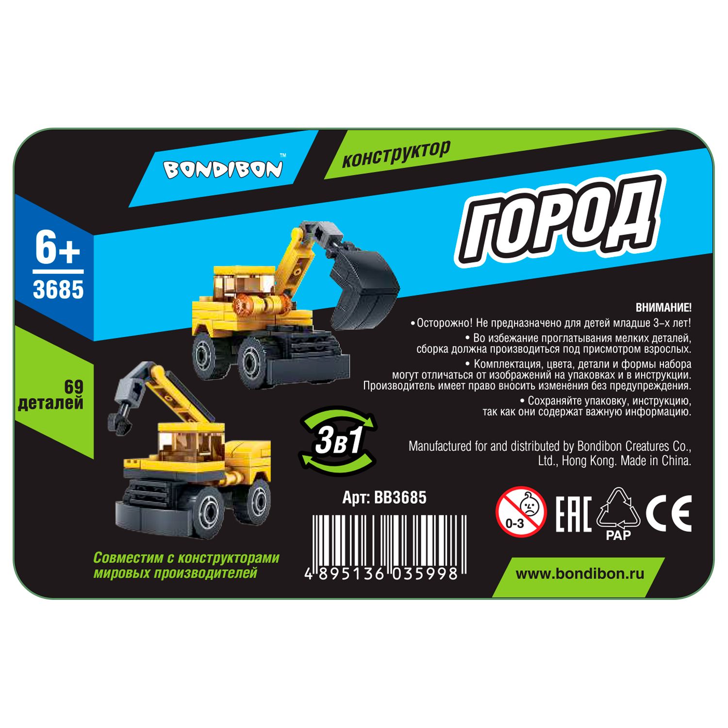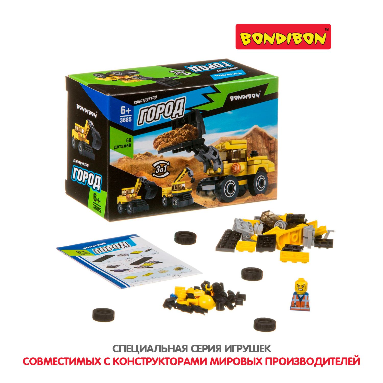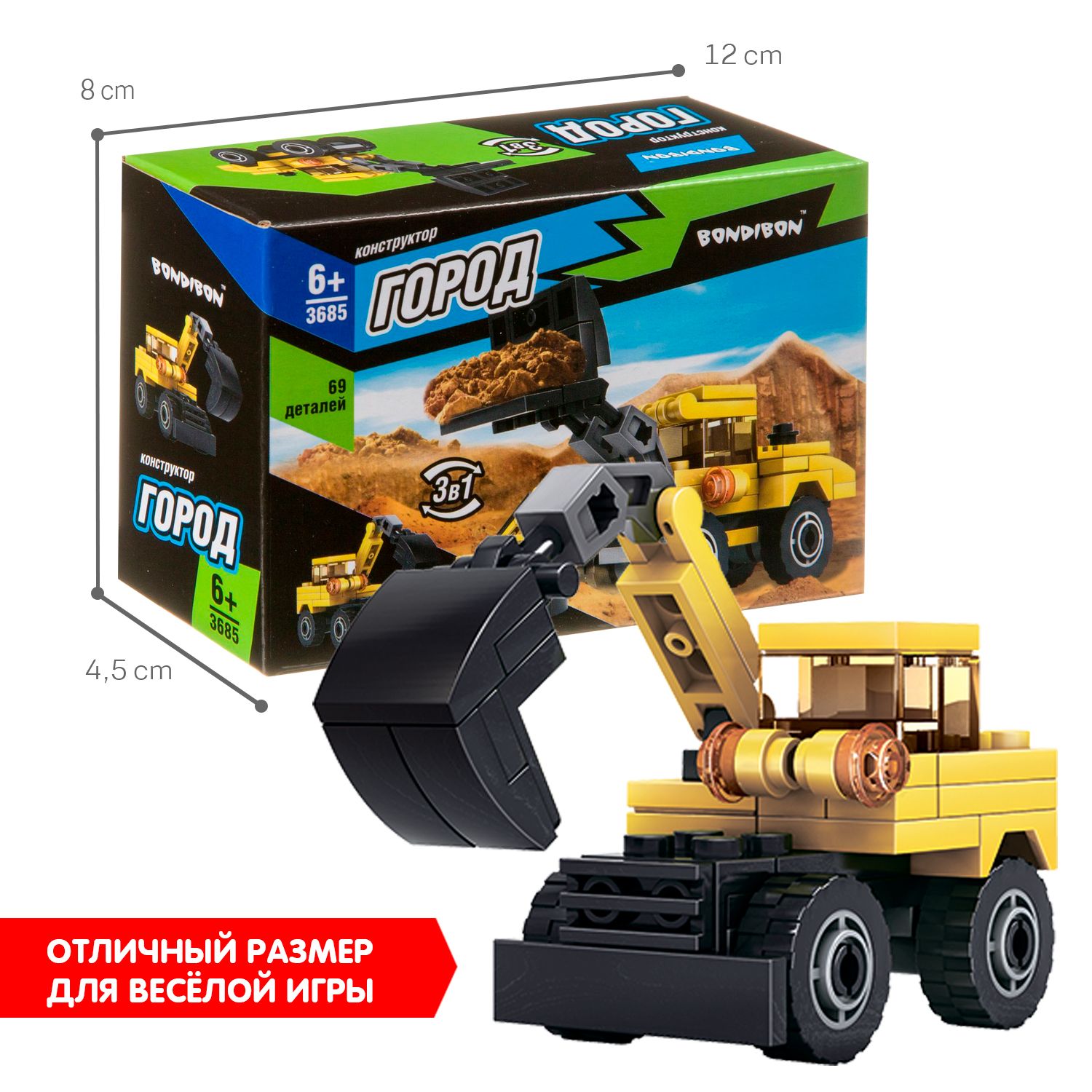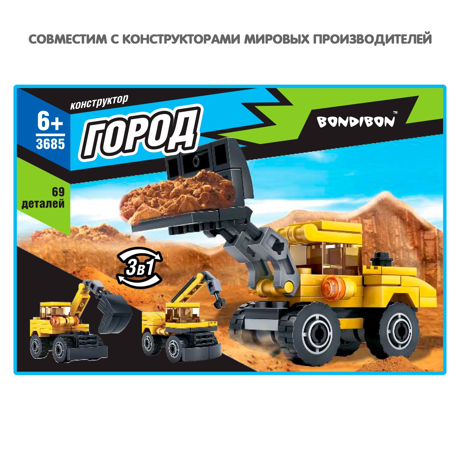 Конструктор Bondibon / 3 в 1 / Город / Экскаватор / 69 деталей / Подарок ребенку