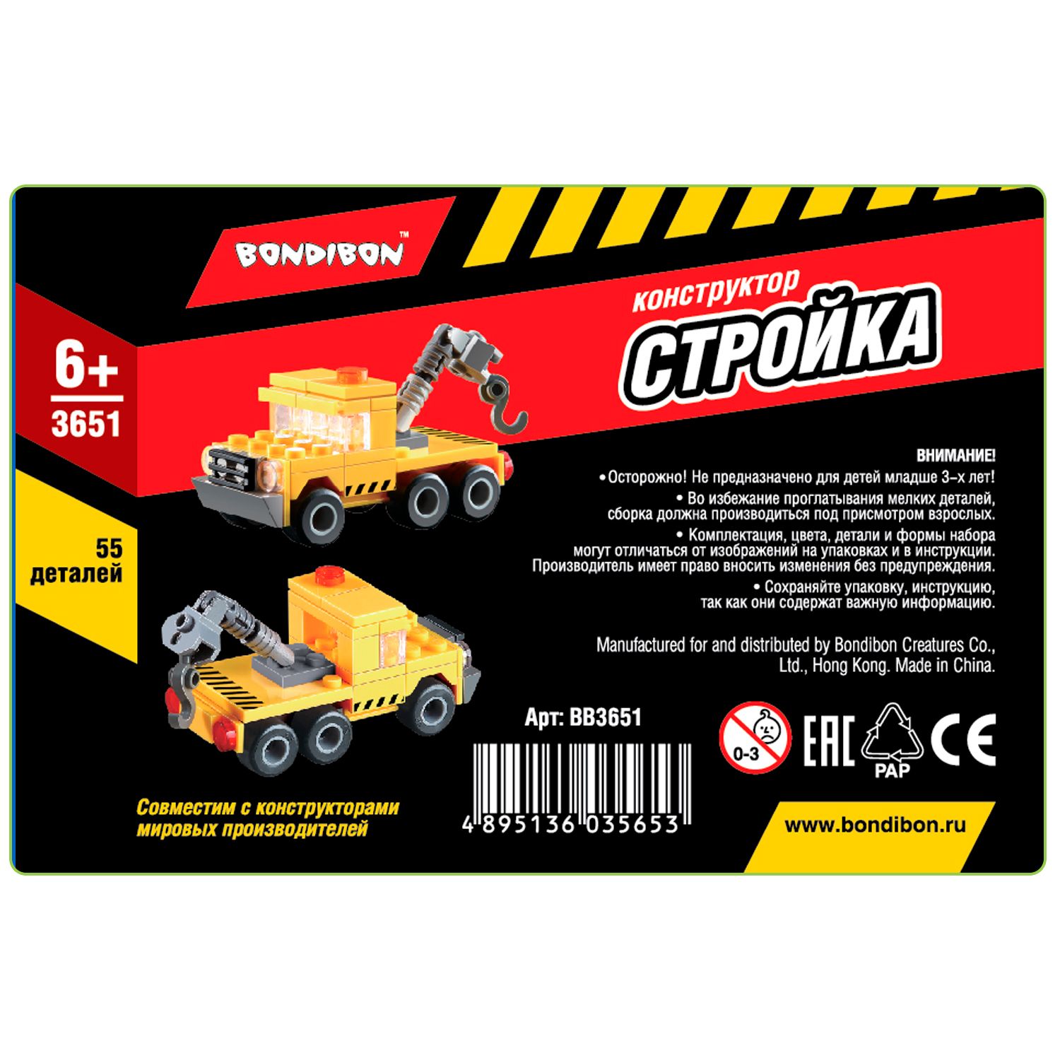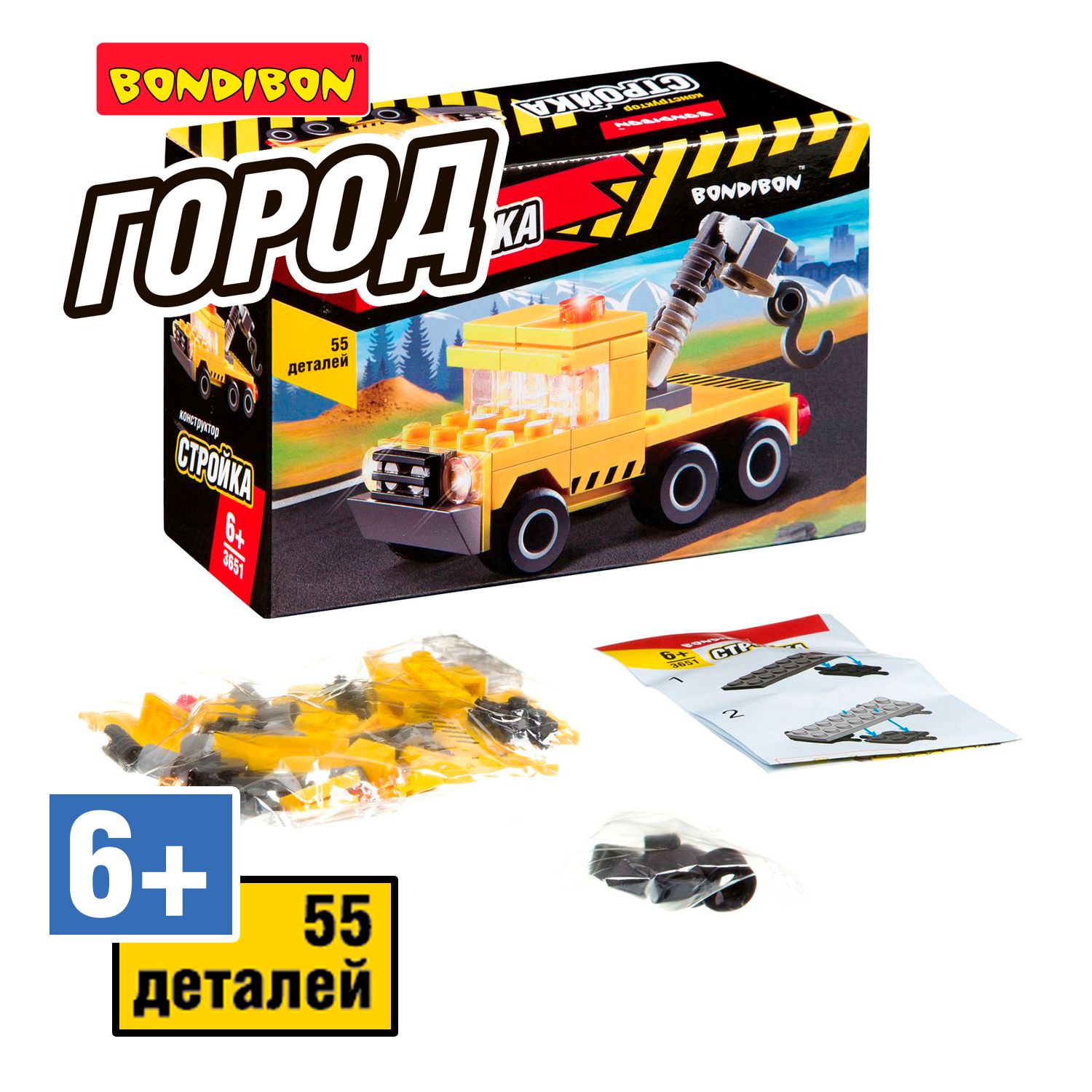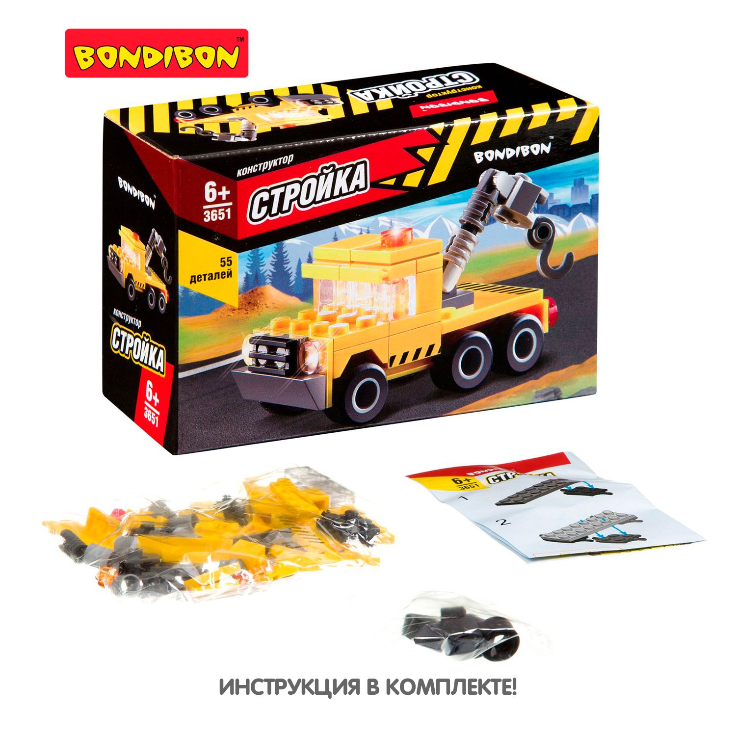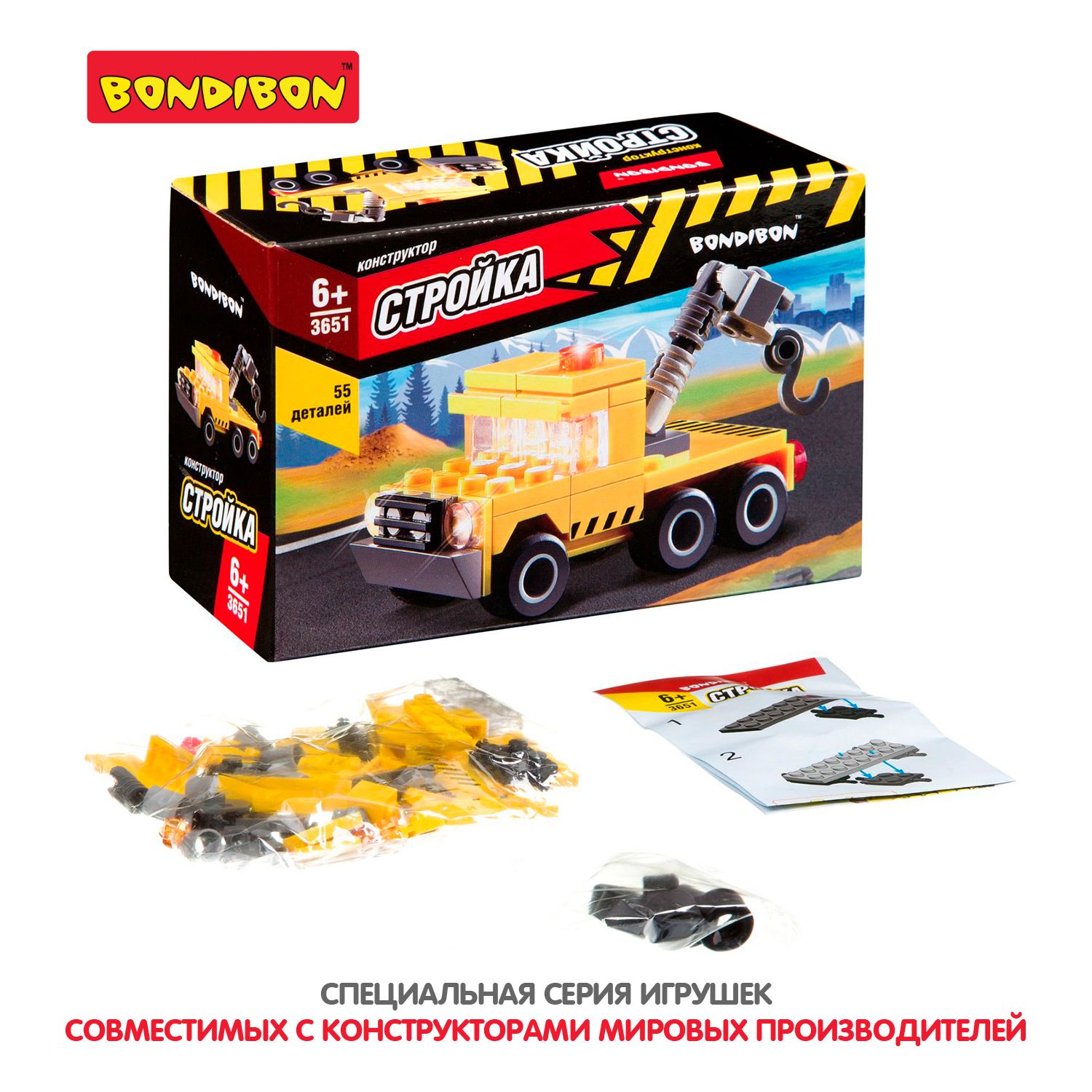 Конструктор Bondibon / Стройка / Тягач / 55 деталей / Подарок ребенку