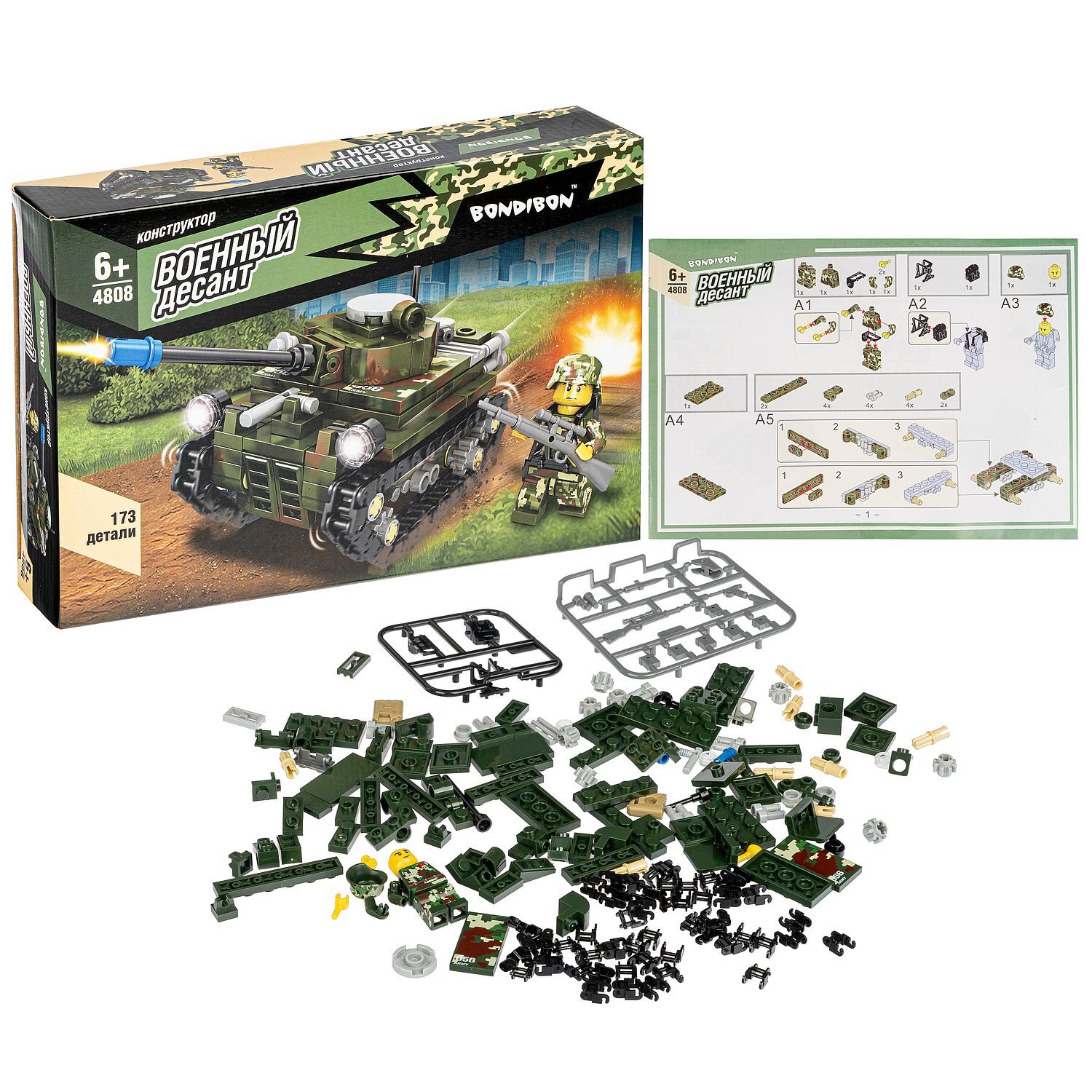 Конструктор Bondibon, Военный Десант, Танк, 173 деталей
