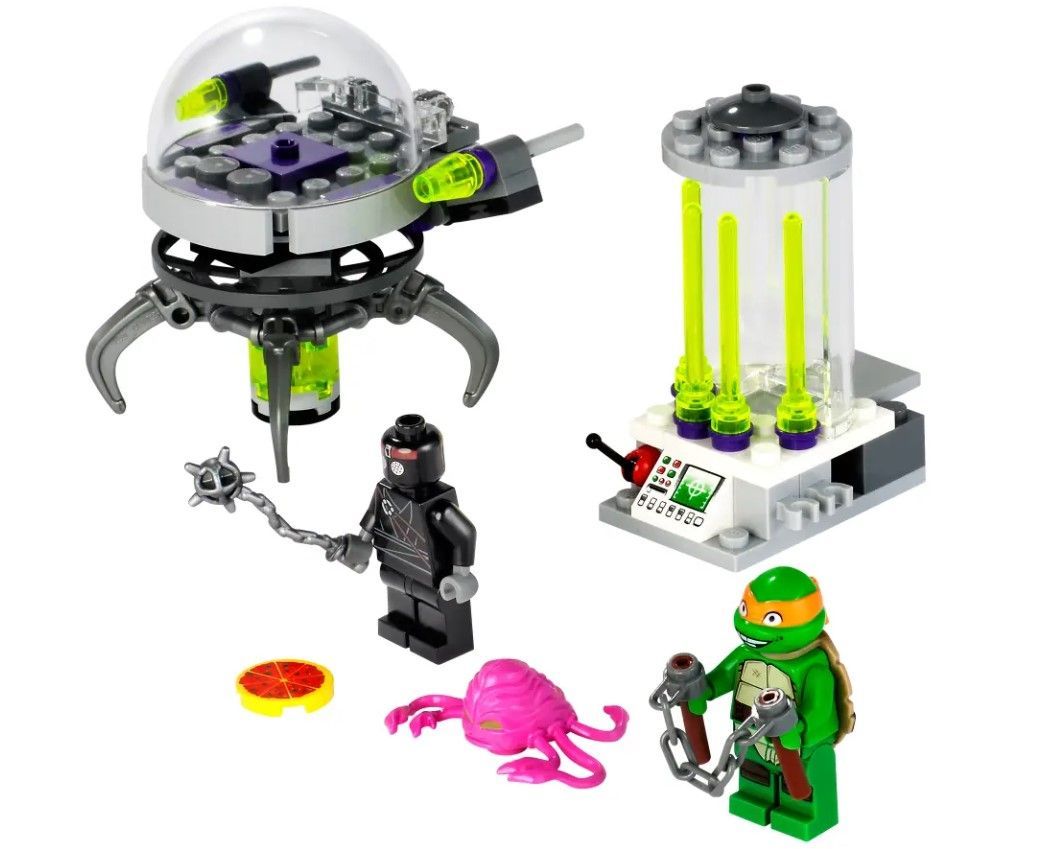 Набор включает в себя 2 Минифигурки ― Микеланджело и Солдат (Ниндзя) клана Фут, а также и Фигурку Крэнга. Оружие, мелкие детали и аксессуары: нунчаки, булава и две [щёлк]–ракеты, а также пицца.