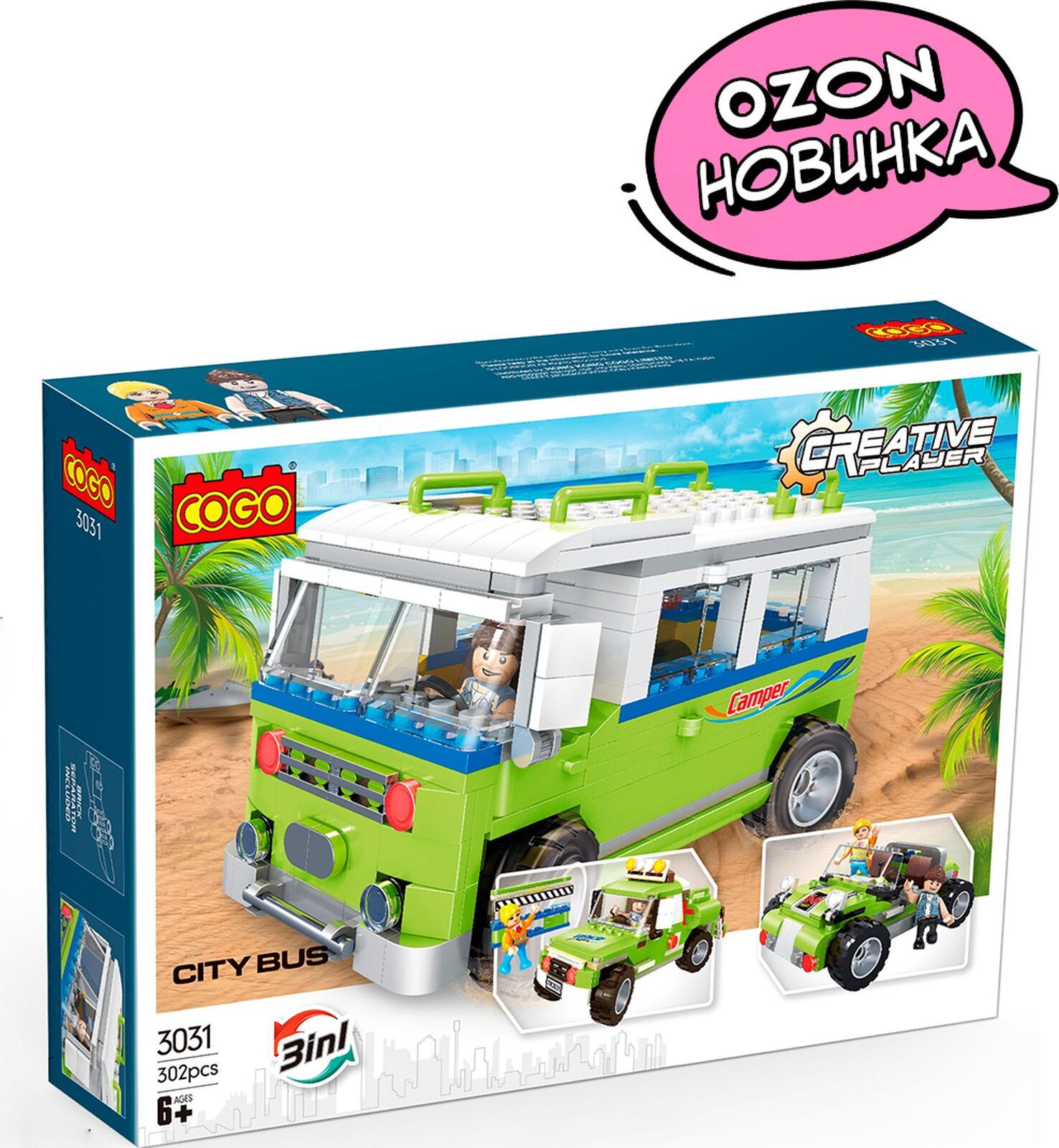 Конструктор COGO Автомобиль для путешествий 3 в 1, лего совместимый, 302 детали, 182237
