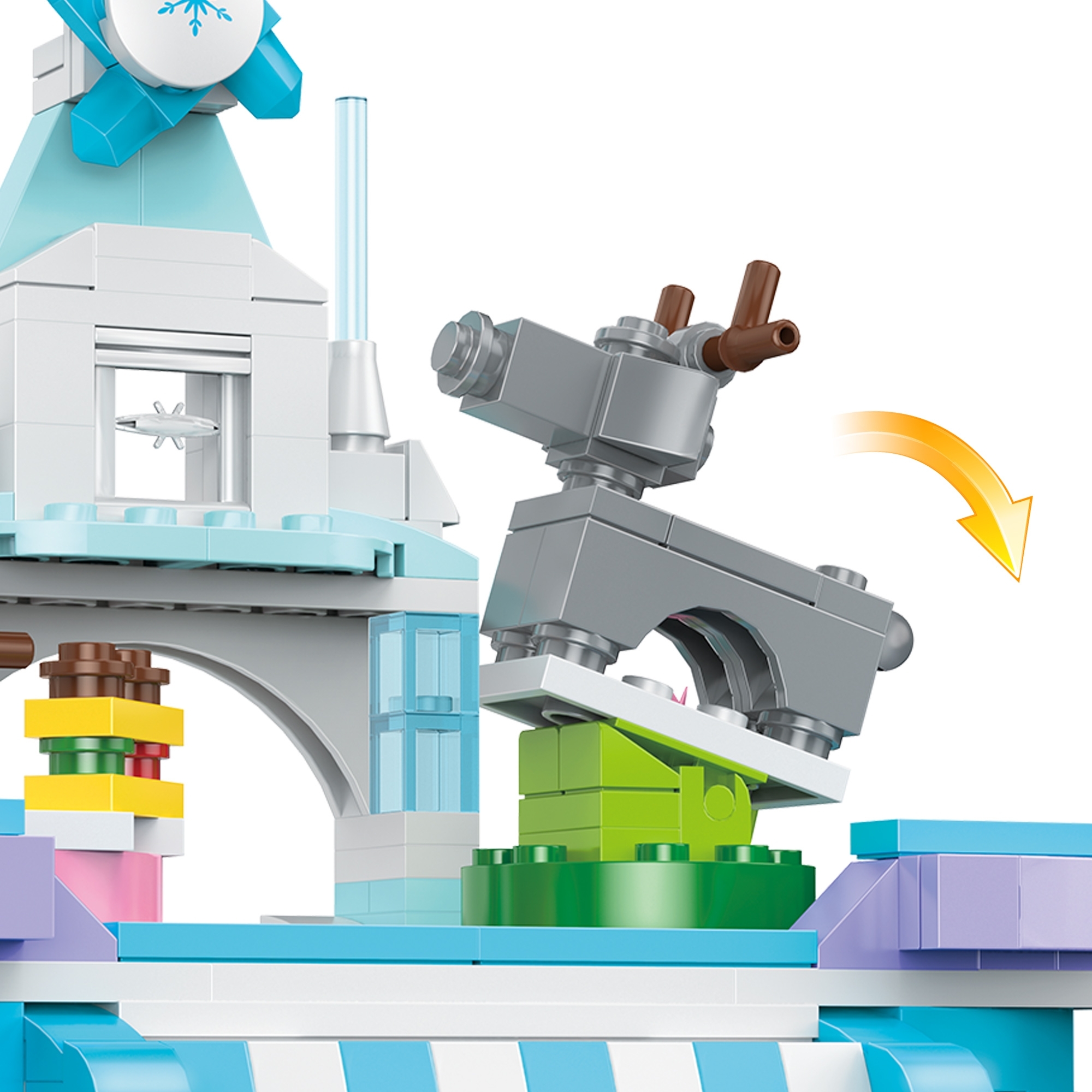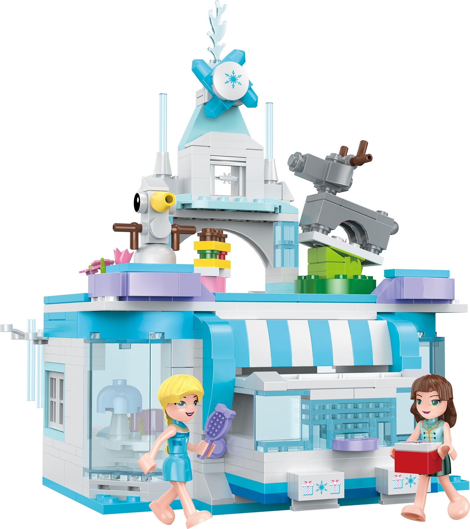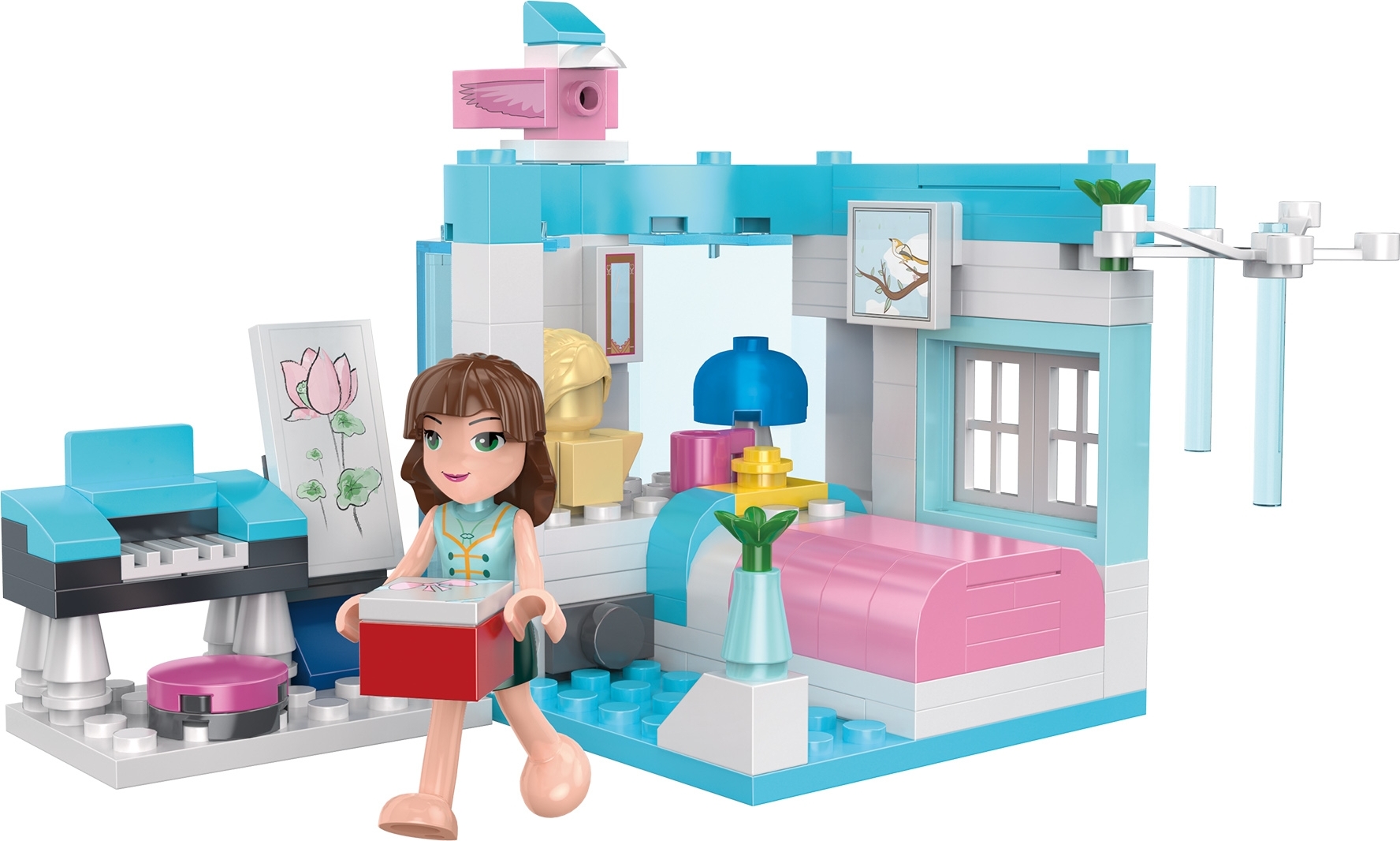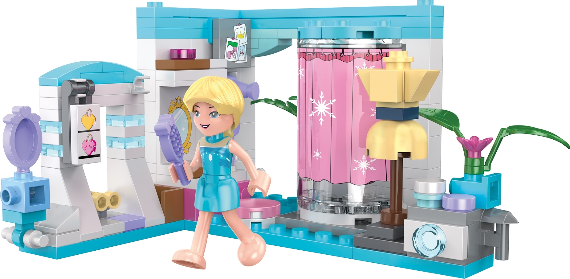 Так, в комплект входит 648 разноразмерных блоков и две игровые фигурки девочек. Из них ребенок легко и быстро соберет кабинет дизайнера одежды, художественную и музыкальную галерею, зоопарк с милыми животными или симпатичную шкатулку для бижутерии и драгоценностей. Все эти конструкции соединяются вместе в одно большое сооружение.