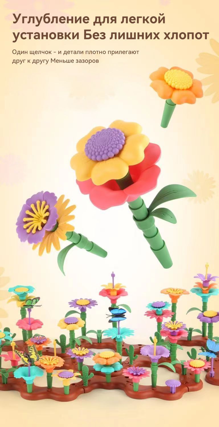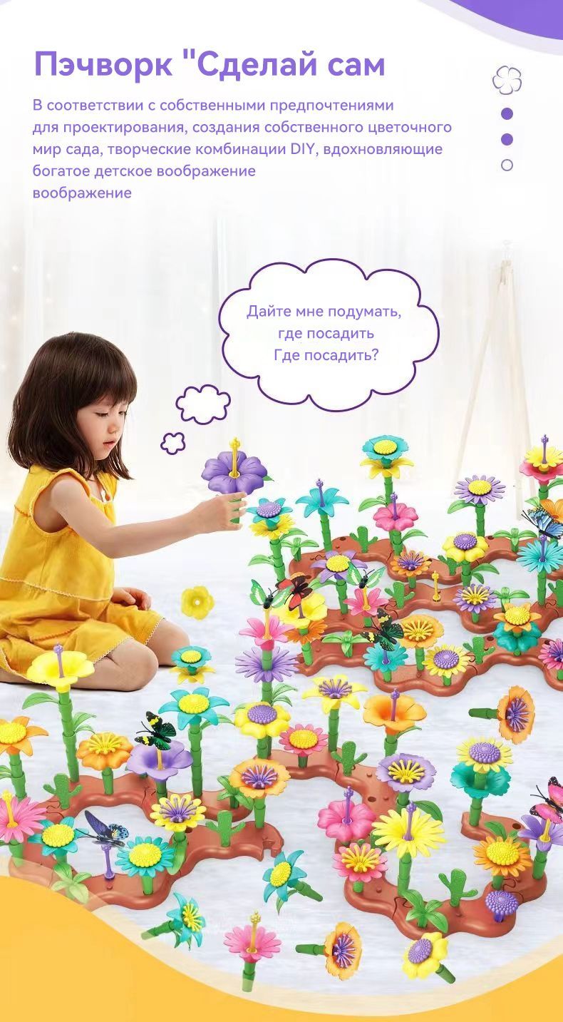 Конструктор "Цветочный сад" пластиковый настольный для девочек, мальчиков, игровой набор, мозаика Клумба, 224 детали