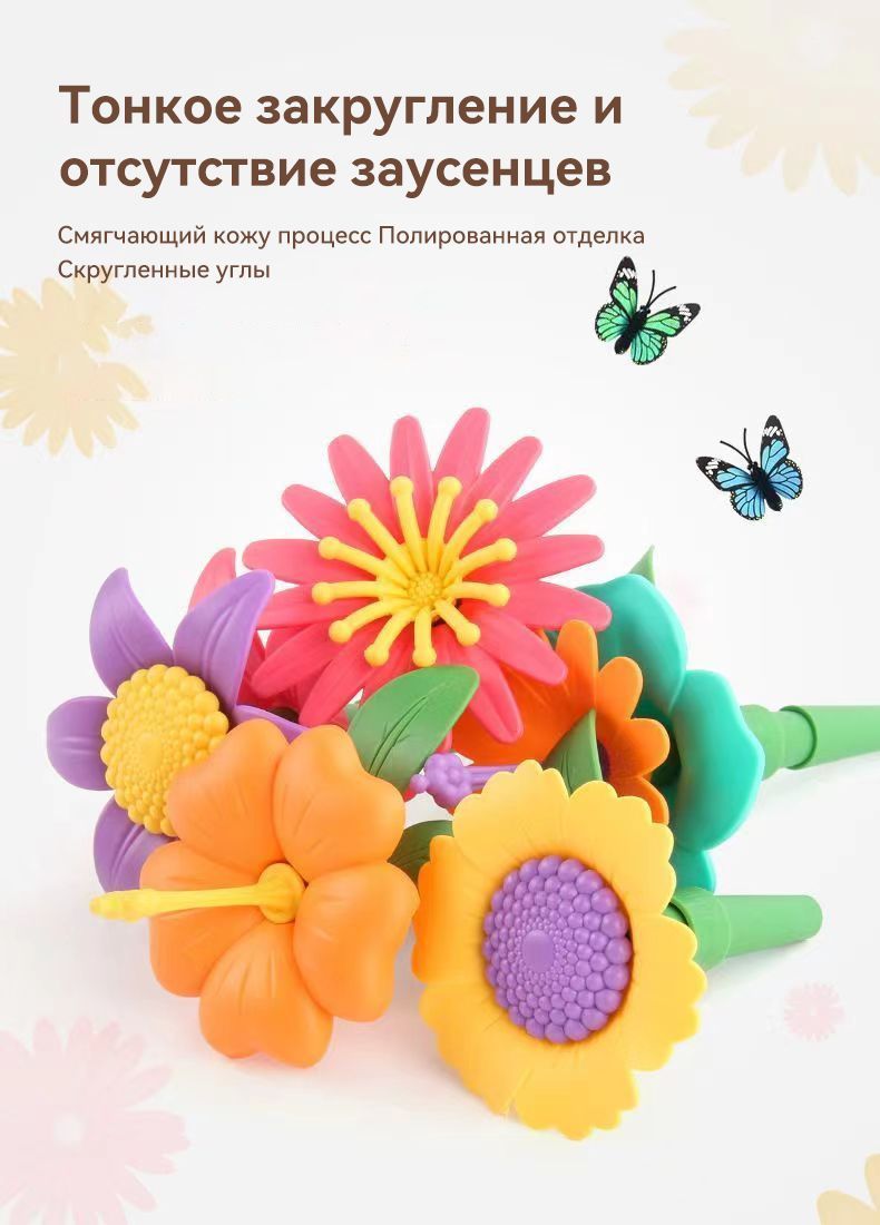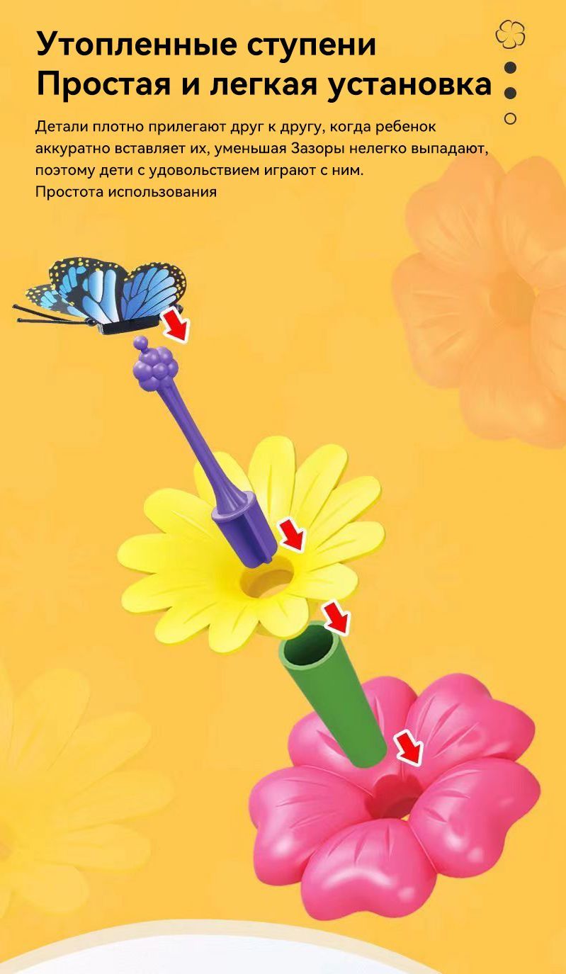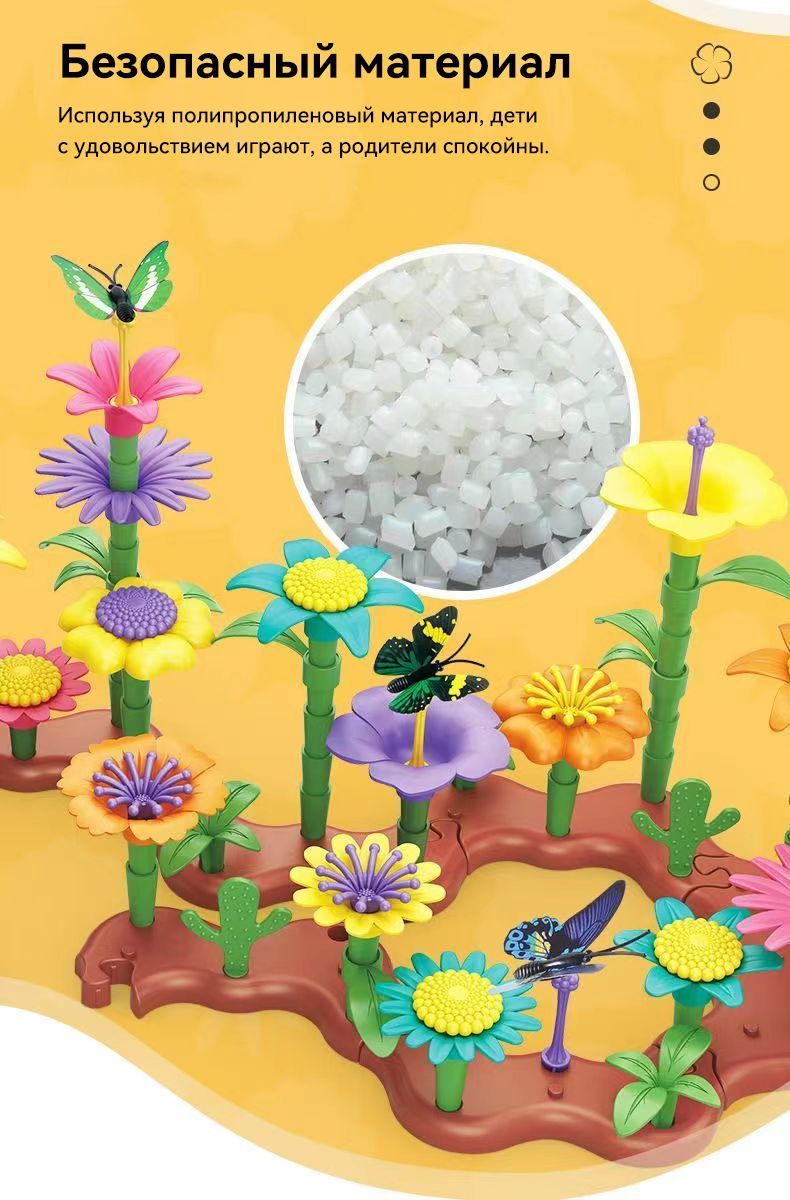 Описание: Развивающие игрушки для девочек и мальчиков - Конструктор цветы Цветочный сад по методике Марии Монтессори - радость для любого ребенка. Купите игровой набор для Волшебный сад клумба с цветами. В этом наборе много деталей. Эта мозаика как и пазлы для детей не оставит равнодушным любого ребенка. В комплекте клумба для цветов, новинка большие листья, множество цветов и стеблей, бабочки. Стебли ровные и изогнутые.Цветочный набор помогает понять структуру живых цветов. С помощью множества лепестков и листьев, дети могут создавать различные комбинации цветов, букетов и клумб. Это будет развивать свои навыки: воображение, усидчивость, мелкую моторику. Все детали игры легко вставляются и вынимаются, у детей не возникает сложностей при сборке клумбы. Абсолютно все детали являются взаимозаменяемыми. Конструктор цветок развивает зрительно-моторную координацию и мелкую моторику, улучшает эстетику и творческие способности ребёнка. Набор для детей помогает отвлечься от гаджетов и провести время в кругу семьи, это отличный подарок на день рождения, 23 февраля, 8 марта и другие праздники.