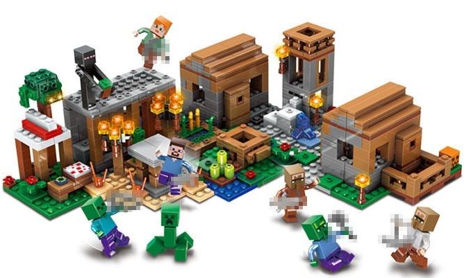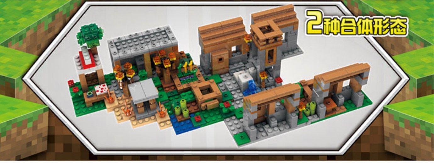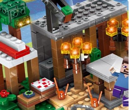 Описание: 4 конструктора в одном наборе , которые собираются в один большой! – качественный конструктор самого популярного формата! Детали легко соединяются между собой, и ребёнок без труда может собрать весёлый игровой комплект, придумывая различные сюжеты в игре. Игры с конструктором развивают творческое мышление, усидчивость и мелкую моторику. Полный набор всех 4 конструкторов состоит из 803 деталей и 8 фигурок. Представляем набор из , который впечатляет своими размерами и продуманным функционалом. Основой набора служит масштабная модель, состоящая из нескольких локаций. Благодаря модульному строению их очерёдность можно менять, трансформируя пространство и добавляя новые объекты. Условно всё игровое поле разделено на несколько частей, включающих в себя элементы леса, луга, пустыни и покрытых снегом скал .Слева располагается дождевой лес, характеризующийся обилием зеленой травы, папоротников и высоких деревьев. Под раскидистой кроной одного из них устроен небольшой рынок. Его отличительной особенностью является красно-белая крыша и столешница, играющая роль прилавка. На ней деревенские жители раскладывают свой товар, состоящий из продуктов питания и ценных предметов. При желании здесь можно полакомиться сочными овощами, спелыми фруктами и свежеиспечёнными тортами, а также раздобыть железные слитки для создания прочной брони. Если Вам понадобится оружие, то лучше всего заглянуть в соседнее здание с поднимающейся металлической крышей. Это кузница, в которой есть всё необходимое для работы: 2 раскалённые печи, наковальня, стол и угловая лавка. Так как для закалки металла нужна холодная вода, то её следует зачерпнуть в соседнем колодце, окружённом песчаными блоками. Также вода необходима и для фермерских угодий. Чтобы собрать богатый урожай, грядки с картофелем, морковью и пшеницей нужно регулярно поливать, не забывая при этом о бамбуке и цветах мака. При желании рядом с посадками можно сколотить просторный загон для домашних животных. Близкое соседство с корнеплодами привлечёт свиней, и те с удовольствием поселятся в приготовленных для них вольерах.Правая часть деревни состоит из трёх бревенчато-каменных построек. Две из них напоминают уютные домики с двускатными крышами, прозрачными окошками и массивными дверями. Благодаря распашной конструкции,можно заглянуть внутрь каждого из них и рассмотреть интерьер. Жилище мясника не отличается особым убранством. В нём есть только стол, угловая лавка и сундук, но обустройство комнаты можно продолжить, добавив в неё предметы, найденные в процессе игры. Напротив выстроен похожий дом. Он играет роль библиотеки ,о чём свидетельствует подобие читального зала, книжные полки и паутина, свисающая c потолка. Между домом мясника и библиотекой расположена дозорная вышка с прочным фундаментом. Под опорными балками скрывается изумрудная руда для создания непробиваемой брони и грибы для приготовления пищи. Конструктор рассчитан на детей 6-12 лет, но, поверьте, взрослый фанат игры тоже будет рад заполучить его в свою коллекцию. Кроме того, у всех фигурок двигаются части тела.