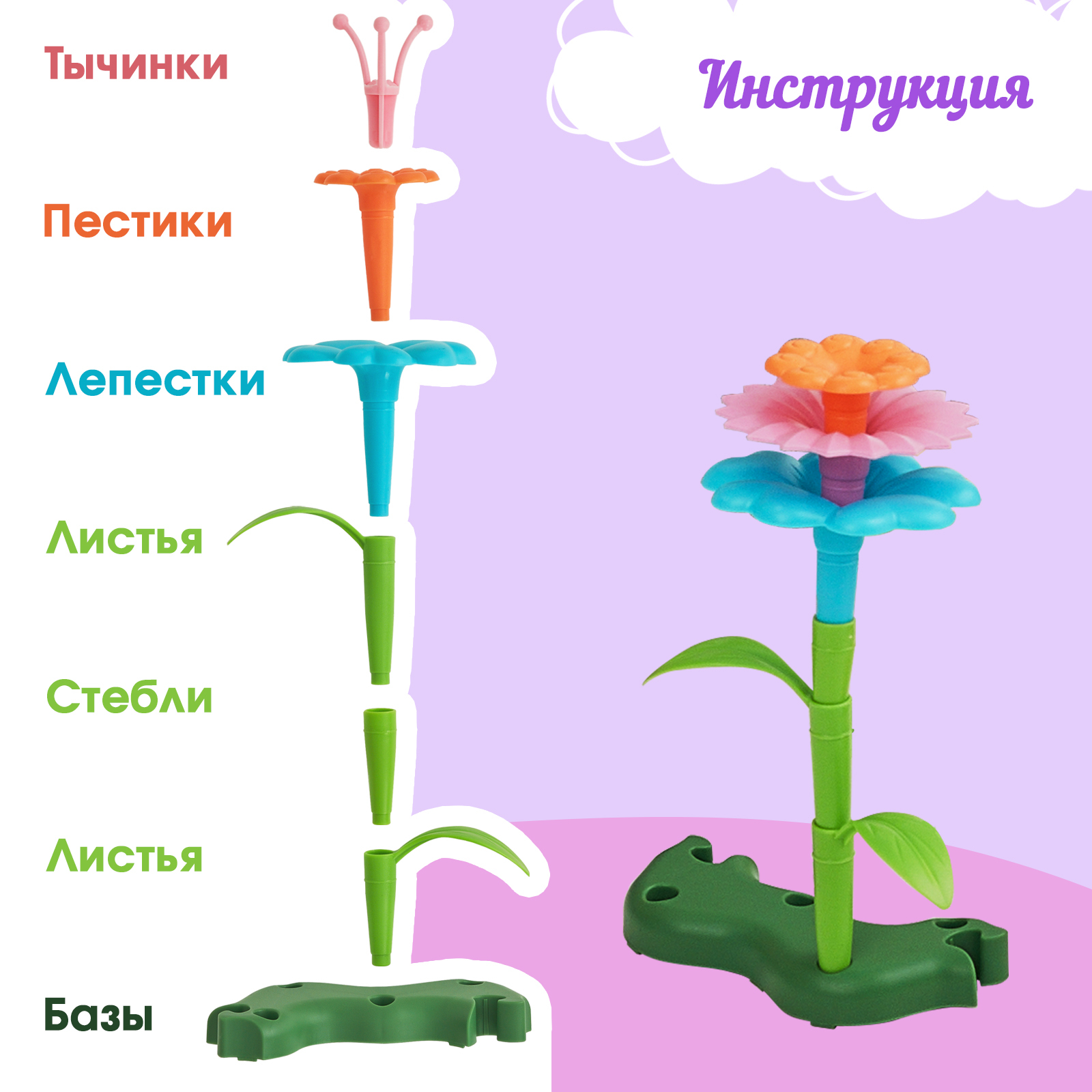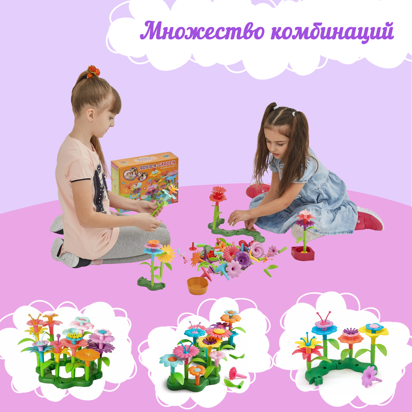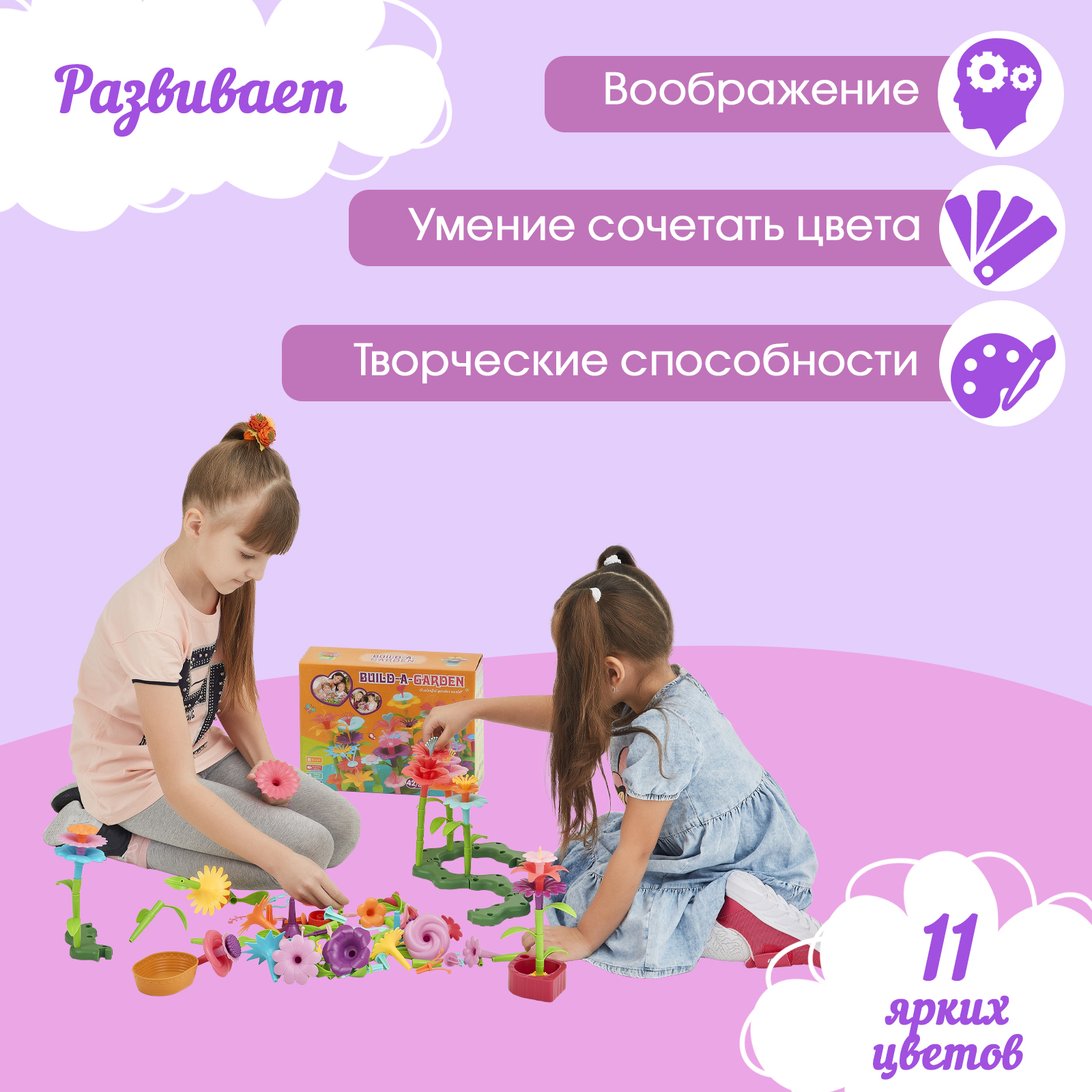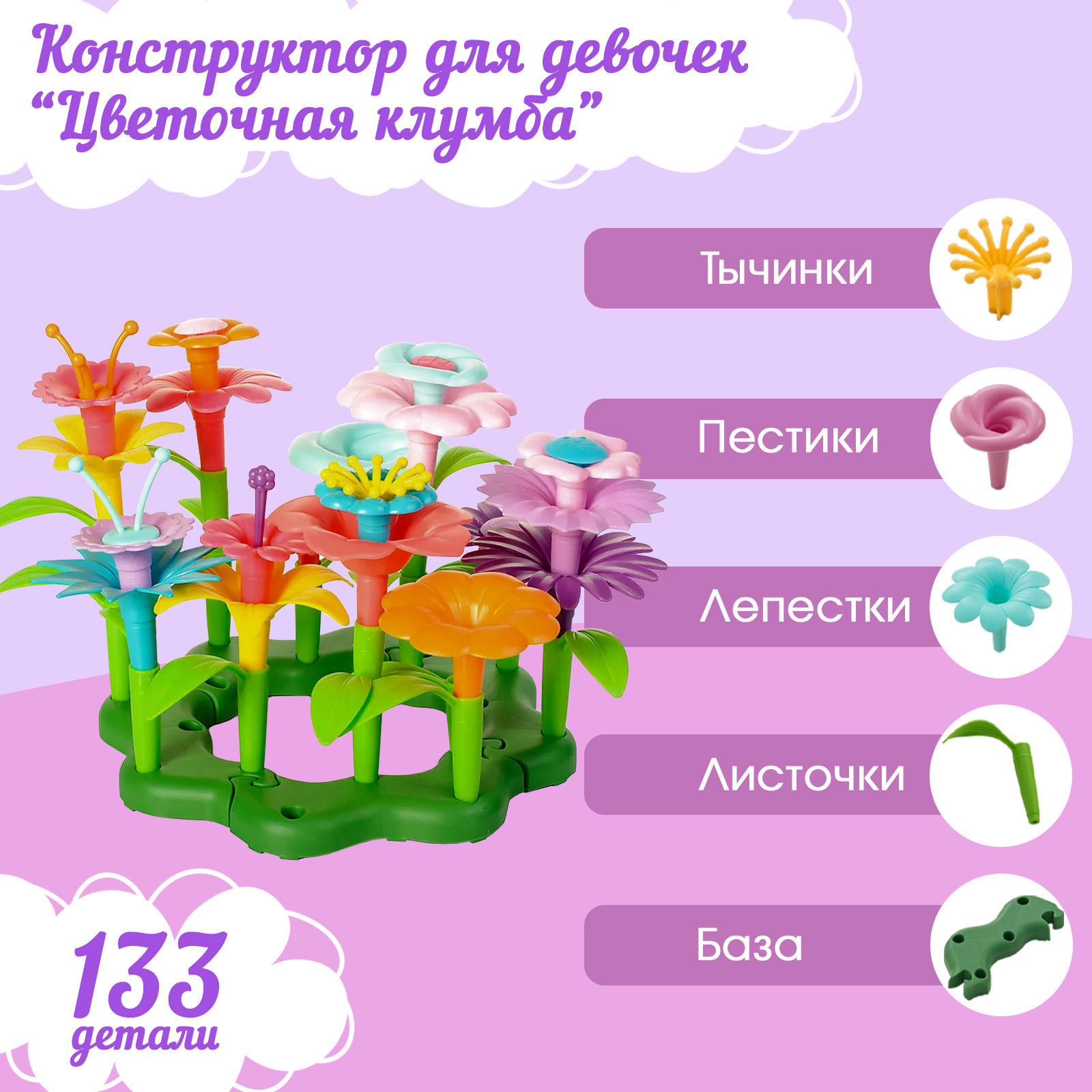 Конструктор детский для девочек "Цветочная клумба, сад", 133 детали / Игровой развивающий набор для детей