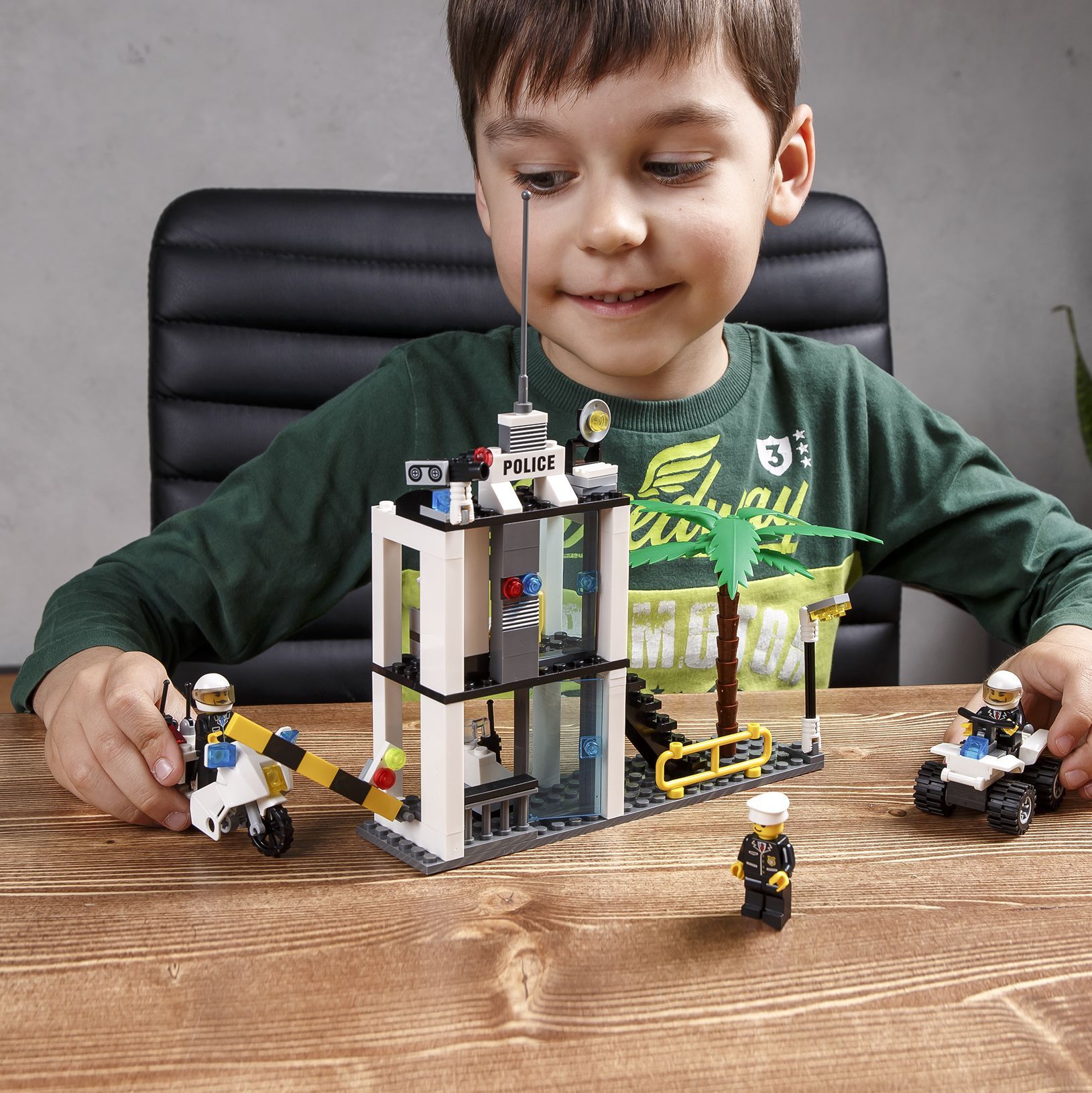 Описание: Блочный конструктор (193 детали) представляет собой двухэтажный полицейский блок-пост, который позволит вашему ребенку создать свой собственный полицейский мир из конструктора. В комплекте имеется 3 фигурки полицейских, чтобы они могли охранять город и раскрывать преступления. Дополнительно включены квадроцикл и мотоцикл, чтобы полицейские могли быть мобильными и оперативно реагировать на происшествия. Чтобы добавить реалистичности и атмосферу игровому пространству, в комплекте также есть небольшая пальма, которая создаст ощущение настоящего полицейского участка, а подвижный шлагбаум позволит имитировать контроль и регулирование доступа.