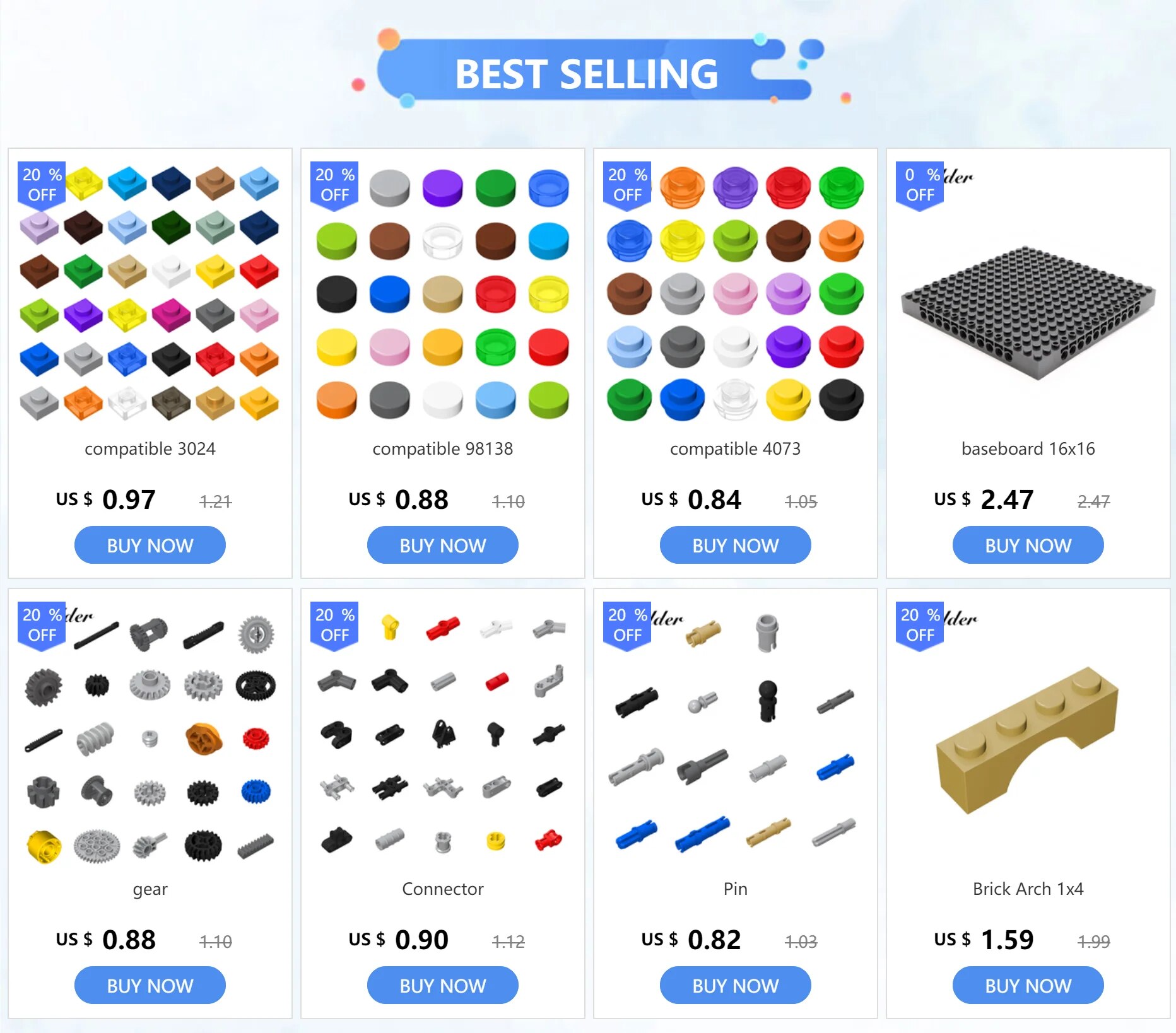 Конструктор детский из блоков 1x1, 20 шт., 3070 MOC