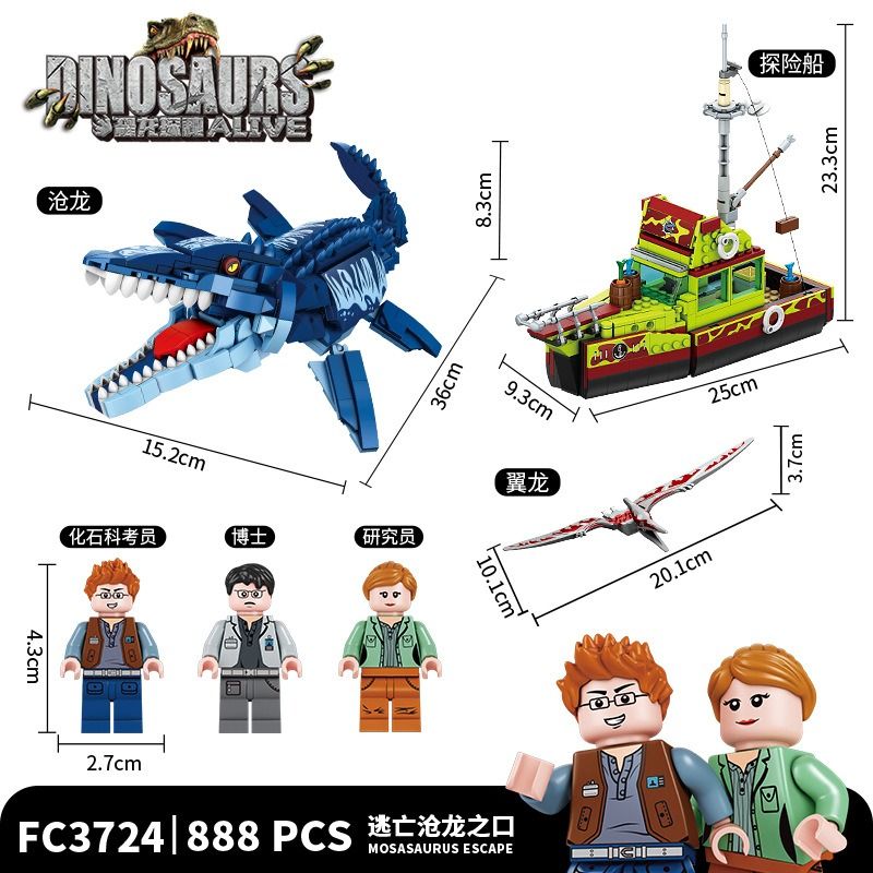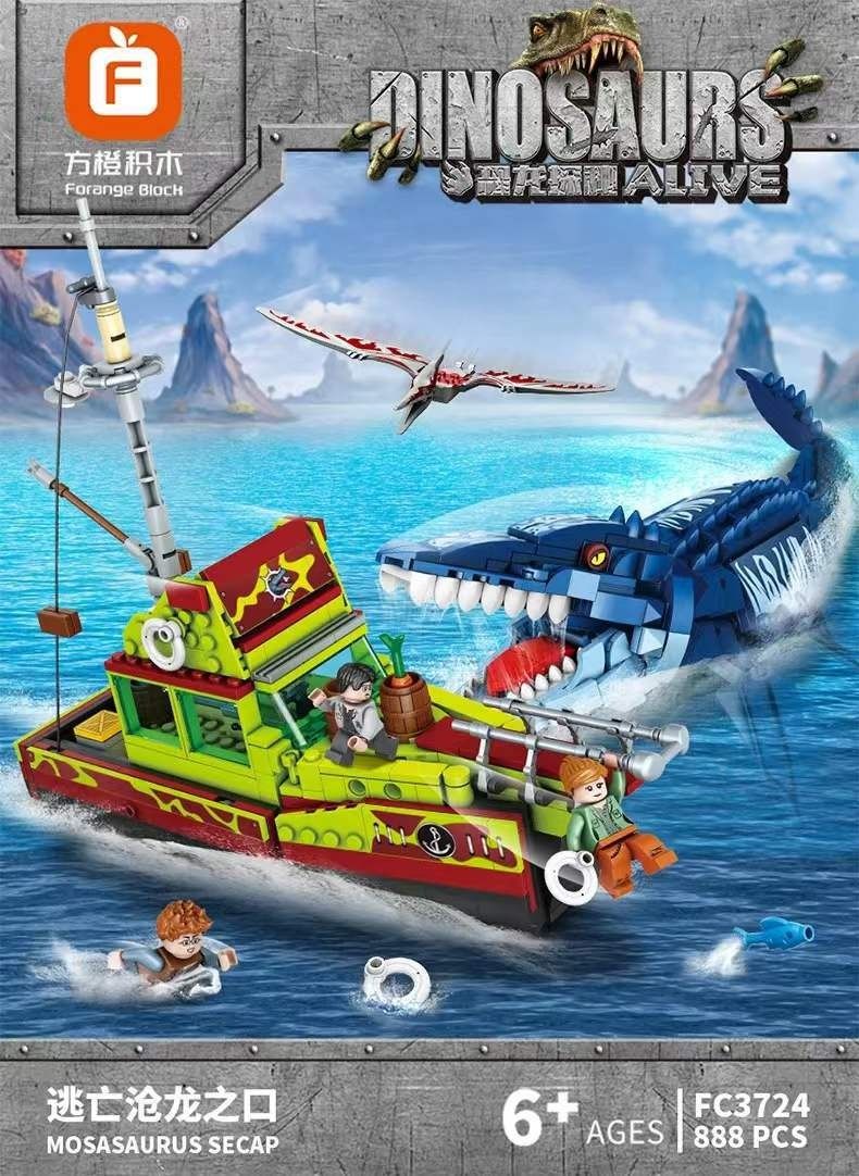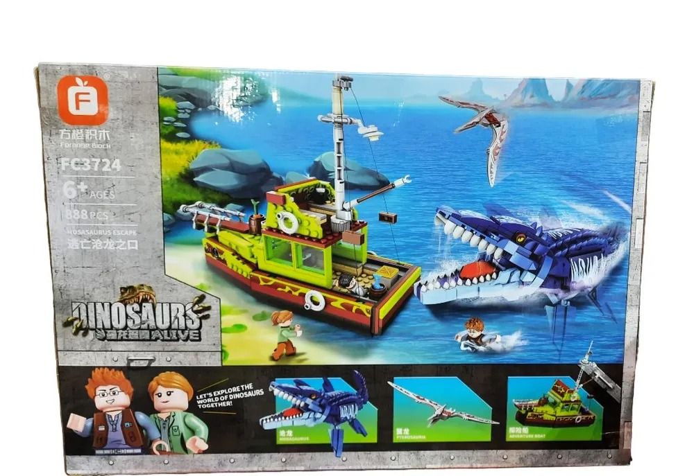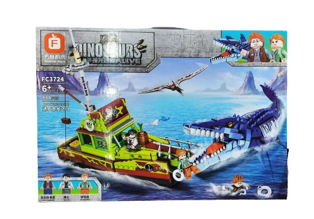 Конструктор Dinosaur World Динозавр Побег из пасти мозазавра,набор 888 деталей
