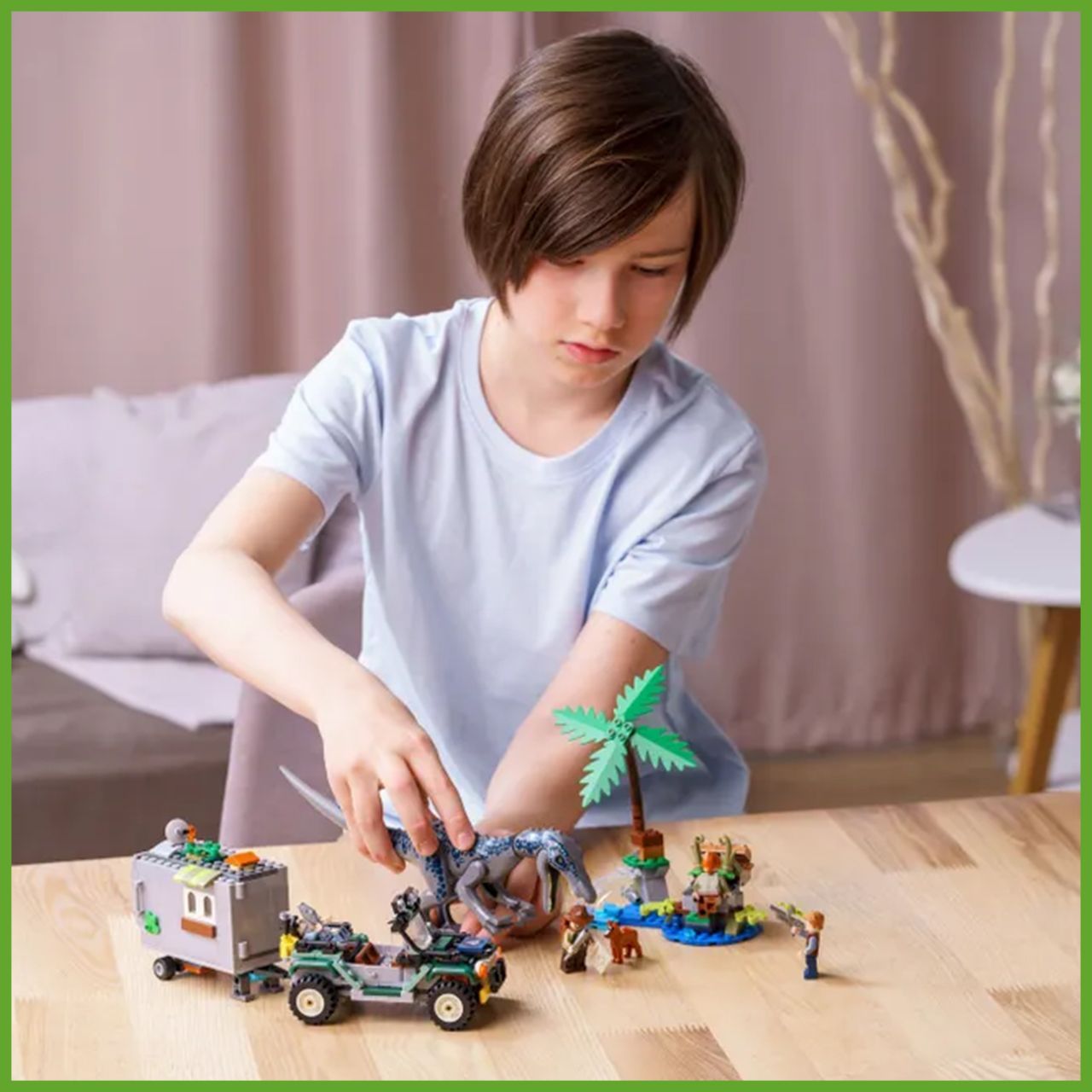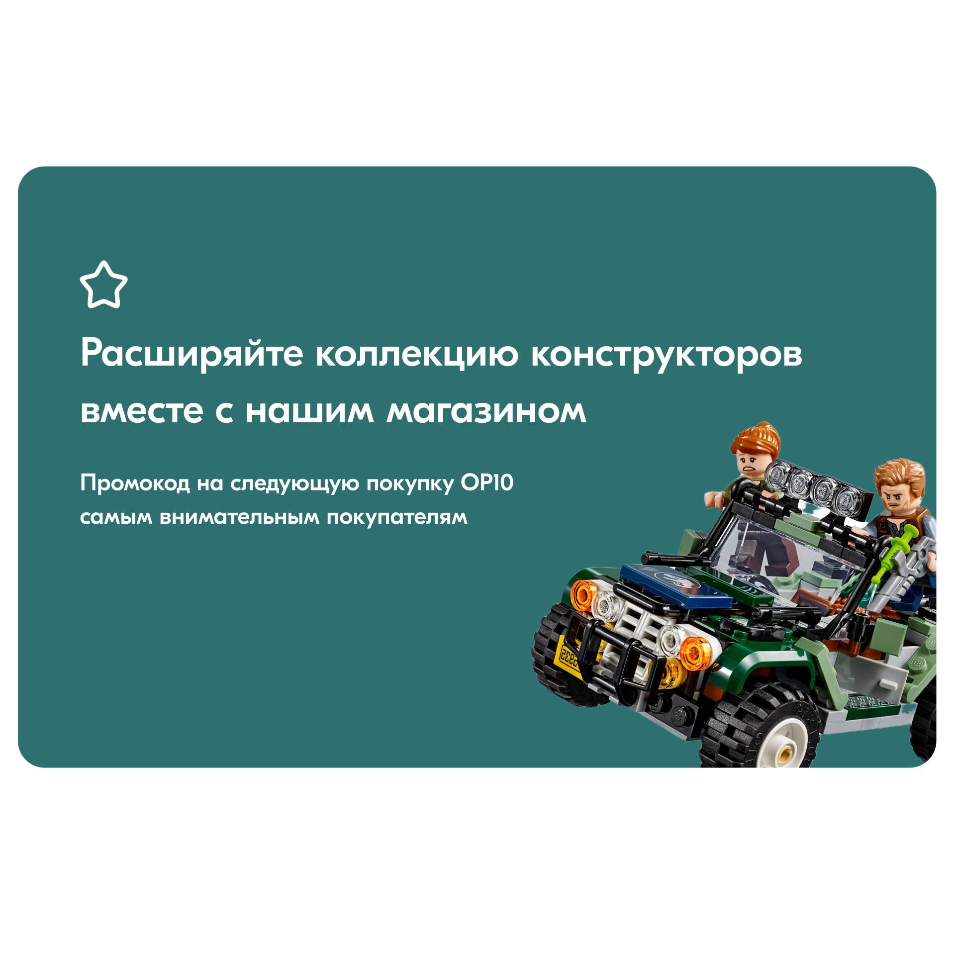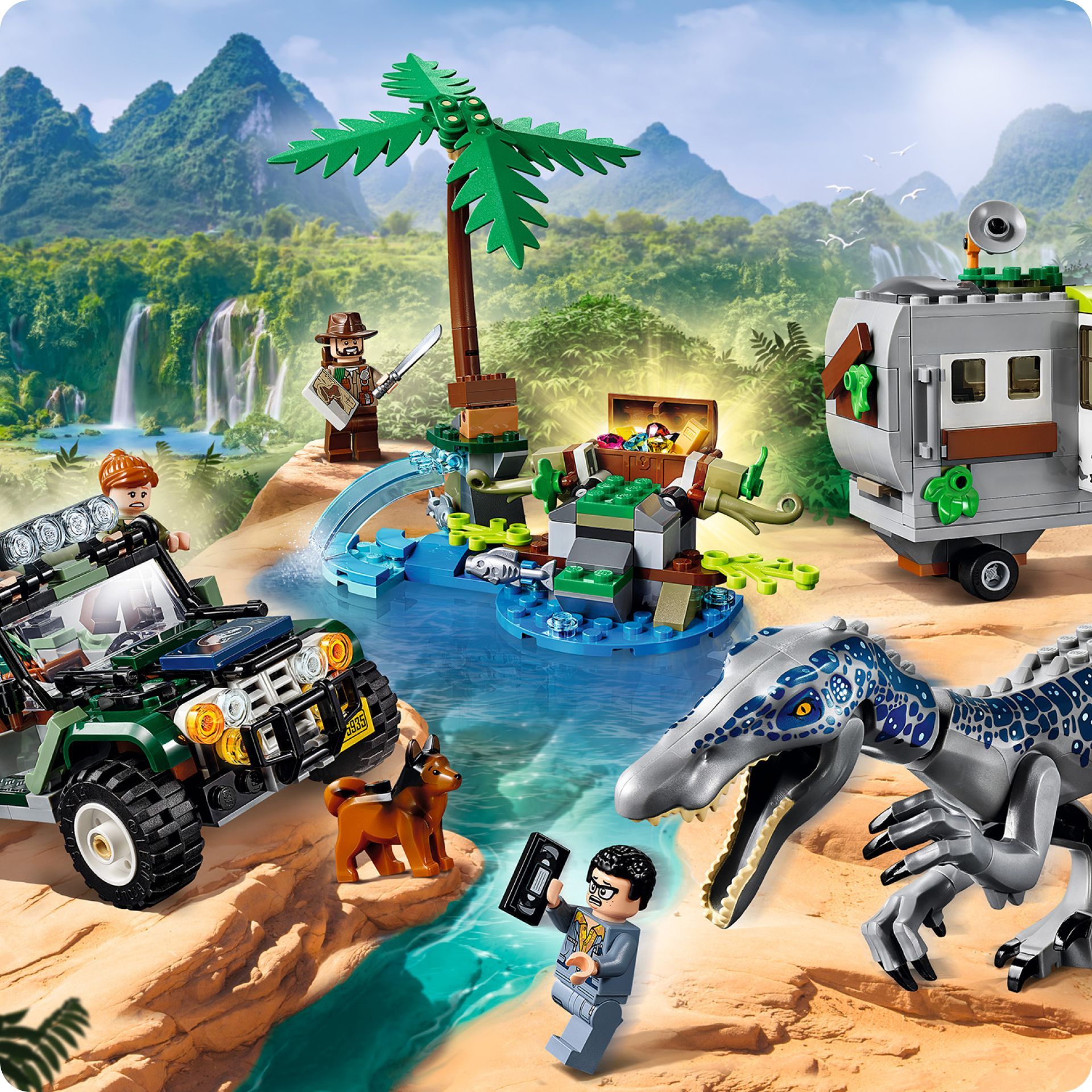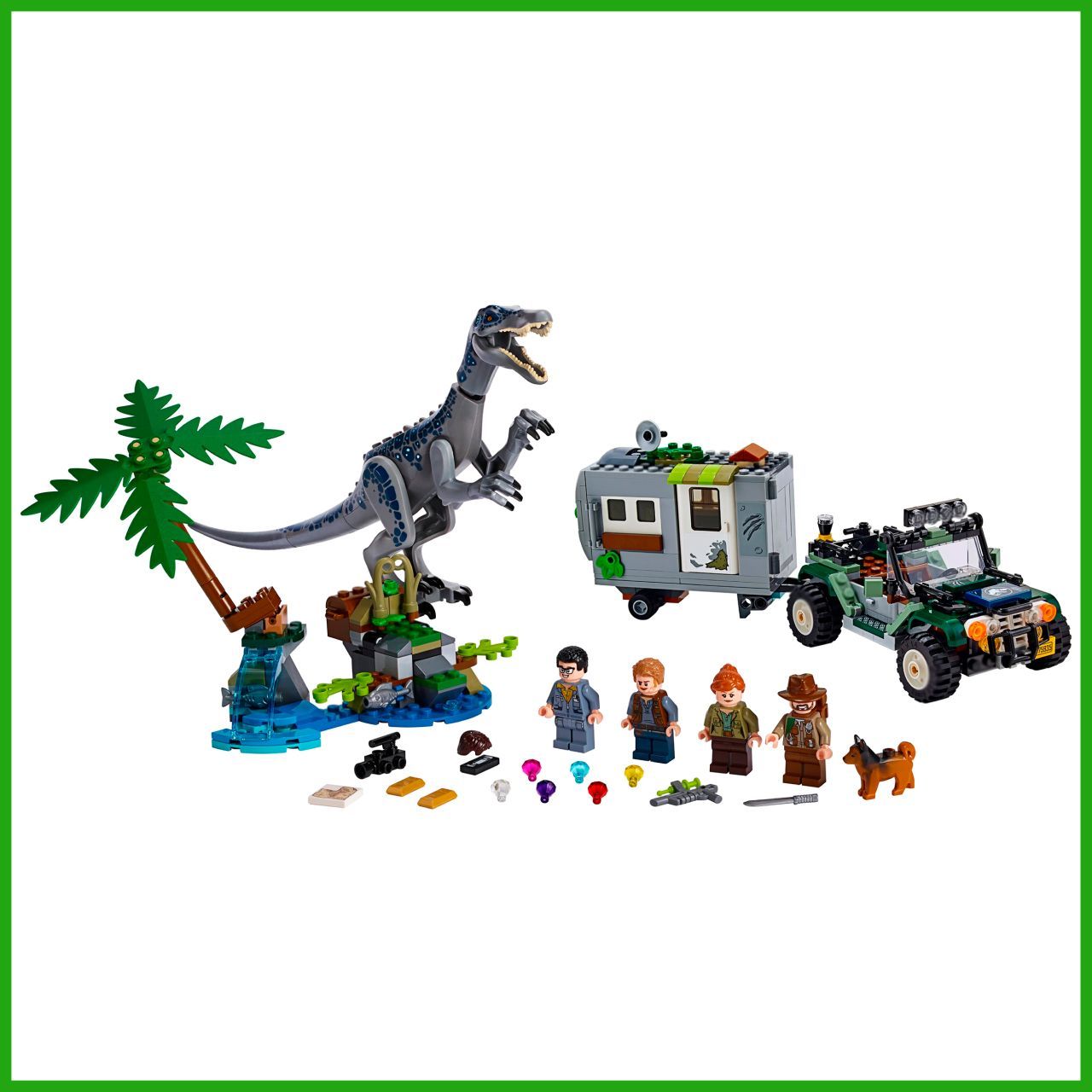 Описание: Поединок с бариониксом Барионикс решил, что Дэнни с Синджином хотят украсть его рыбу. У литой фигурки барионикса гнущиеся руки, ноги и голова, а также подвижная челюсть.Интерактивные деталиЧтобы открыть спрятанный сундук с сокровищами, нажмите на рычаг.Интересный прицепПрицеп оснащен сборной антенной, растениями, открывающимися дверцами, кроватью, компьютером, детально проработанным интерьером и такими аксессуарами, как киносъемочная камера, кружка, сковорода.Оружие героевМачете и пистолет с транквилизатором – поможет ребятам придумать множество сюжетов для захватывающей игры.Знакомые героиБлагодаря 4 реалистичным минифигуркам и динозавру конструктор по мотивам фильма отлично подойдет для командно-ролевой игры. Дэнни Недермейера, Клэр Диринг, Оуэна Грейди, Синджина Прескотта.Сюжетная линияОтправляйтесь в Парк Юрского периода с конструктором «Поединок с бариониксом: охота за сокровищами». Синджин Прескотт и Дэнни Нидермейер затеяли опасную игру. Согласно древней легенде, в джунглях спрятаны несметные сокровища. Старая видеокассета и карта могут помочь героям отыскать желанный клад. Барионикс решил, что Дэнни с Синджином хотят украсть его рыбу, и теперь героям придется хорошо прятаться в своем видавшем виды трейлере. Помогите Клэр Диринг и Оуэну Грейди починить старый внедорожник. Вместе с героями и их собакой Редом вы отыщете воришек, которые прокрались на остров.Отличный подарок ребенкуИгровой набор по мотивам истории Мира Юрского периода – лучший подарок ребенку от 7 лет.Открой новый мирНевероятный коллекционный набор «Мир юрского периода» для захватывающих ролевых игр с динозаврами и поиска сокровищ! Мир юрского периода и приключения жду тебя.