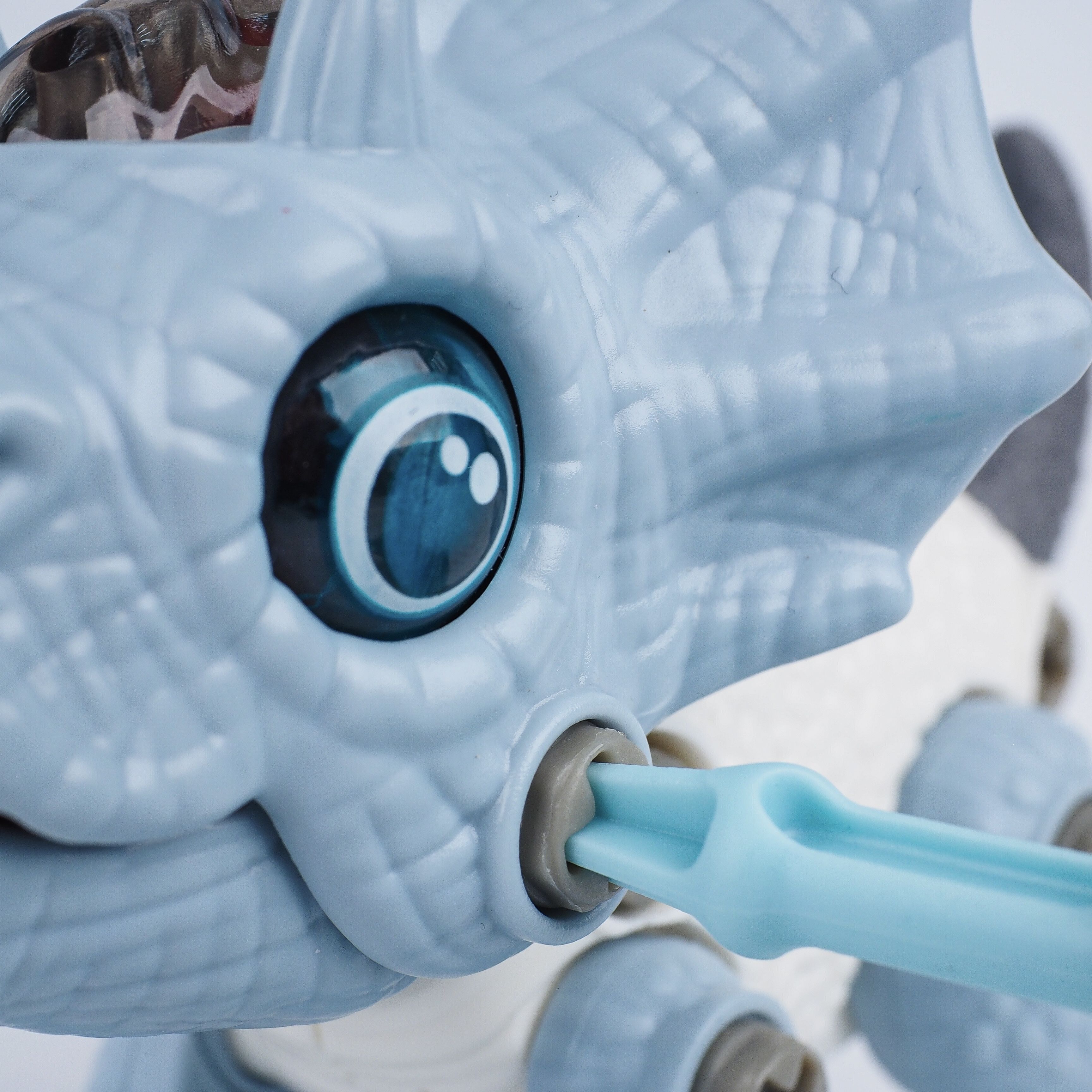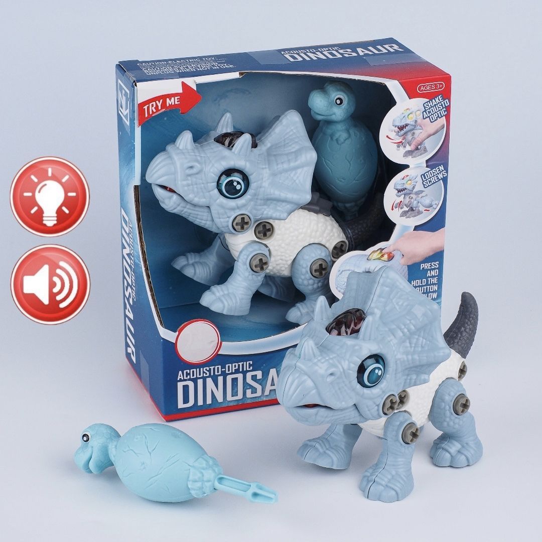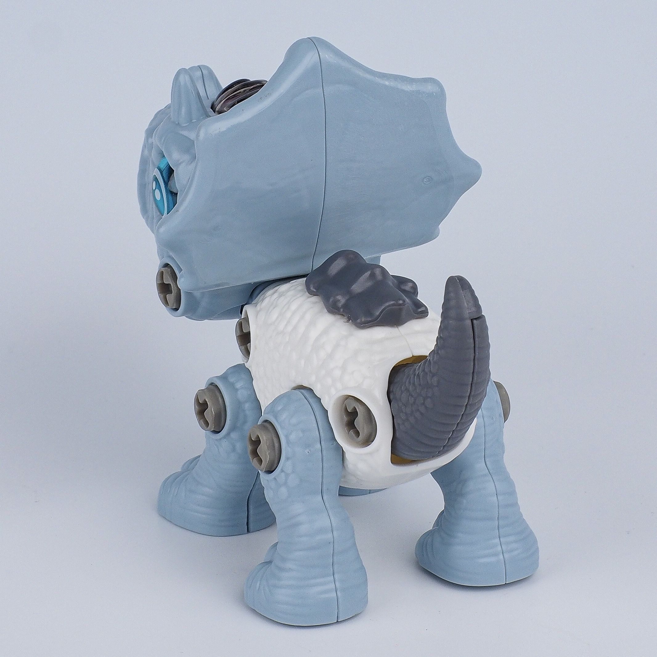 Описание: Развивающий детский 3D конструктор в виде забавного динозаврика – трицептератопса никого не оставляет равнодушным. Детям всегда нравится тема парка Юрского периода, поэтому игрушка пользуется большой популярностью. Динозавр игровой относится к категории интерактивных 3Д сборочных конструкторов-игрушек, оснащенных подсветкой и звуковым механизмом.
