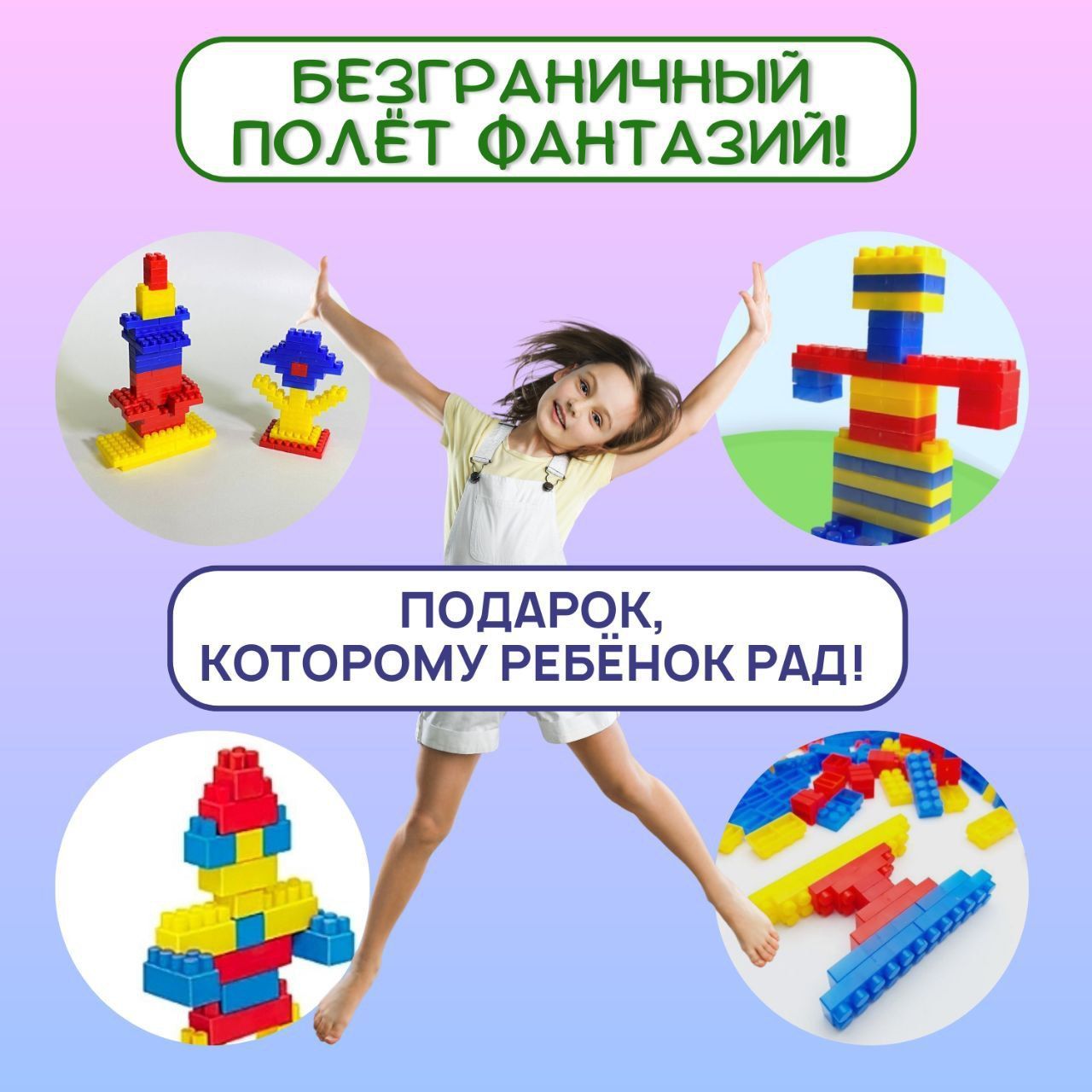 Описание:             КонструкторВы когда-нибудь задумывались о том, какими удивительными творениями способны стать ваши дети? Конструктор для детей - это волшебное средство для развития воображения и творчества. Этот продукт позволит вашим малышам потрясающим образом проявить свой талант в строительстве и создании уникальных конструкций. Конструктор для мальчика и девочкиКонструктор для детей - это не просто игрушка, это мощный инструмент, который поможет вашим детям научиться преодолевать трудности и находить нетривиальные решения. Он развивает логическое мышление, пространственное воображение и творческие способности. Ваш ребенок сможет применить эти навыки не только в строительстве, но и в жизни в целом. Одним словом, конструктор - великолепное сочетание обучения и развлечения.   КОНСТРУКТОР ДЛЯ ПОДАРОКНе упустите эту уникальную возможность - заказывайте конструктор для детей уже сегодня и дарите вашим малышам не только радость, но и будущий успех!