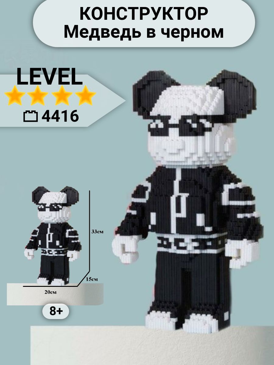 Конструктор для мальчика и девочки 3d Медведь в черном, детский конструктор для детей и подростков, 8+, 4416 деталей
