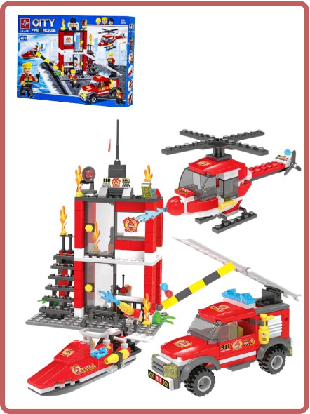 Описание: Конструктор для мальчика LX City Police, 407 деталей "Городская пожарная станция. Депо. Часть". Пожарная машина игрушка, вертолет - такая техника точно обрадует каждого ребенка и не только!  Игровой набор для мальчика City "Полицейская станция" развивает мелкую моторику , ловкость, способствует развитию практических навыков конструирования и творчества, тем самым постепенно развивая воображение ребенка, творческие способности,  мышление. Детали изготовлены из безопасного пластика и хорошо скрепляются между собой. Это прекрасный способ заинтересовать ребенка и приобщить к увлекательному процессу сборки конструктора. С этим набором можно разыграть настоящий детектив или почувствовать себя пожарным.  Конструктор для мальчика + фигурки совместимы с Лего и другими популярными брендами конструкторов. Детали надёжно соединяются между собой.  Пластиковый конструктор - отличный подарок для мальчика 6, 7, 8, 9, 10, 11, 12 лет на день Рождения, Новый год, 23 февраля, выпускной или просто, чтобы порадовать!Конструктор LX City Police, 407 деталей "Пожарная часть. Депо."Конструктор для мальчика LX City Police, 407 деталей "Городская пожарная станция. Депо. Часть". Пожарная машина игрушка, вертолет - такая техника точно обрадует каждого ребенка и не только!
