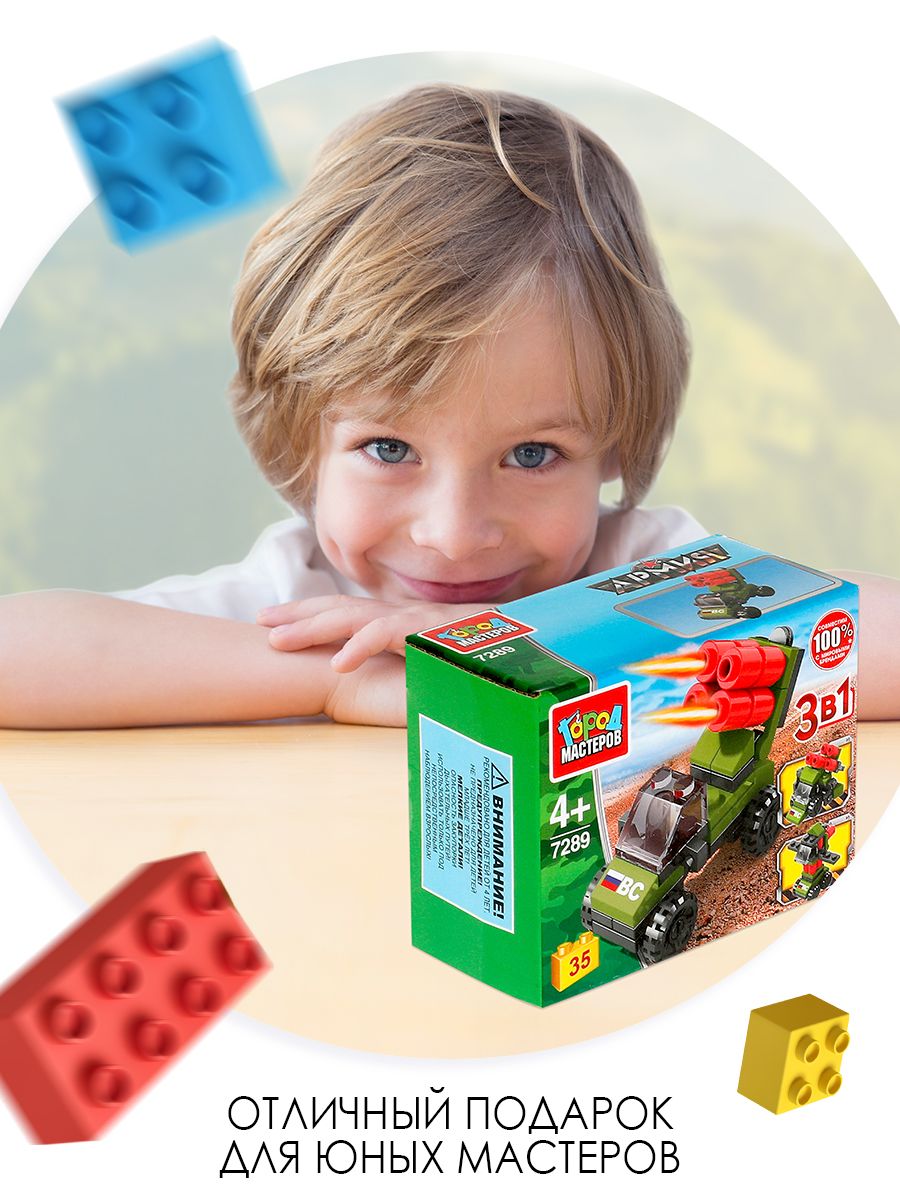 Описание: Конструктор 3 в 1 «Ракетная установка» ТМ «Город мастеров» понравится маленьким героям.
