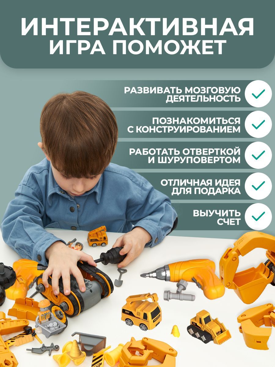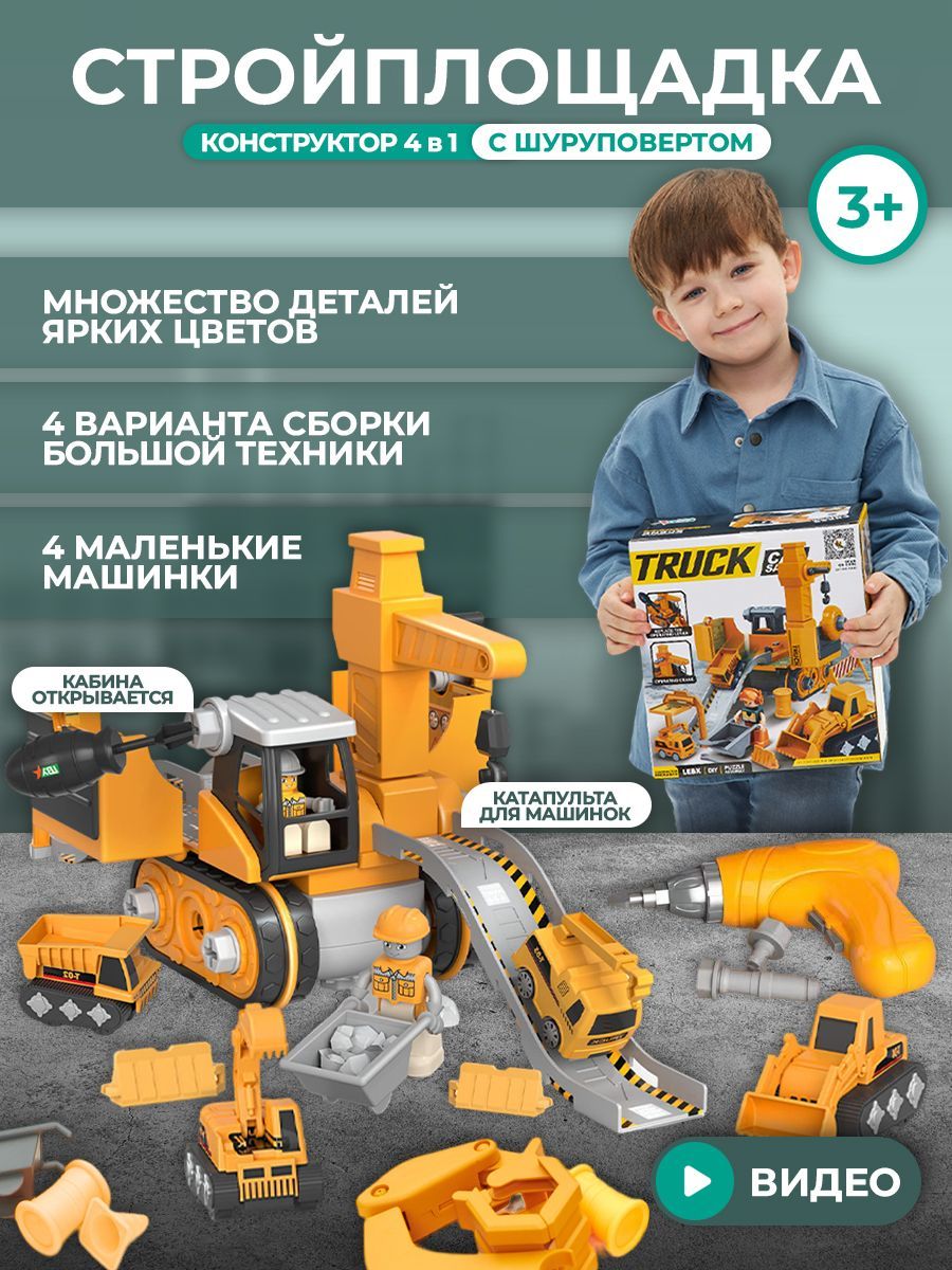 Конструктор для мальчиков Детская машина с шуруповертом 4 в1