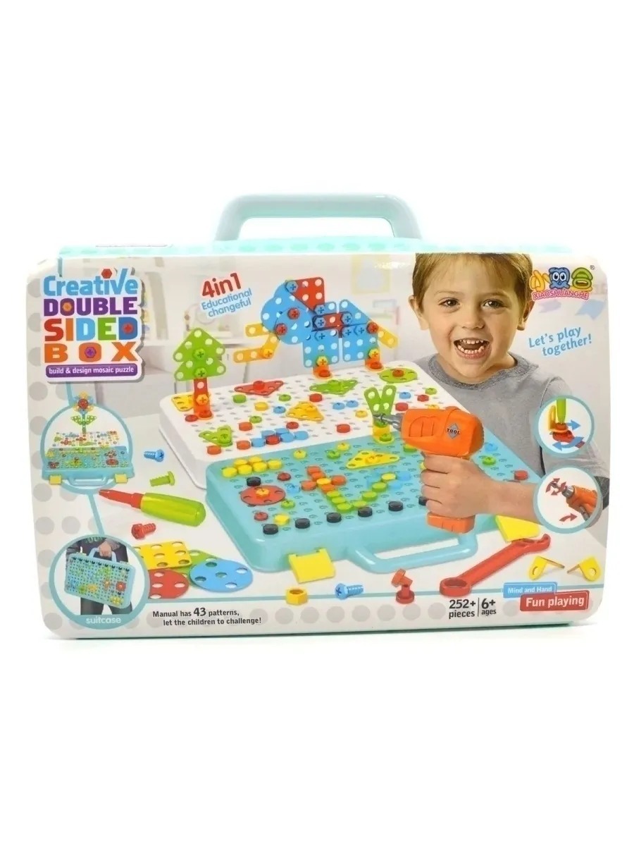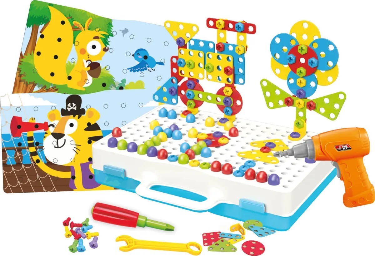 Конструктор для мальчиков и девочек c инструментами , Конструктор 3D мозайка с шуруповёртом дрелью и отверткой , Набор для творчества , Мозаика для детей 252 детали
