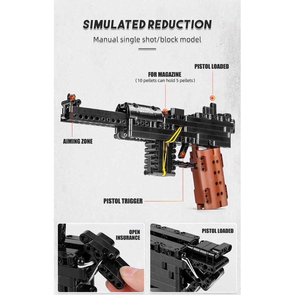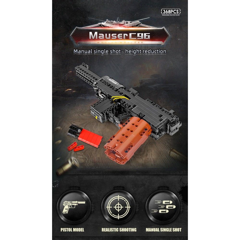 Описание: Конструктор «Маузер» от производителя Mould King полностью совместим с Лего. Набор китайского конкурента лего из 368 деталей принадлежит к разделу «Военные», к категории «Оружие». Собери потрясающую действующую модель пистолета начала прошлого века, созданного германскими оружейниками. Создай уникальный образец черно-коричневого цвета, у которого вынимается обойма для зарядки патронов, действует спусковой курок, подвижный затвор и боек, а прицельная стрельба возможна на расстоянии до пяти метров. В комплект входят 5 пуль красного цвета, а для точной стрельбы мощная рукоять удобно ложится в руку. Наши конструкторы прекрасный подарок для детей и взрослых. Специально разработан красивый кейс-бокс с покрытием 3D в которой можно дарить и без дополнительной упаковки. Игрушки для мальчиков Игрушки для девочек Подарок для Нового года года Конструкторы для детей и взрослых Детская развивающая игрушка конструктор Развивающие игрушки Конструктор для мальчиков 8 лет Конструктор для девочек 8 лет Подарок на Новый год конструктор