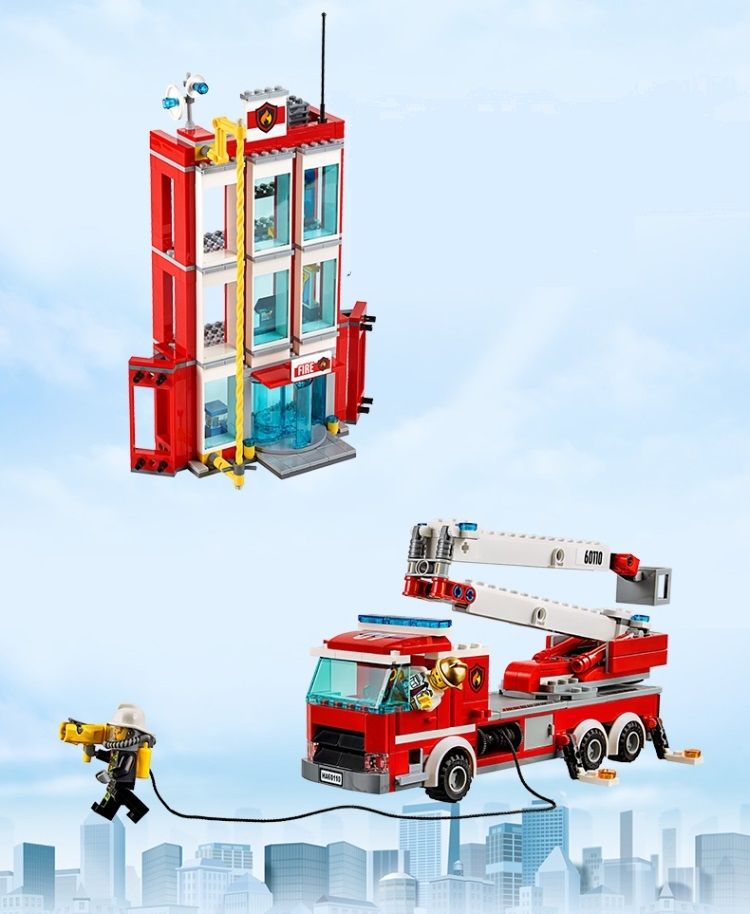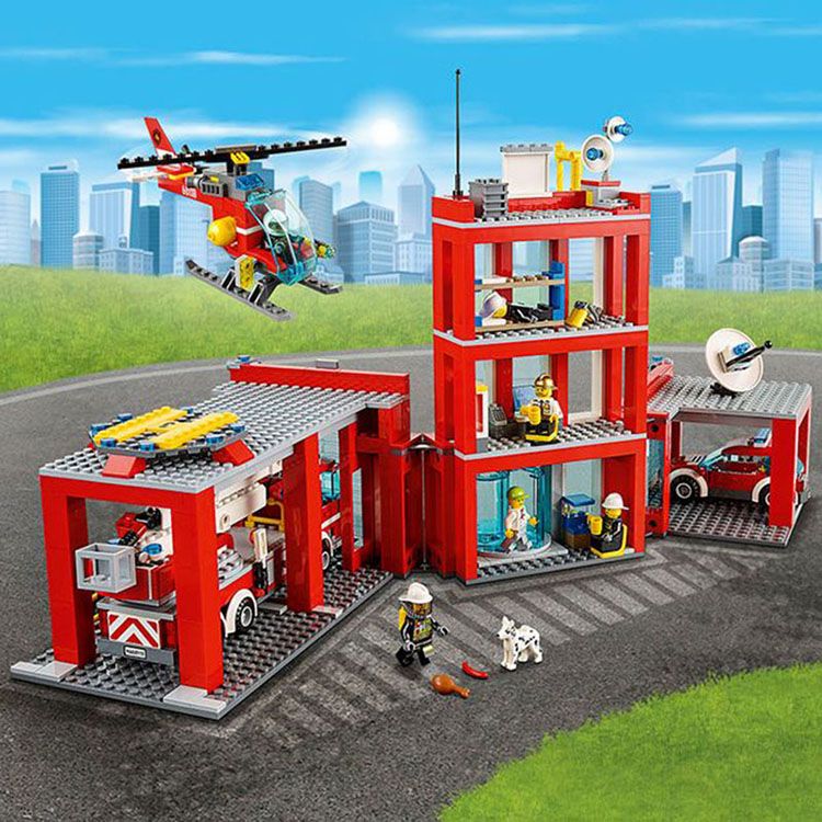 Конструктор для мальчиков техник, пожарная станция, пожарная машина, вертолет