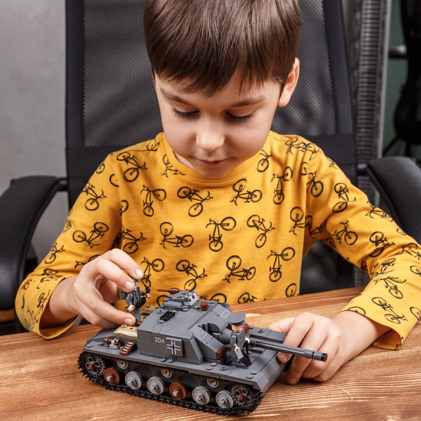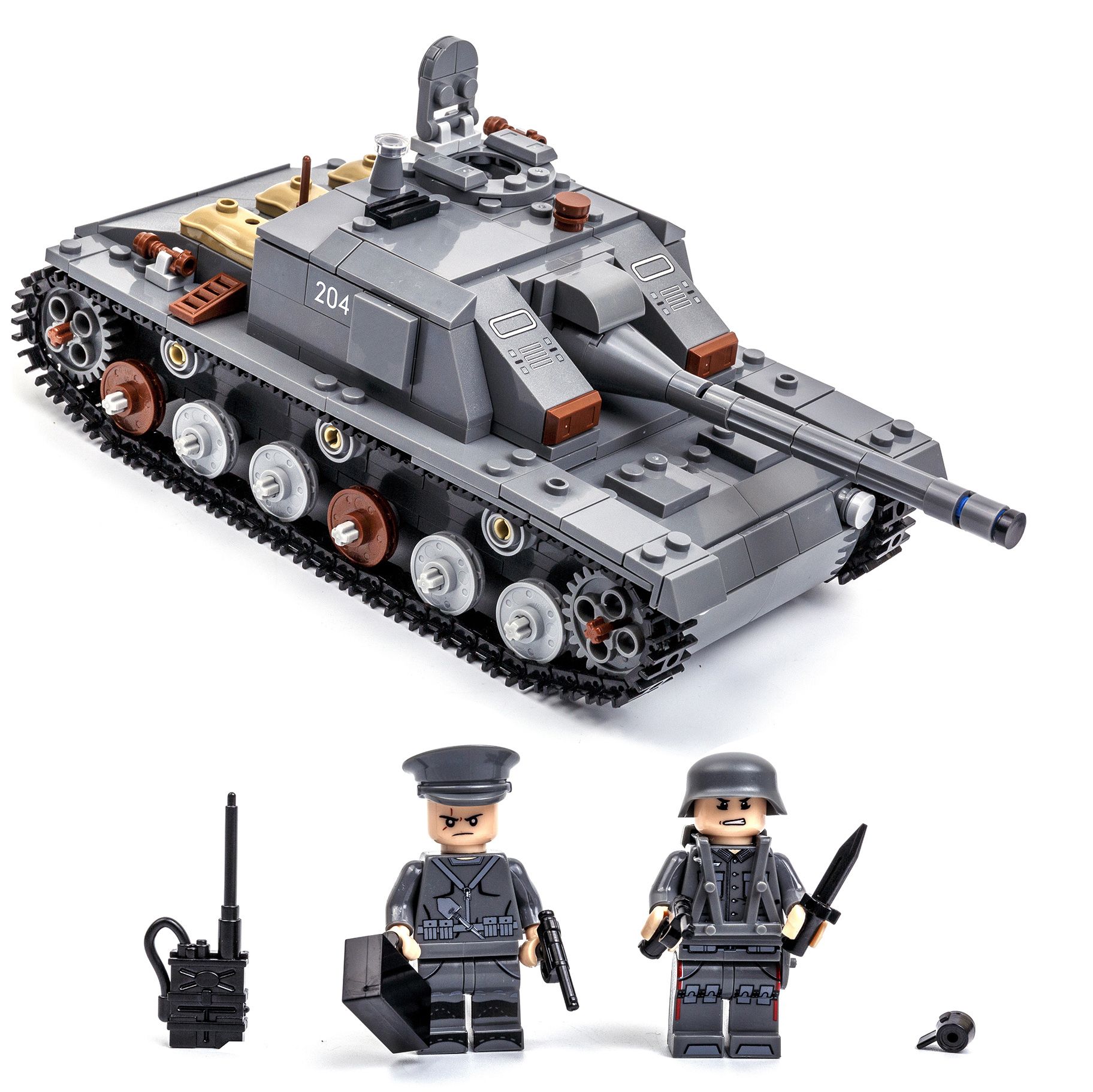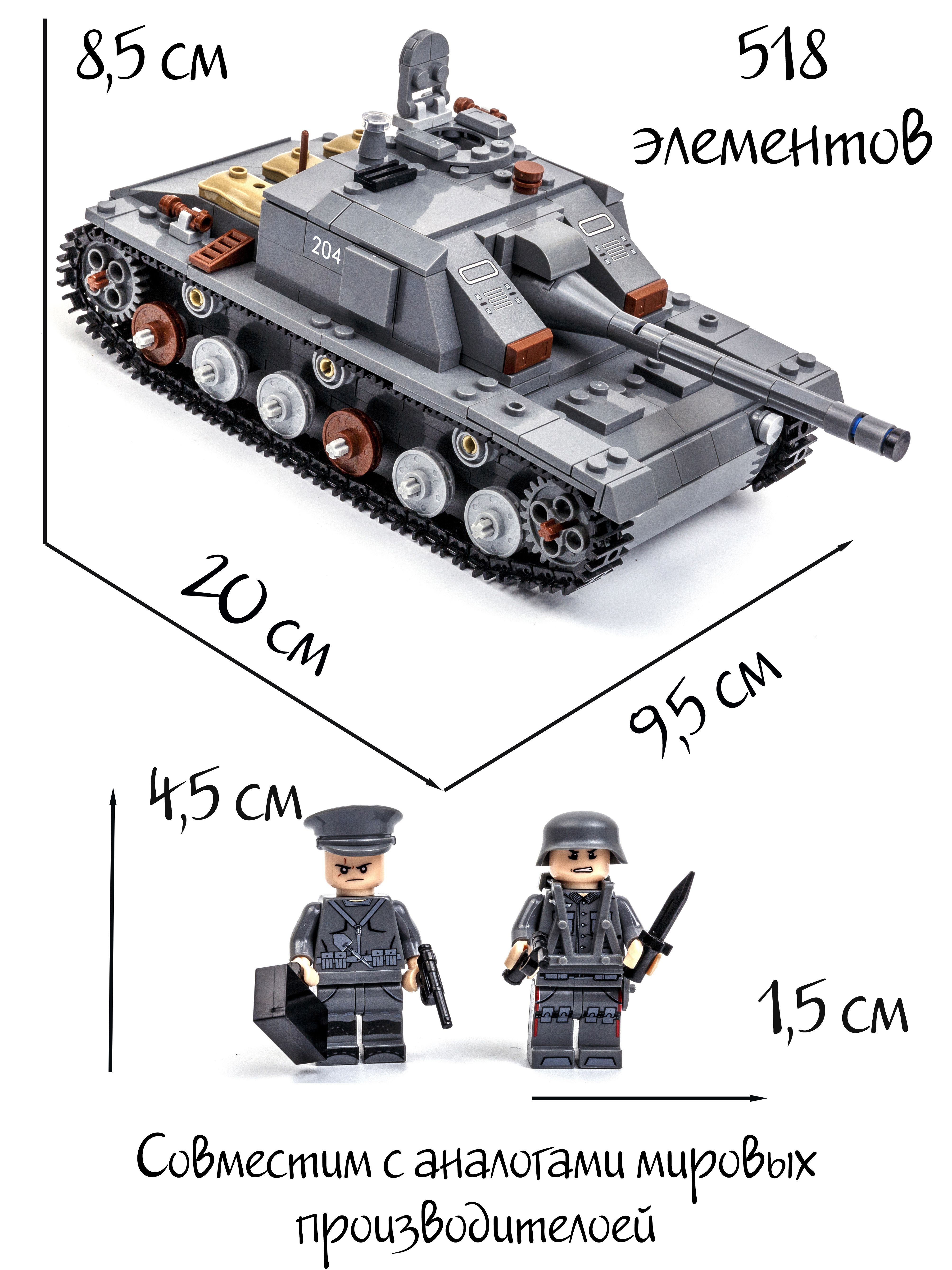Текст при отключенной в браузере загрузке изображенийХорошая детализацияКонструктор выполнен из прочного и безопасного ABS-пластика, все детали ярких оттенков и отлично крепятся друг к другу.Текст при отключенной в браузере загрузке изображенийЛегосовместимый яркий конструктор  Набор станет отличным подарком к любому празднику и подарит ребенку исключительно положительные эмоции.Текст при отключенной в браузере загрузке изображенийСредняя немецкая самоходно - артиллерийская установка (САУ) времён Второй мировой войны. Гусеничная конструкция ходовой части позволяет танку передвигаться. Светящийся блок, который входит в набор создаст особую атмосферу.