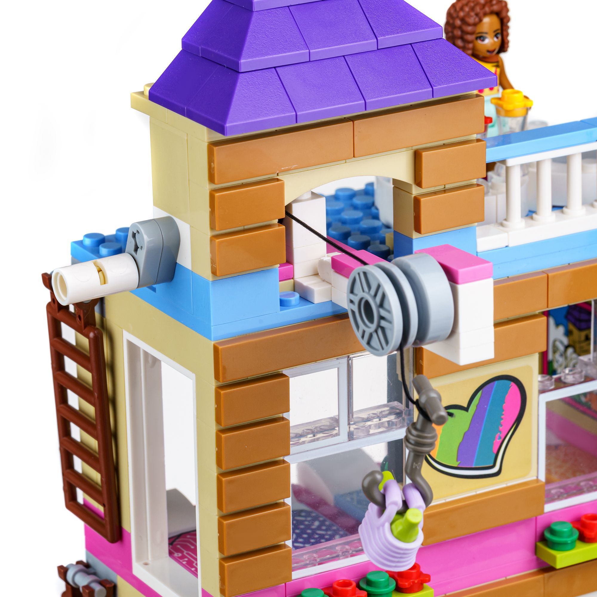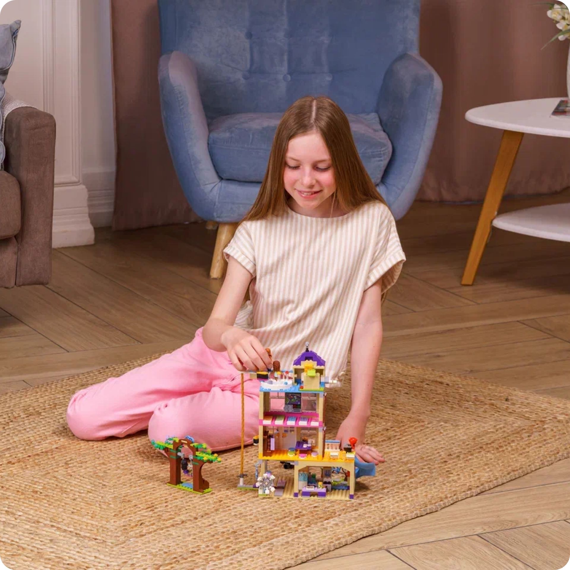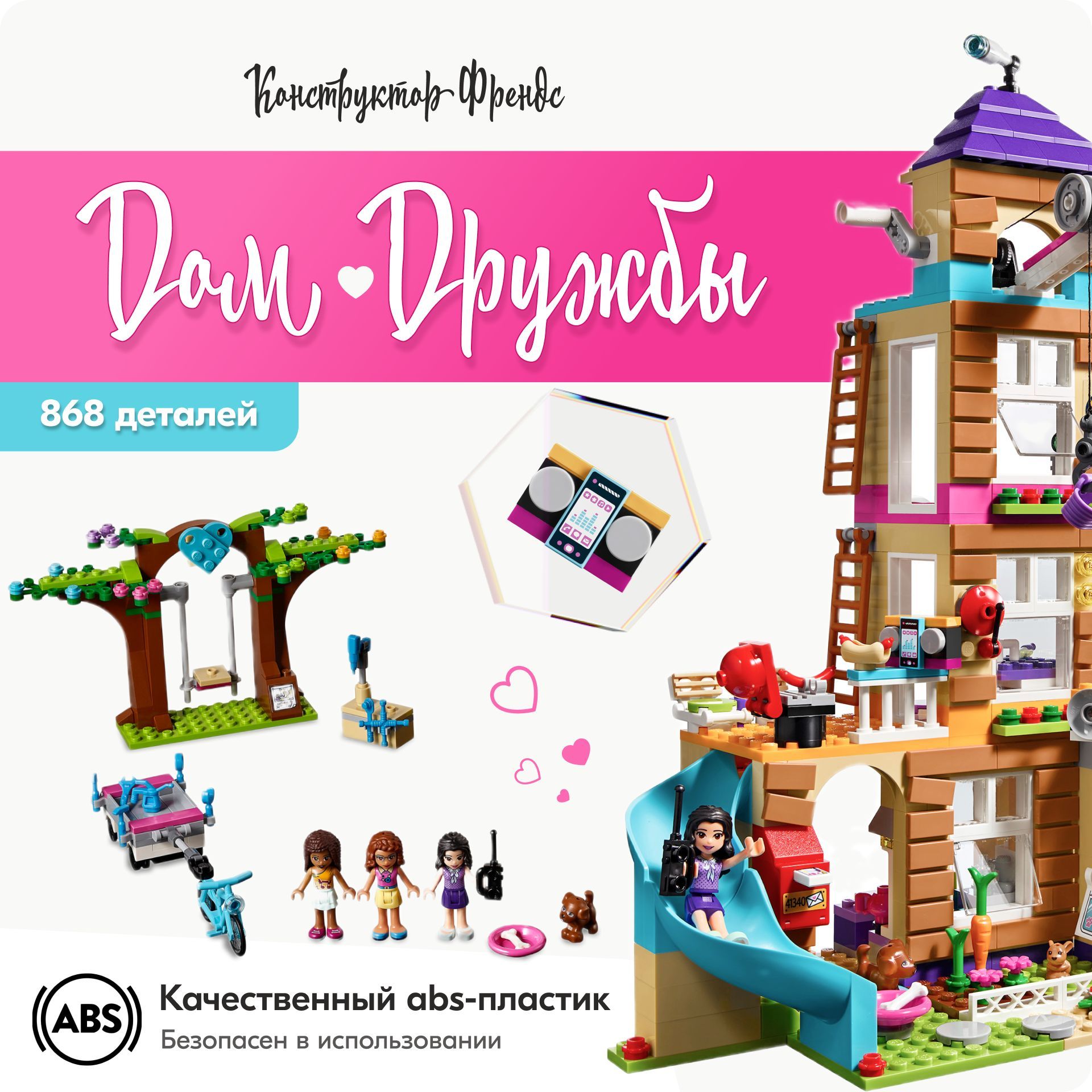 Описание: Соберите штаб-квартируПодружки получили в своё распоряжение старую пожарную станцию и превратили его в штаб-квартиру! Здесь можно отдохнуть в джакузи на крыше, заняться творчеством в мастерской Эммы или посмотреть представление, которое Эмма устраивает на террасе. Но тут раздаётся сигнал пожарной тревоги — значит, девочек ждёт работа!Поднимайте припасы в домАктивная лебедка, с помощью которой можно опускать и поднимать предметы в ведерке. Используйте рабочий шкив, чтобы поднять припасы в дом.Канат, по которому можно спуститьсяСползите с пожарного каната, запрыгните на велосипед и умчитесь вместе с трейлером Оливии, полным инструментов.Караоке таймВыход на балкон с золотыми звездами и фиолетовым сердечком, на котором Андреа любит устраивать рок-концерт.Исследуйте возможностиПриготовь попкорн на кухне и разверни телевизор в спальне: сзади есть секретный экран.Дом дружбыЭтот яркий детский конструктор Дом дружбы серии Френдс, бренда LX, 868 деталей придётся по душе всем любителям занимательной сборки конструкторов из серии friends. А это значит, что конструктор для девочки не оставит равнодушным никого. В комплекте конструктора есть дополнительные элементы и фигурки. Пластиковый конструктор для девочки имеет красивую подарочную упаковку. Каждая деталь тщательно проработана, что делает игру реалистичнее. Сборная модель конструктора оставит у вас самые лучшие впечатления. В процессе игры в конструктор ребёнок сам придумывает истории. Развивается воображение, навыки конструирования, мышление и мелкая моторика. Вложите в развитие ребёнка силы и время в первые годы жизни и получите в будущем великого изобретателя! Детский конструктор – лучший подарок ребёнку. Яркая подарочная упаковка может стать отличным фоном для будущих сюжетных игр! Конструктор блочный для девочек превращает развитие детей в увлекательное занятие. Смело покупайте этот детский конструктор развивающий и наслаждайтесь игрой вместе со своим ребёнком! Данный конструктор является монобрендом LX. Детский конструктор для мальчиков совместим со всеми известными брендами конструкторов. Игровой набор изготовлен из высококачественного пластика и полностью соответствует стандартам качества. Полностью безопасен для детей.Большой наборВключает 4-этажное переоборудованное здание пожарной части с гаражом, кухней, гостиной зоной, спальней, террасой на крыше, террасой для выступлений, боковым балконом с барбекю, работающей системой блоков, почтовым ящиком, вращающимся пожарным шестом и горкой, а также деревом дружбы с качелями и велосипед с прицепом.Интересные деталиНа террасе на крыше есть гидромассажная ванна, фреш-бар, музыкальная док-станция и смотровая башня с лестницей, ведущей на первый этаж, зона барбекю и телескопом.Гараж полон деталейВ гараже с подъемными воротами, способными фиксироваться под потолком, хранится транспортное средство Подружек, тележка с инструментами, верстак с шуруповертом и домик хомяка с открывающимися дверками и вращающимся колесом.Забавные аксессуарыАксессуары включают в себя 2 рации, инструменты, гитару, попкорн, пиццу, чайник, бутылку с жидкостью для мытья посуды, коробку для рукоделия, ножницы, плитку для произведений искусства, 5 тканевых одеял, mp3-плеер, бокалы для коктейлей и морковку.В комплекте3 минифигур