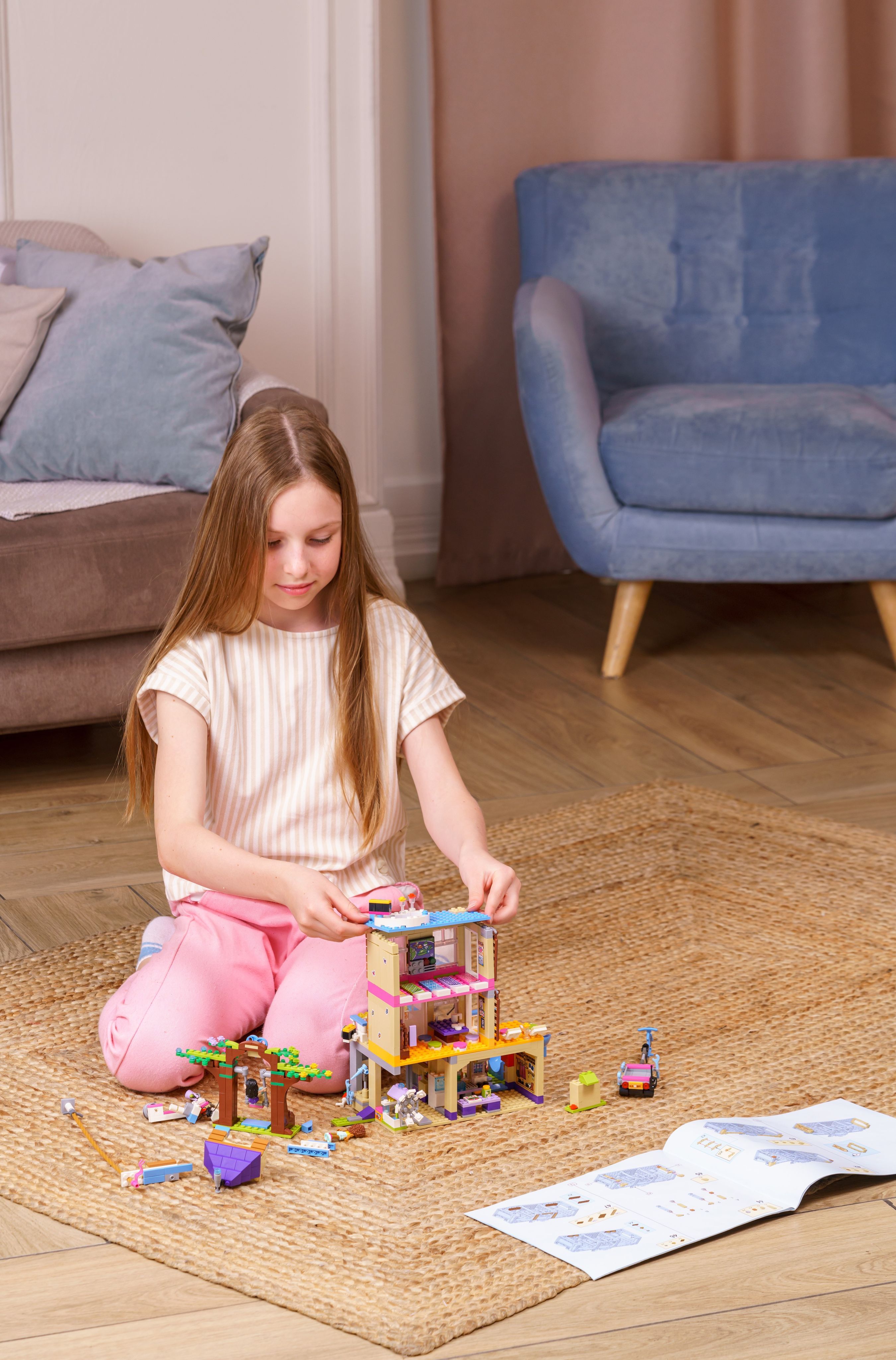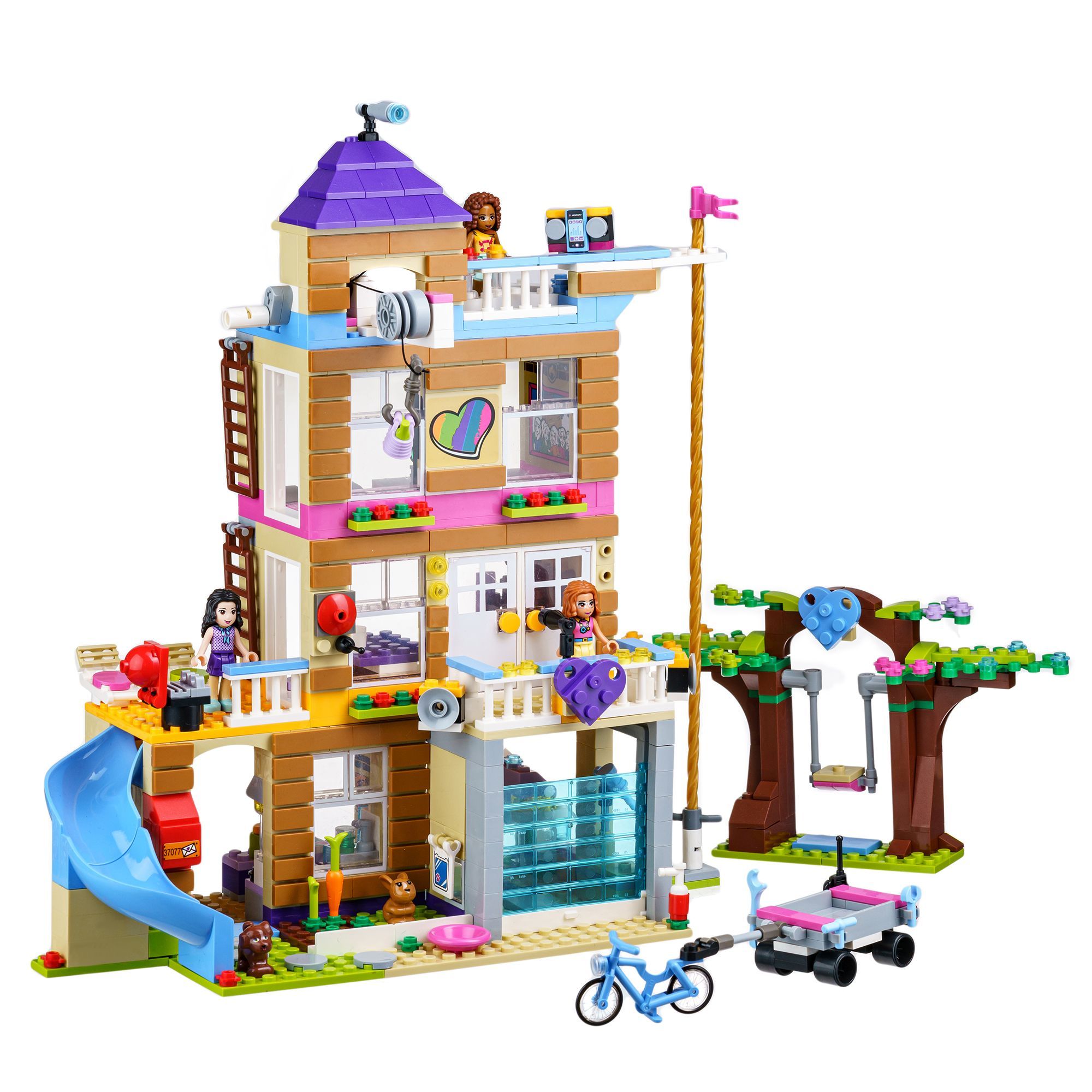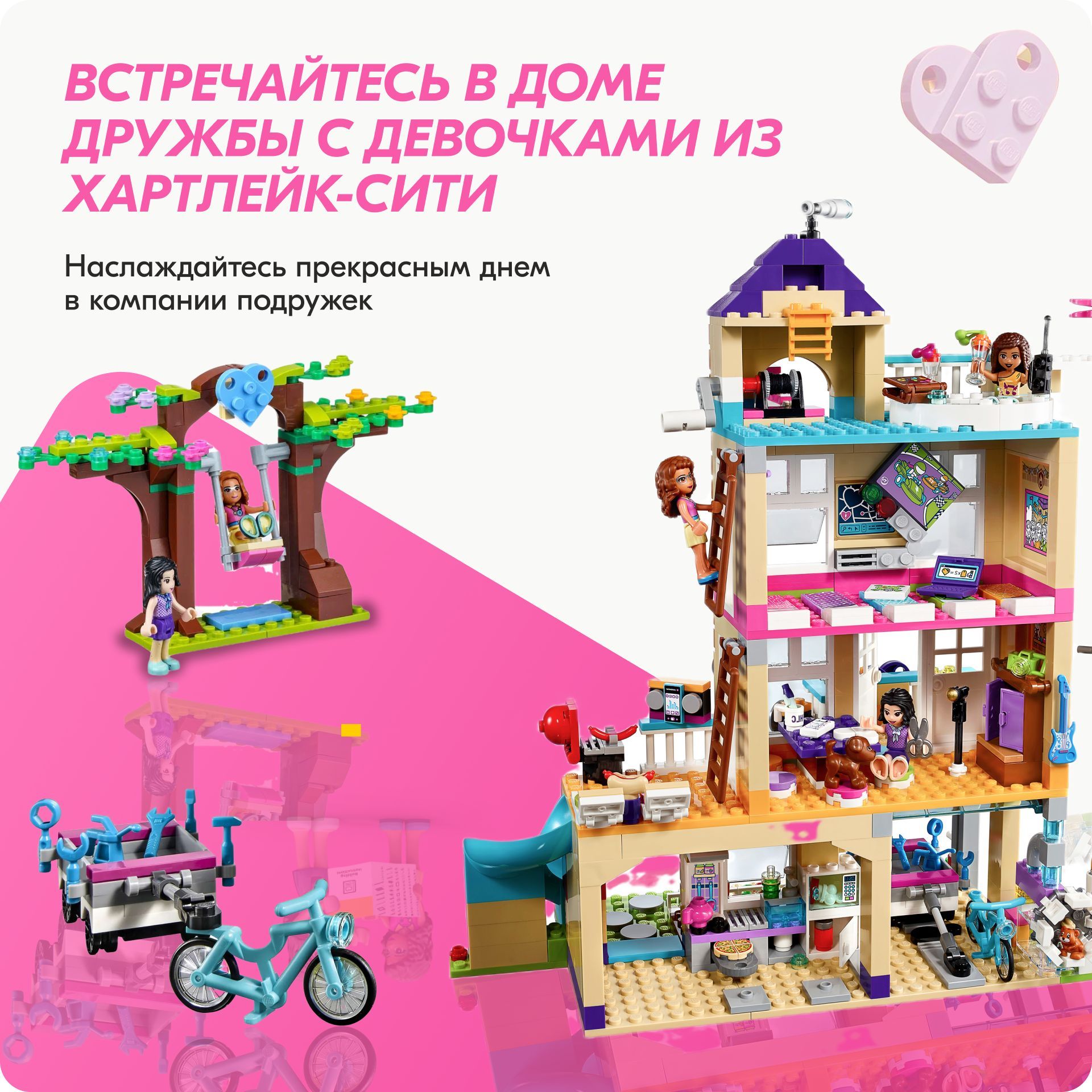 Описание: Соберите штаб-квартируПодружки получили в своё распоряжение старую пожарную станцию и превратили его в штаб-квартиру! Здесь можно отдохнуть в джакузи на крыше, заняться творчеством в мастерской Эммы или посмотреть представление, которое Эмма устраивает на террасе. Но тут раздаётся сигнал пожарной тревоги — значит, девочек ждёт работа!Поднимайте припасы в домАктивная лебедка, с помощью которой можно опускать и поднимать предметы в ведерке. Используйте рабочий шкив, чтобы поднять припасы в дом.Канат, по которому можно спуститьсяСползите с пожарного каната, запрыгните на велосипед и умчитесь вместе с трейлером Оливии, полным инструментов.Караоке таймВыход на балкон с золотыми звездами и фиолетовым сердечком, на котором Андреа любит устраивать рок-концерт.Исследуйте возможностиПриготовь попкорн на кухне и разверни телевизор в спальне: сзади есть секретный экран.Дом дружбыЭтот яркий детский конструктор Дом дружбы серии Френдс, бренда LX, 868 деталей придётся по душе всем любителям занимательной сборки конструкторов из серии friends. А это значит, что конструктор для девочки не оставит равнодушным никого. В комплекте конструктора есть дополнительные элементы и фигурки. Пластиковый конструктор для девочки имеет красивую подарочную упаковку. Каждая деталь тщательно проработана, что делает игру реалистичнее. Сборная модель конструктора оставит у вас самые лучшие впечатления. В процессе игры в конструктор ребёнок сам придумывает истории. Развивается воображение, навыки конструирования, мышление и мелкая моторика. Вложите в развитие ребёнка силы и время в первые годы жизни и получите в будущем великого изобретателя! Детский конструктор – лучший подарок ребёнку. Яркая подарочная упаковка может стать отличным фоном для будущих сюжетных игр! Конструктор блочный для девочек превращает развитие детей в увлекательное занятие. Смело покупайте этот детский конструктор развивающий и наслаждайтесь игрой вместе со своим ребёнком! Данный конструктор является монобрендом LX. Детский конструктор для мальчиков совместим со всеми известными брендами конструкторов. Игровой набор изготовлен из высококачественного пластика и полностью соответствует стандартам качества. Полностью безопасен для детей.Большой наборВключает 4-этажное переоборудованное здание пожарной части с гаражом, кухней, гостиной зоной, спальней, террасой на крыше, террасой для выступлений, боковым балконом с барбекю, работающей системой блоков, почтовым ящиком, вращающимся пожарным шестом и горкой, а также деревом дружбы с качелями и велосипед с прицепом.Интересные деталиНа террасе на крыше есть гидромассажная ванна, фреш-бар, музыкальная док-станция и смотровая башня с лестницей, ведущей на первый этаж, зона барбекю и телескопом.Гараж полон деталейВ гараже с подъемными воротами, способными фиксироваться под потолком, хранится транспортное средство Подружек, тележка с инструментами, верстак с шуруповертом и домик хомяка с открывающимися дверками и вращающимся колесом.Забавные аксессуарыАксессуары включают в себя 2 рации, инструменты, гитару, попкорн, пиццу, чайник, бутылку с жидкостью для мытья посуды, коробку для рукоделия, ножницы, плитку для произведений искусства, 5 тканевых одеял, mp3-плеер, бокалы для коктейлей и морковку.В комплекте3 минифигур