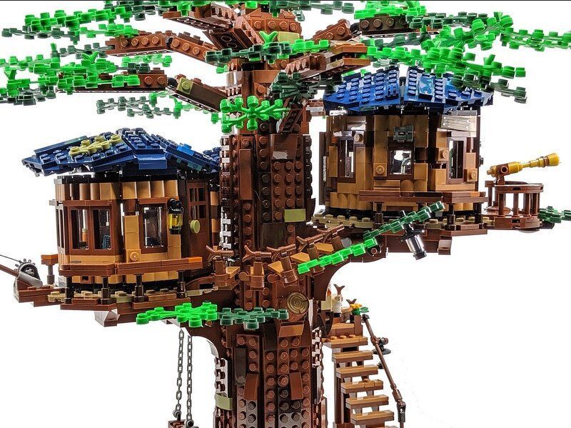 Описание: Коллекционная модель «Домик на дереве» заставит тебя продемонстрировать все свои строительные таланты и воссоздать первозданную красоту природы! Этот набор для творчества придуман одним из фанатов конструктора. Все элементы растений, в том числе более 180 фрагментов листвы, изготовлены из экологически безопасного пластика на растительной основе. Выбирай цветовую гамму по своему вкусу. Зеленые оттенки символизируют лето, желтые и коричневые — осень. Сними крону дерева и крыши трёх хижин, чтобы поиграть с их обитателями — мамой, папой и двумя детьми. В спальне есть балкон, на котором установлен подъемный кран. Найди клад с помощью карты сокровищ и покачайся на качелях. Или отдохни и устрой пикник у прохладного ручья.