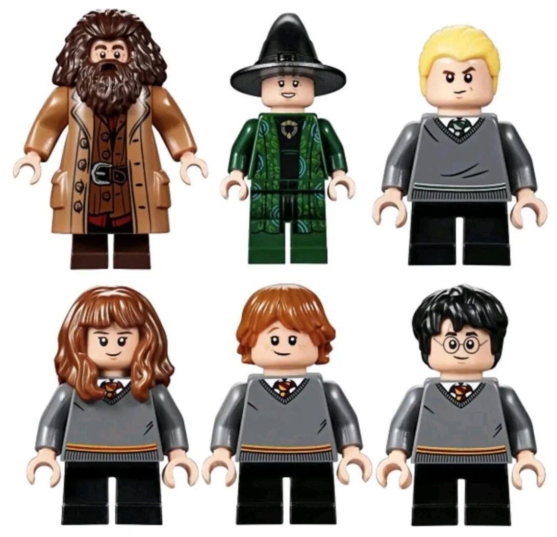 А так же аксессуары: 7 волшебных палочек, зонтик, фонарь, метла, сортировочная шляпа, котлы, зелья, свечи, 2 волшебных веника, пища, приз, чайник, сундук и паук.