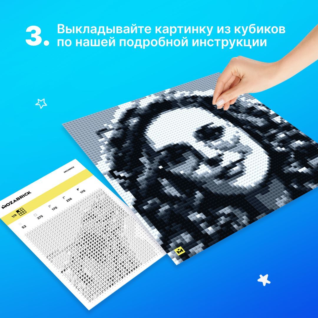 Описание: Универсальный конструктор по фотографии, превращающий любое фото в крутую картину!Дари конструктор или собранную своими руками картину! Отличный подарок на любой праздник, будь то День Рождения, Новый Год или годовщина свадьбыРамка для набора SРамка для фото-конструктора придаст вашей картине из кубиков законченный вид и придаст дополнительной прочности. Белая рамка или черная рамка - выбери сам заключительный штрих к твоей картине!Конструкторы Mozabrick — это уникальный декор для дома, который впишется в любой интерьер